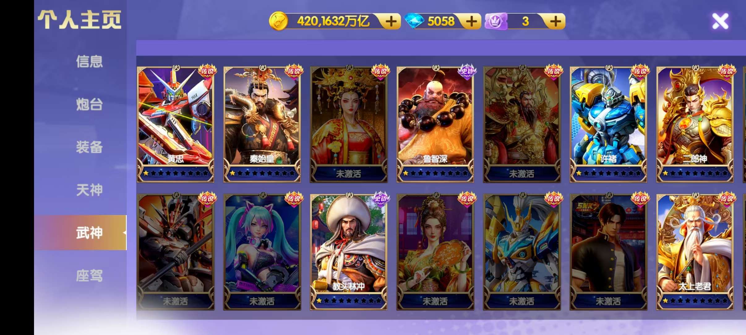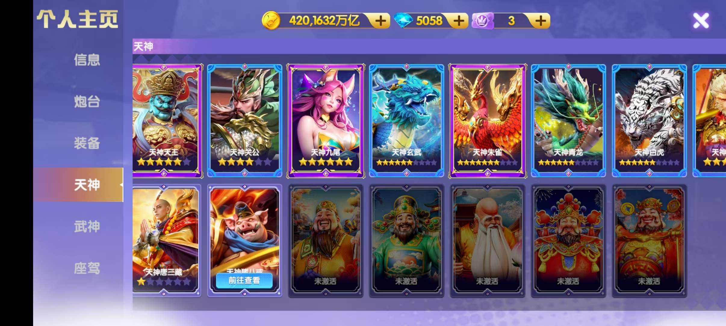 420兆,2.5万炮神装27连击。天王5星,洪荒三级西游羁绊。16武神连击1500/3座驾优惠出