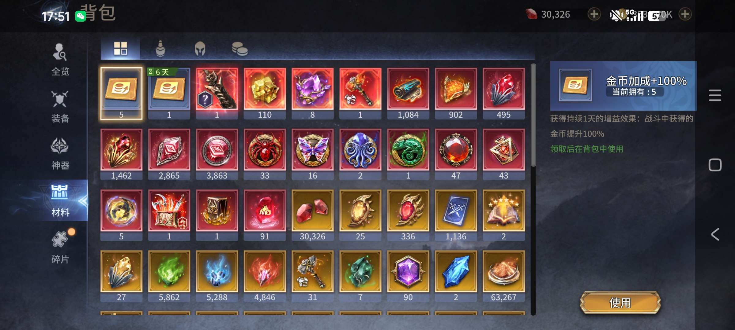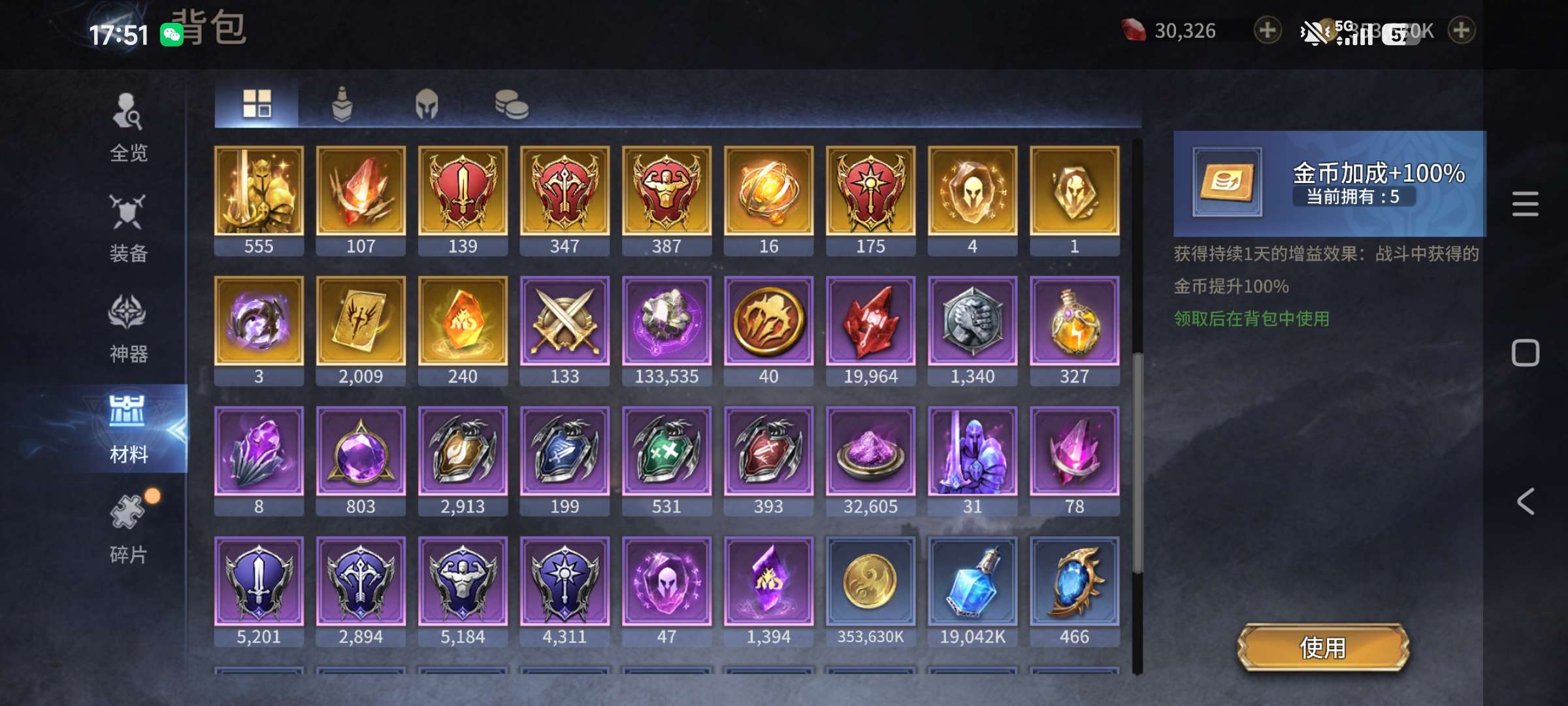 40个五觉,11个四觉,30300钻+336红抽+25金抽+466蓝抽,石头4大1小,龙挂机11万