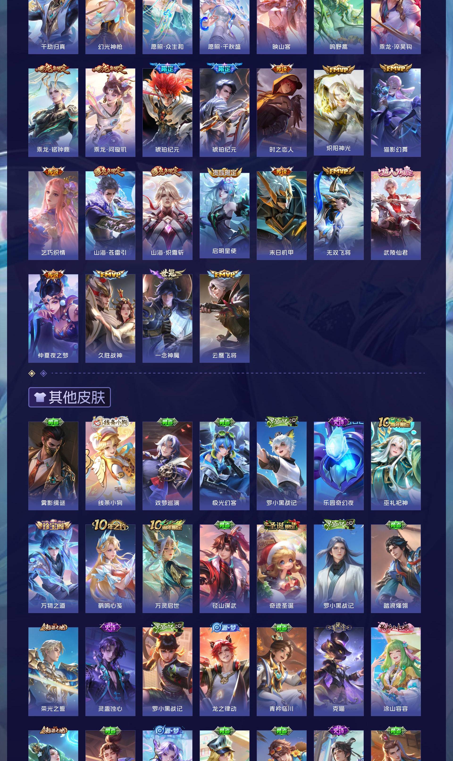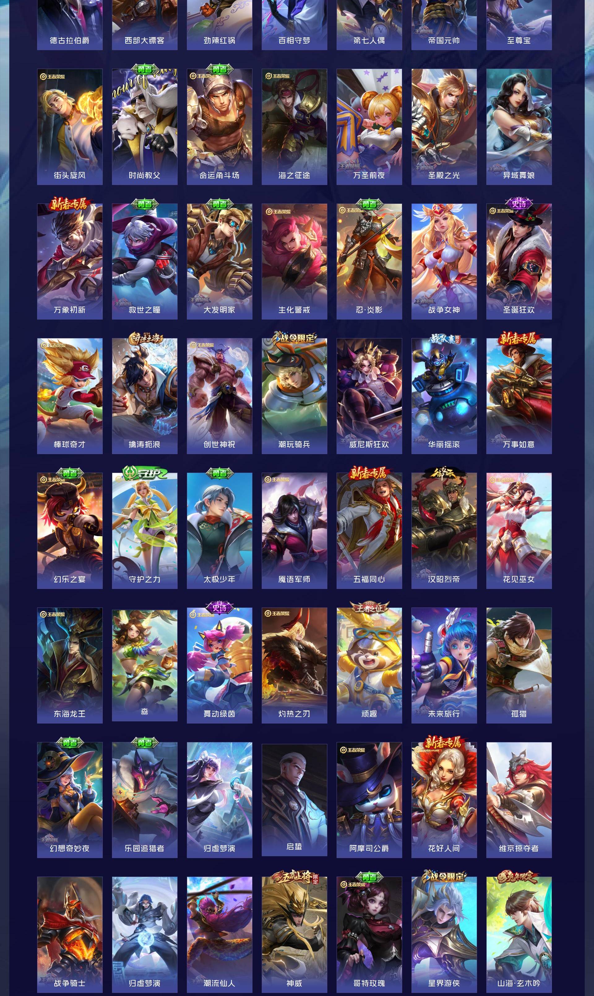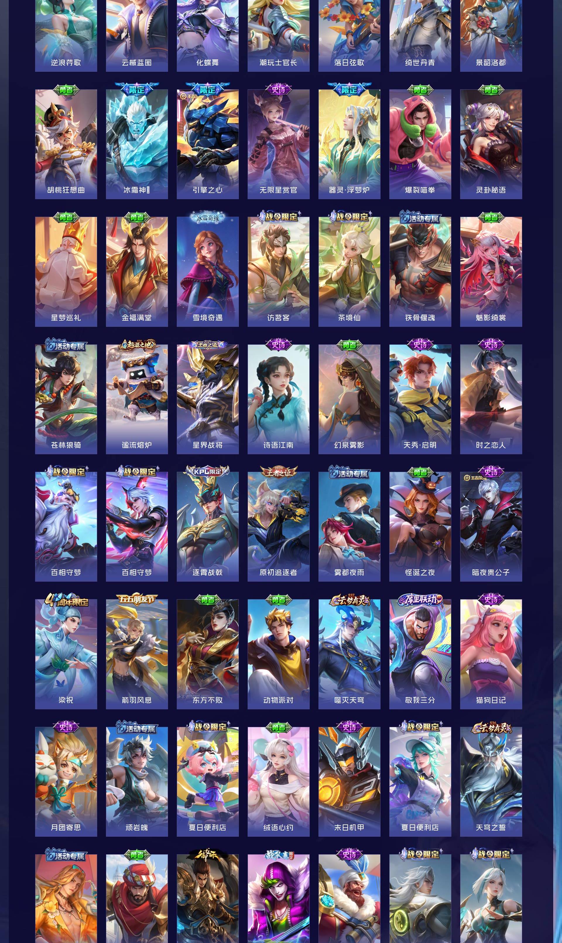 V10 皮肤413 英雄128 至尊星耀 荣耀典藏7 无双皮肤1 珍品传说3 传说32 其他皮肤375