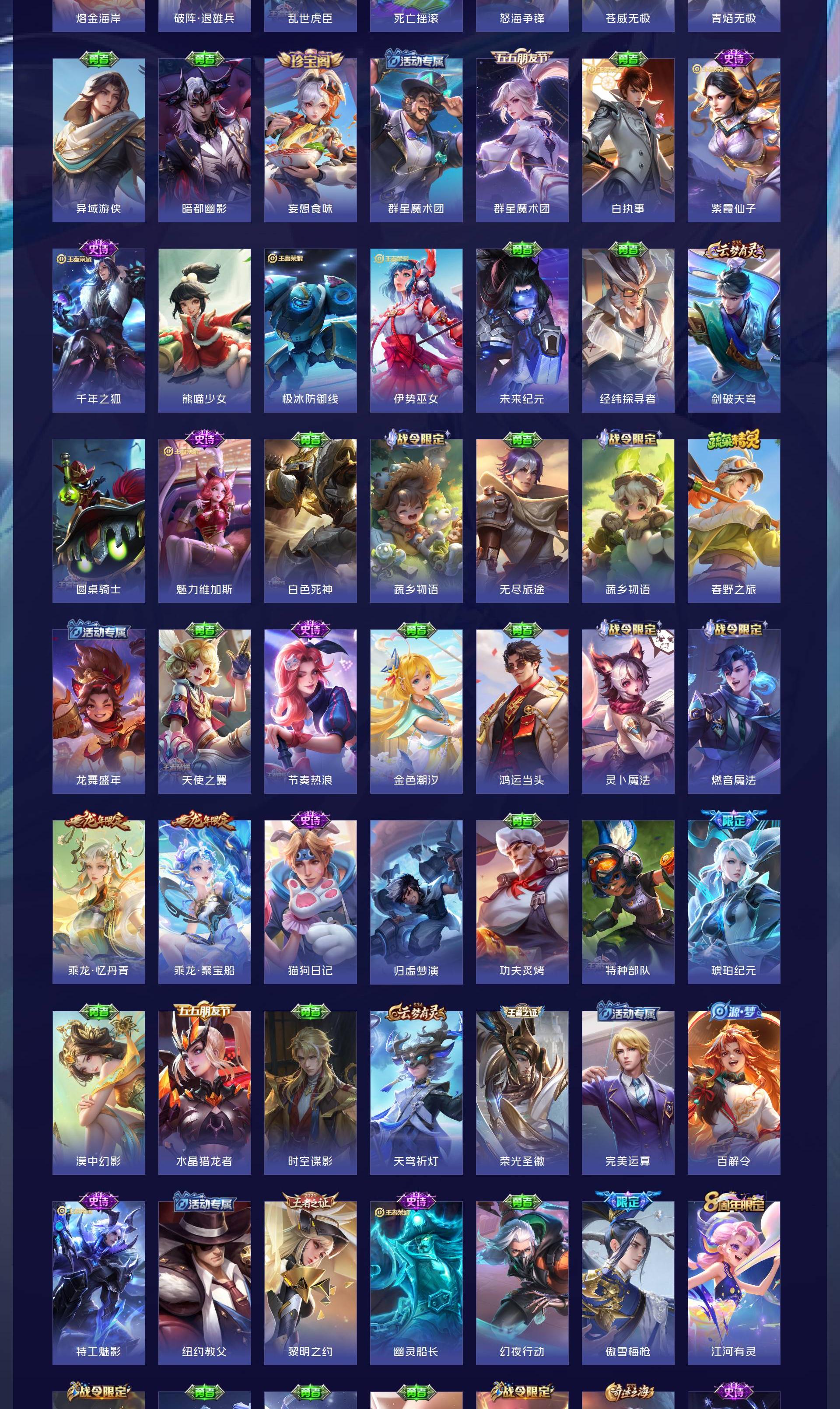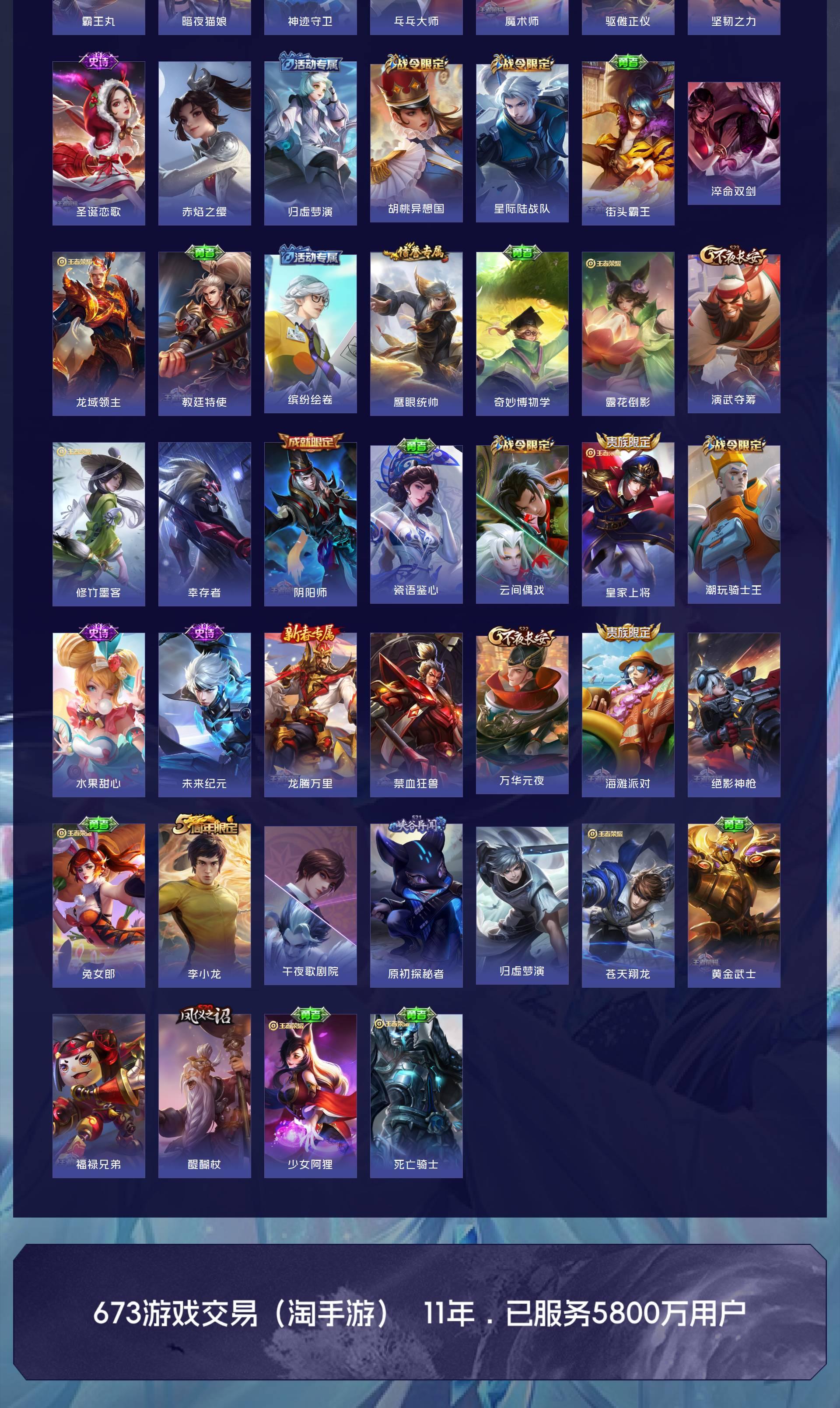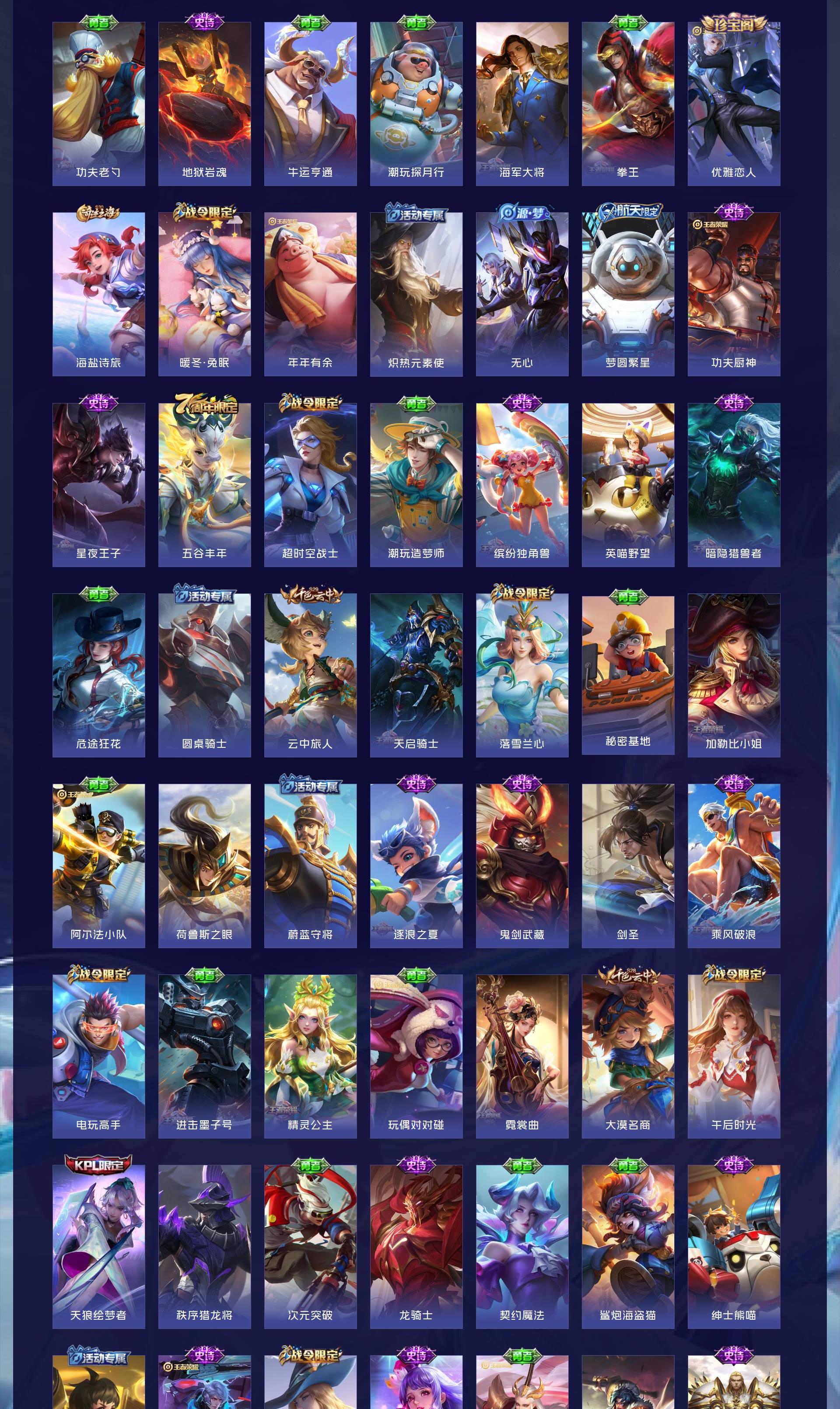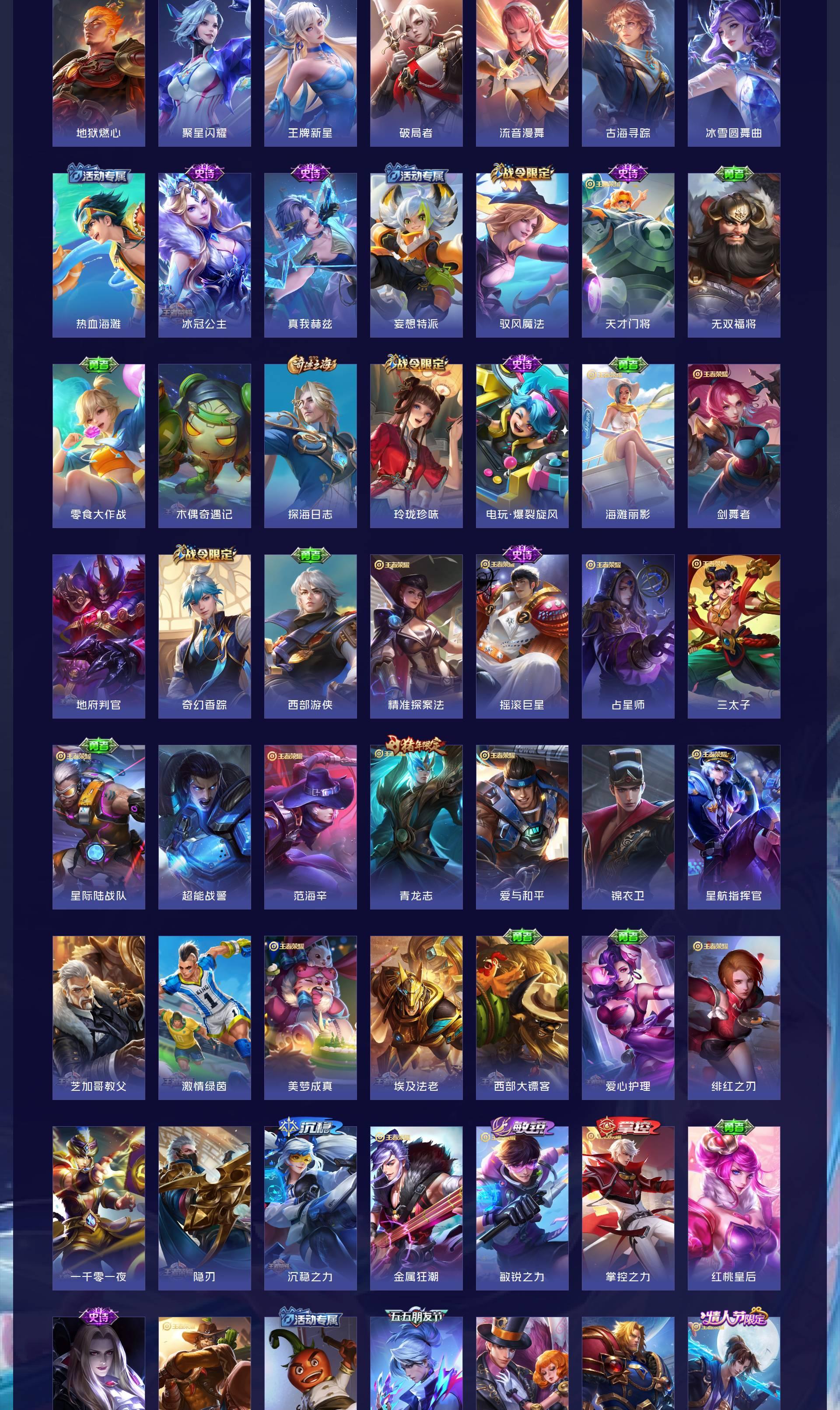 V10 皮肤413 英雄128 至尊星耀 荣耀典藏7 无双皮肤1 珍品传说3 传说32 其他皮肤375