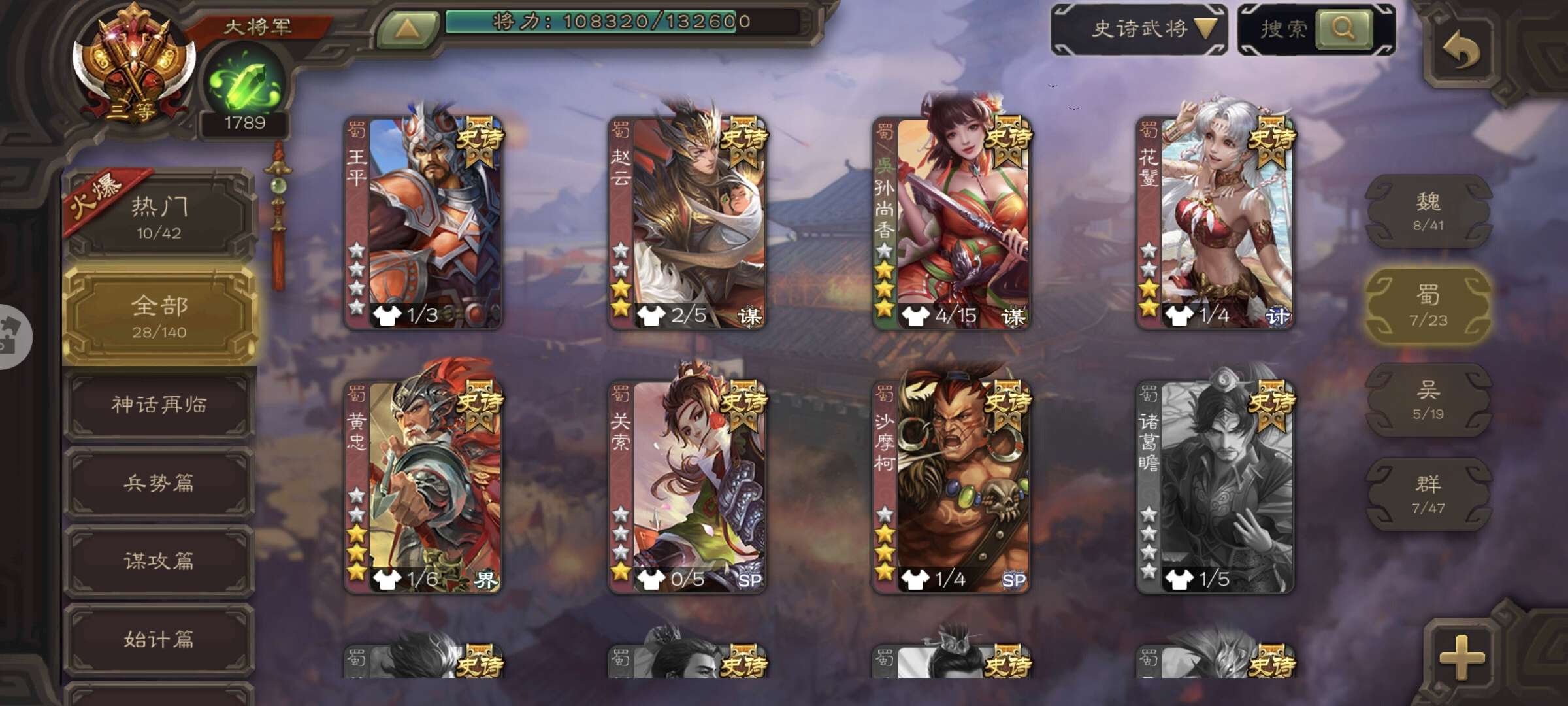 史诗武将数量: