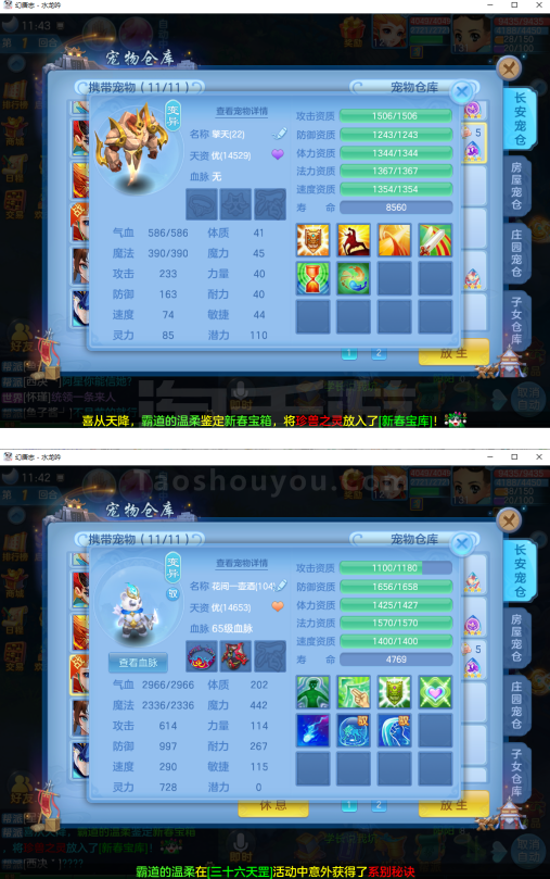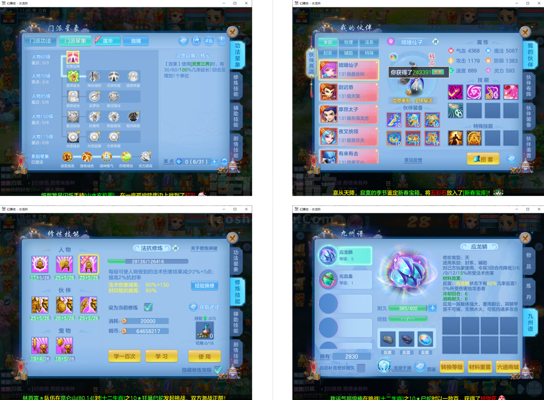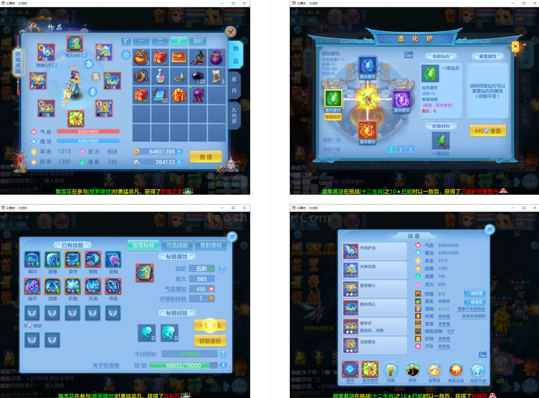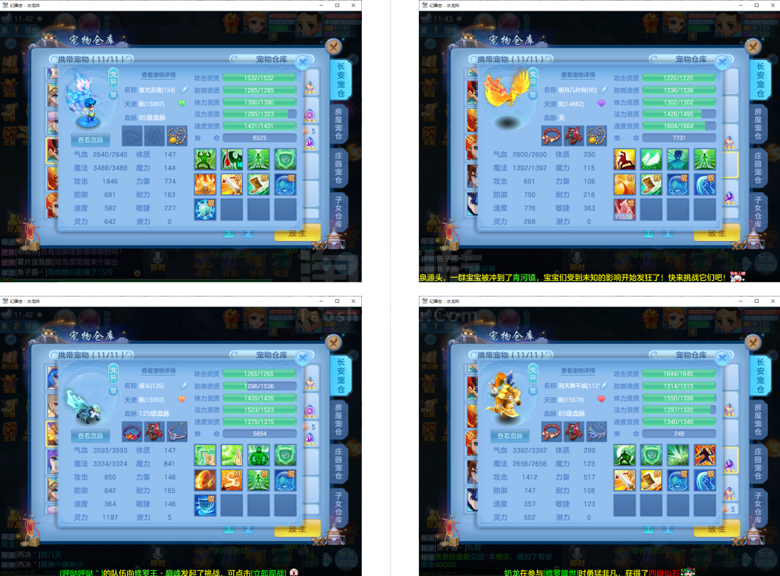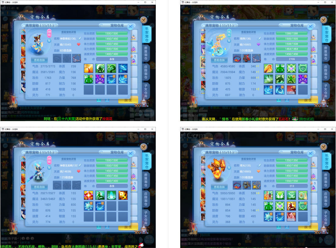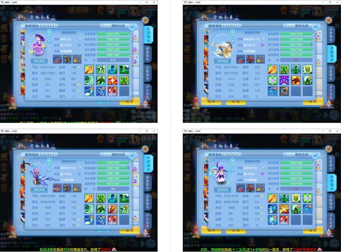 (131普陀/男)(7天换绑/邮箱不送)水龙呤--2件12段2件11段1件10段1件9段,特技装,双神兽+6个6技能宝宝,高级坐骑,2118成就