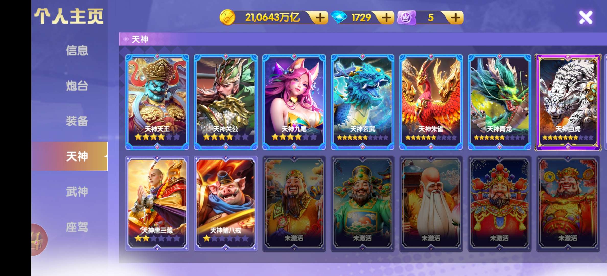 小米端,纯玩21京,神电万炮,三级洪荒。加倍卡多多。2389