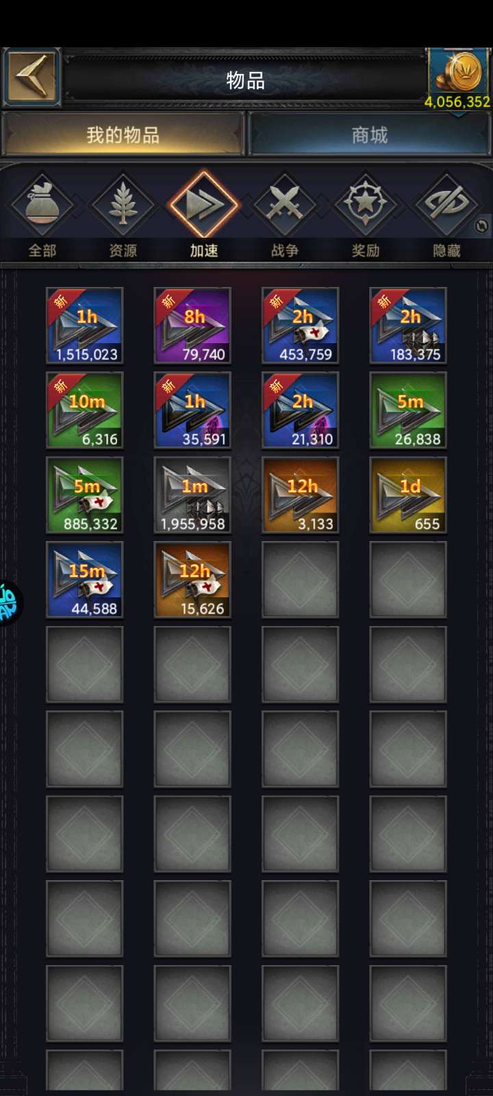 骑兵底子号高造伤高攻守城,四百多万金币,资源加速用不完,战报均为裸属性,远征离线也不用开罩没人打的破