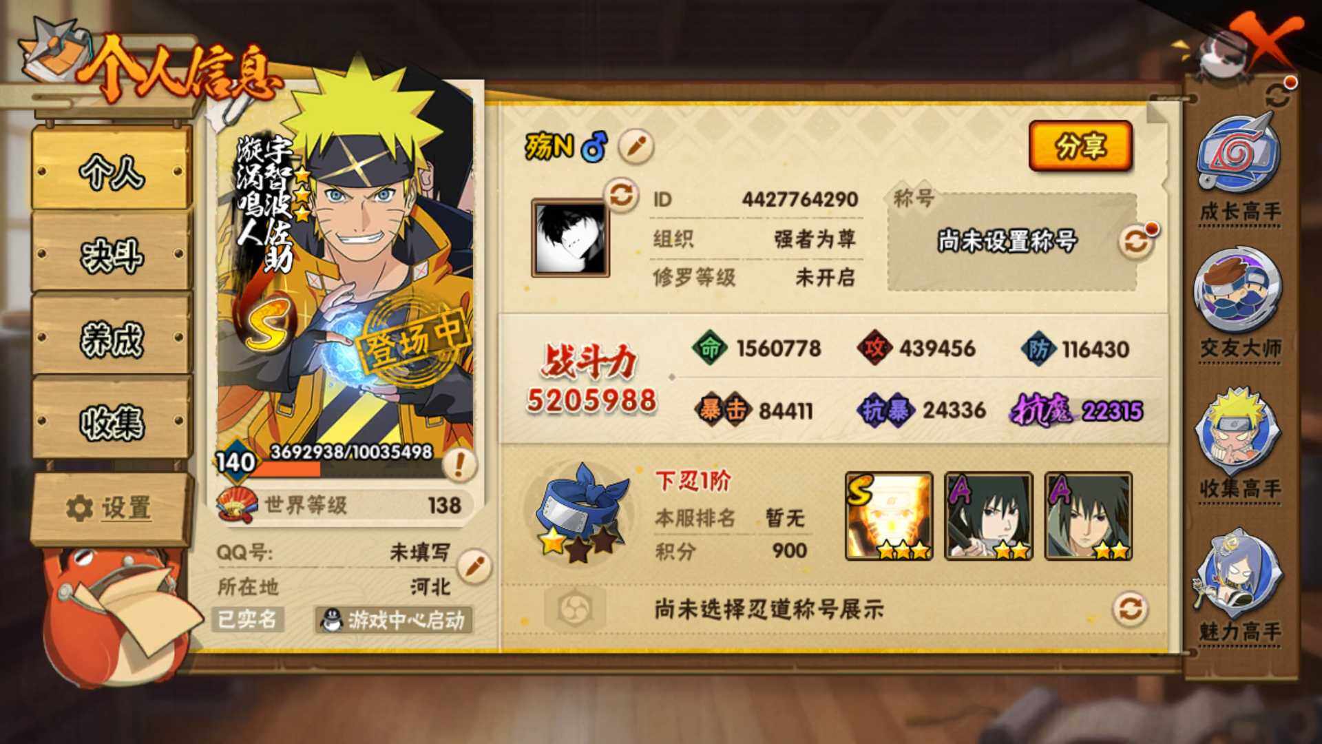 (可免费转苹果)V9 11S 28A 520万战力 热门A新春水门 恶灵飞段