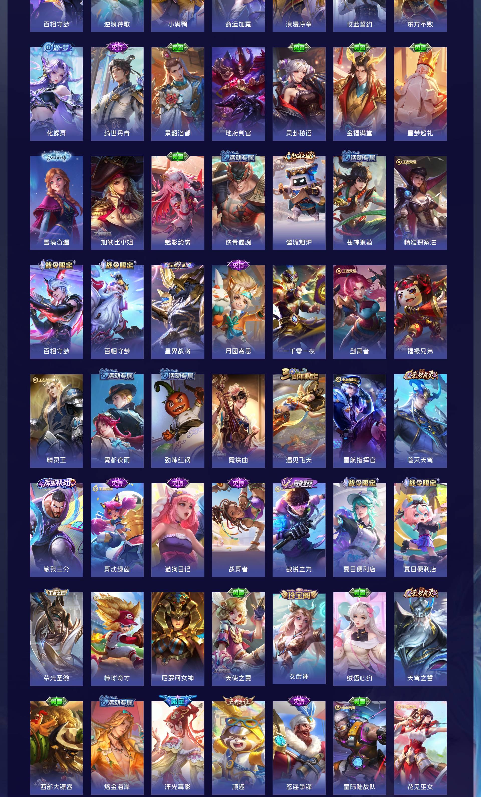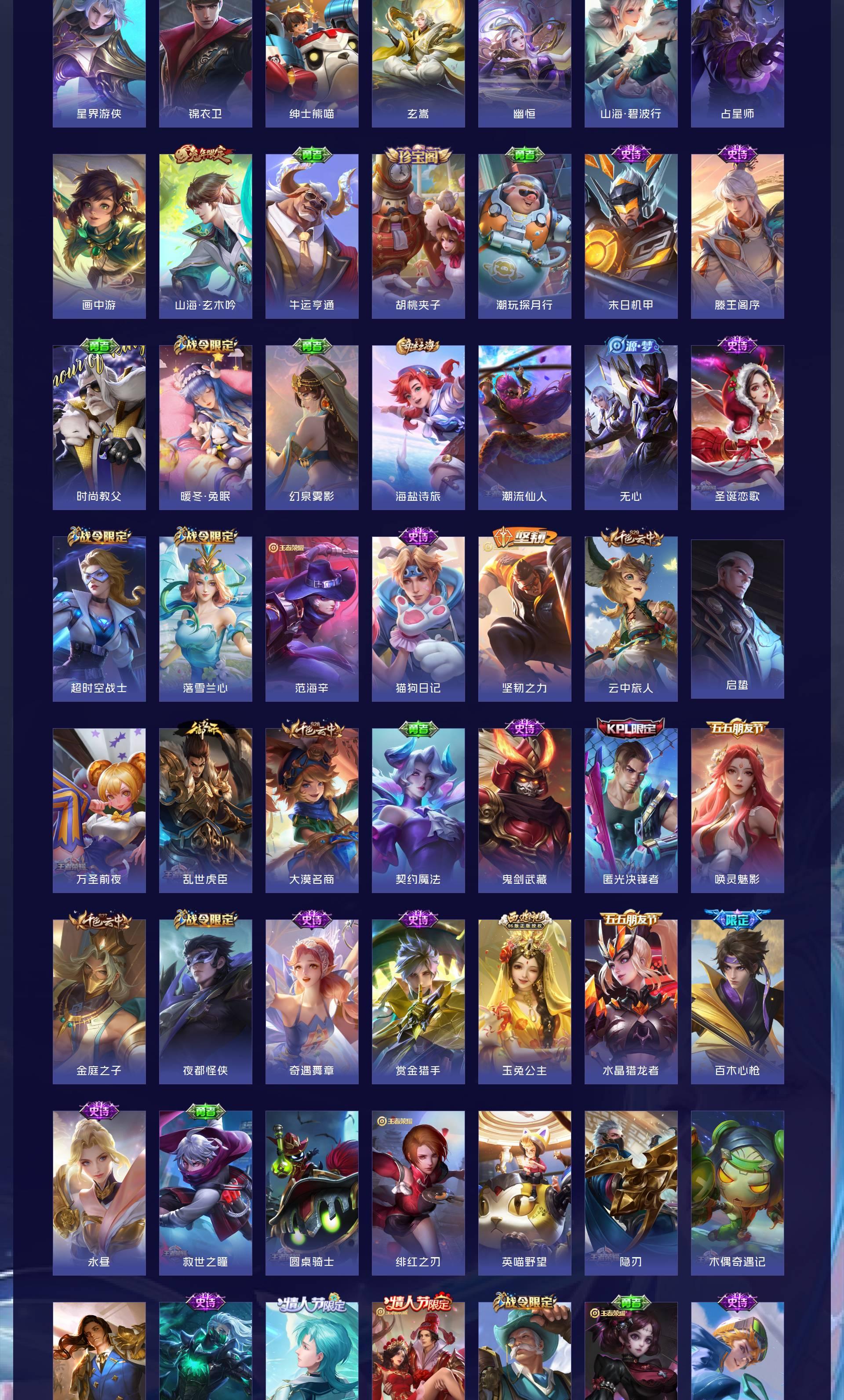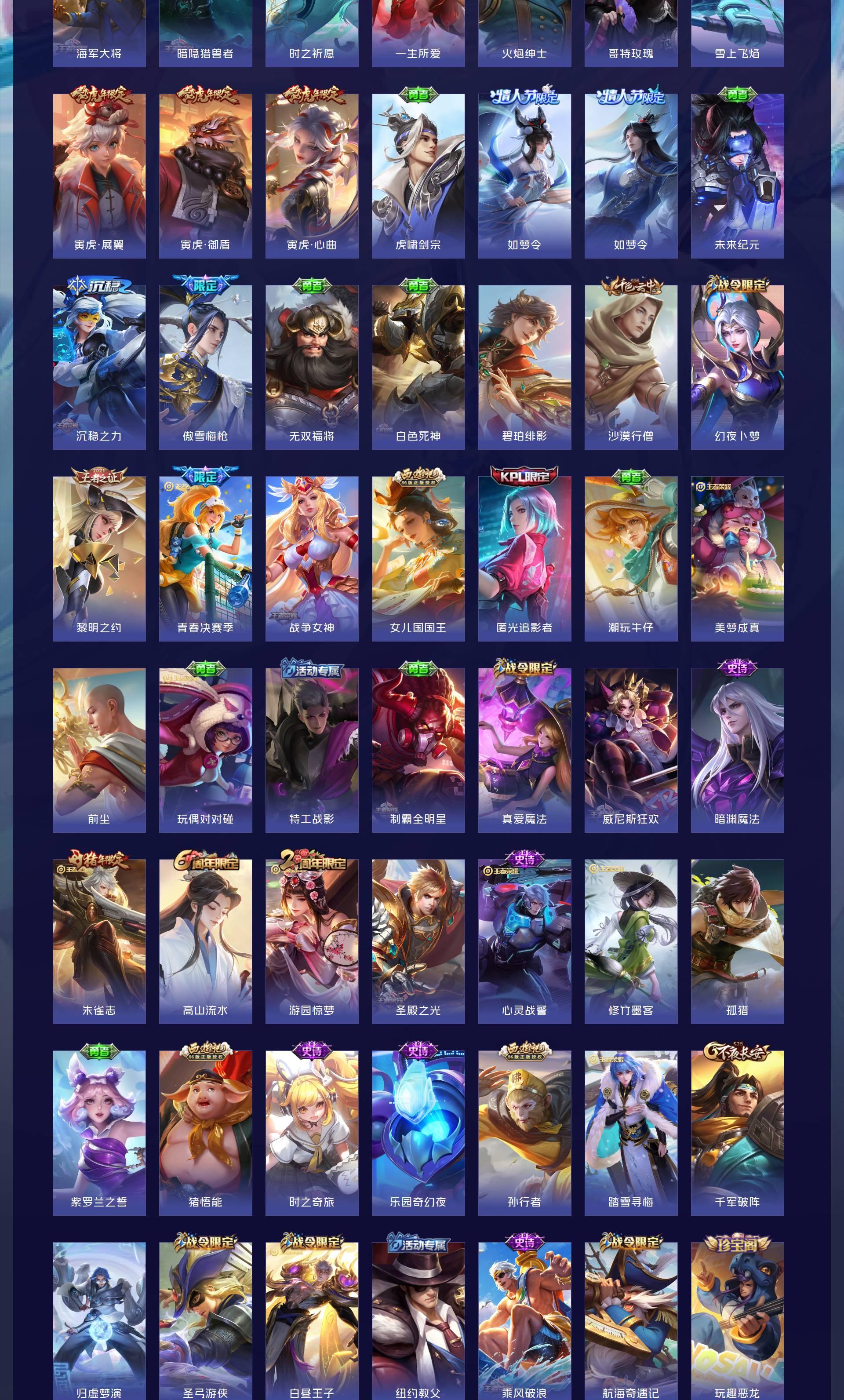 V10 皮肤464 英雄128 至尊星耀 荣耀典藏8 无双皮肤1 传说53 其他皮肤408