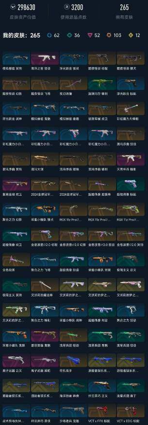 终极*103/传奇*12/卓越*52/皮肤*265/等级*127/段位:未定级/2024全球冠军赛套装/