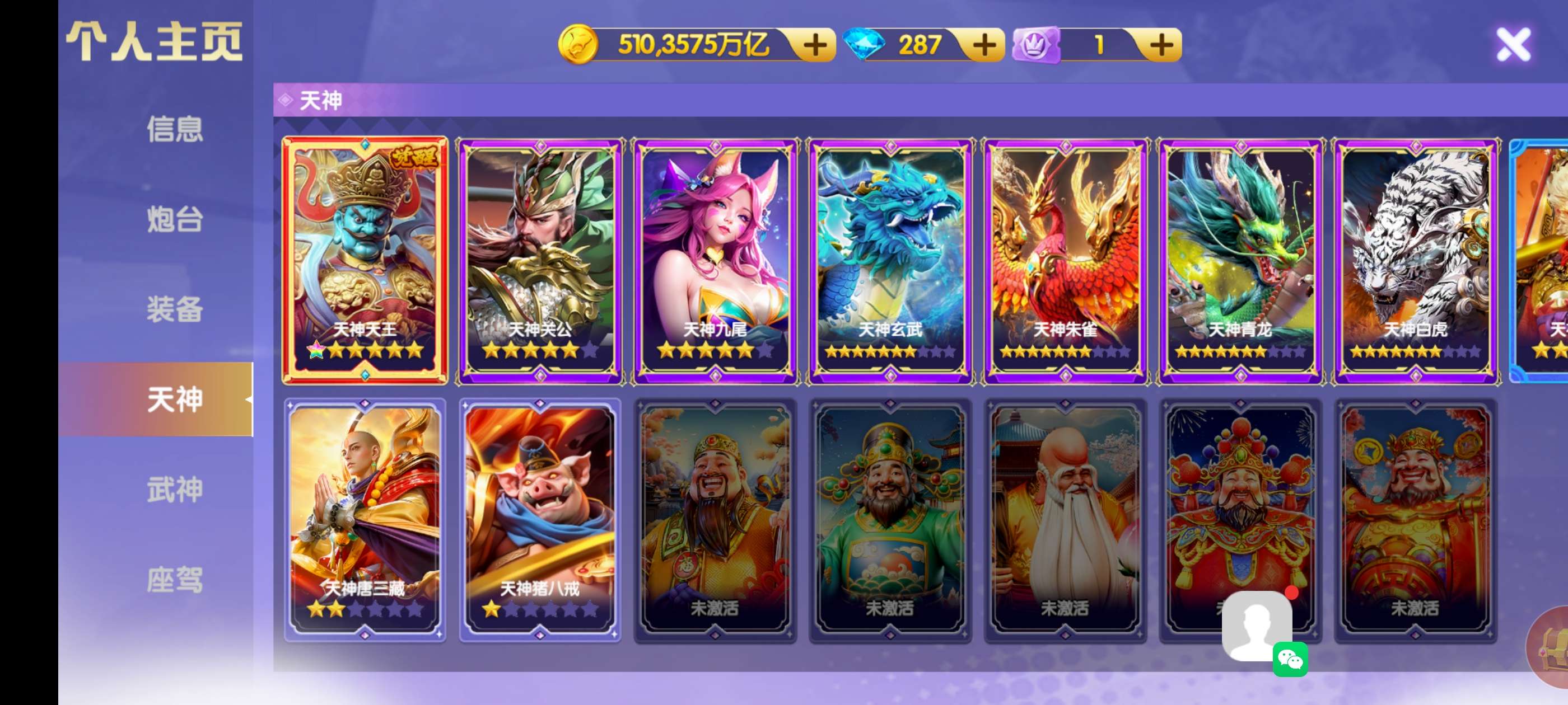510兆,2.5万炮神装24连击,天王觉醒双龙,洪荒三级西游羁绊,15武神连击1800/4座驾便宜出