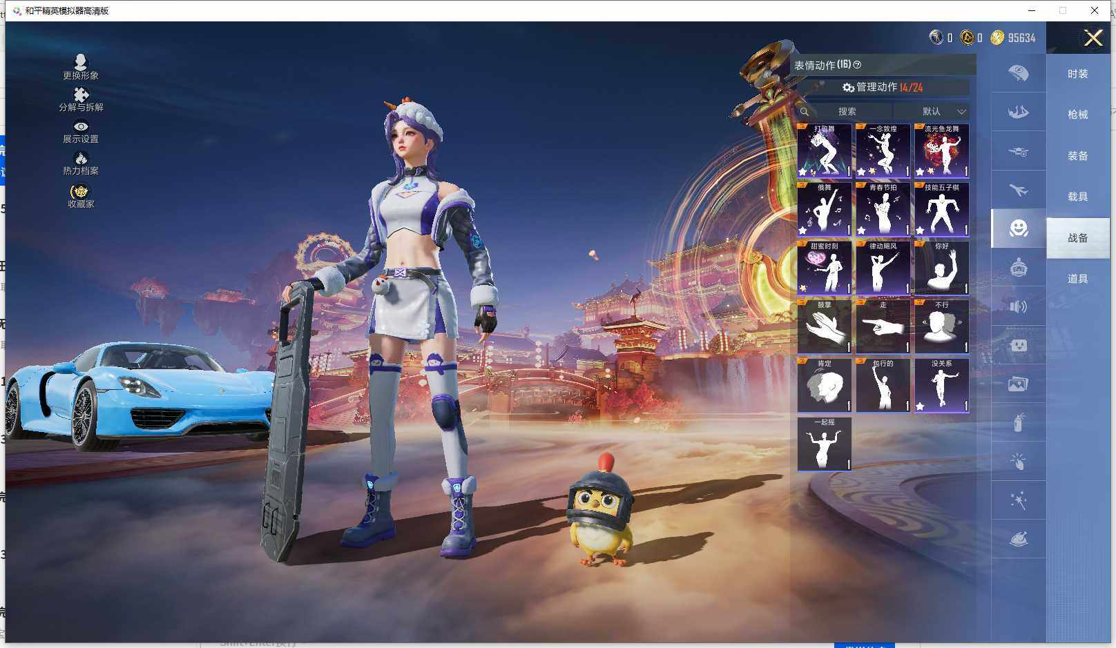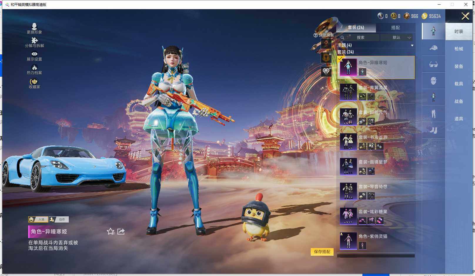 时装数: 24 载具数: 1 枪械数: 35 战备数: 31 热门装扮: 异瞳寒姬 载具: 保时捷918Spyder(沉静蓝)