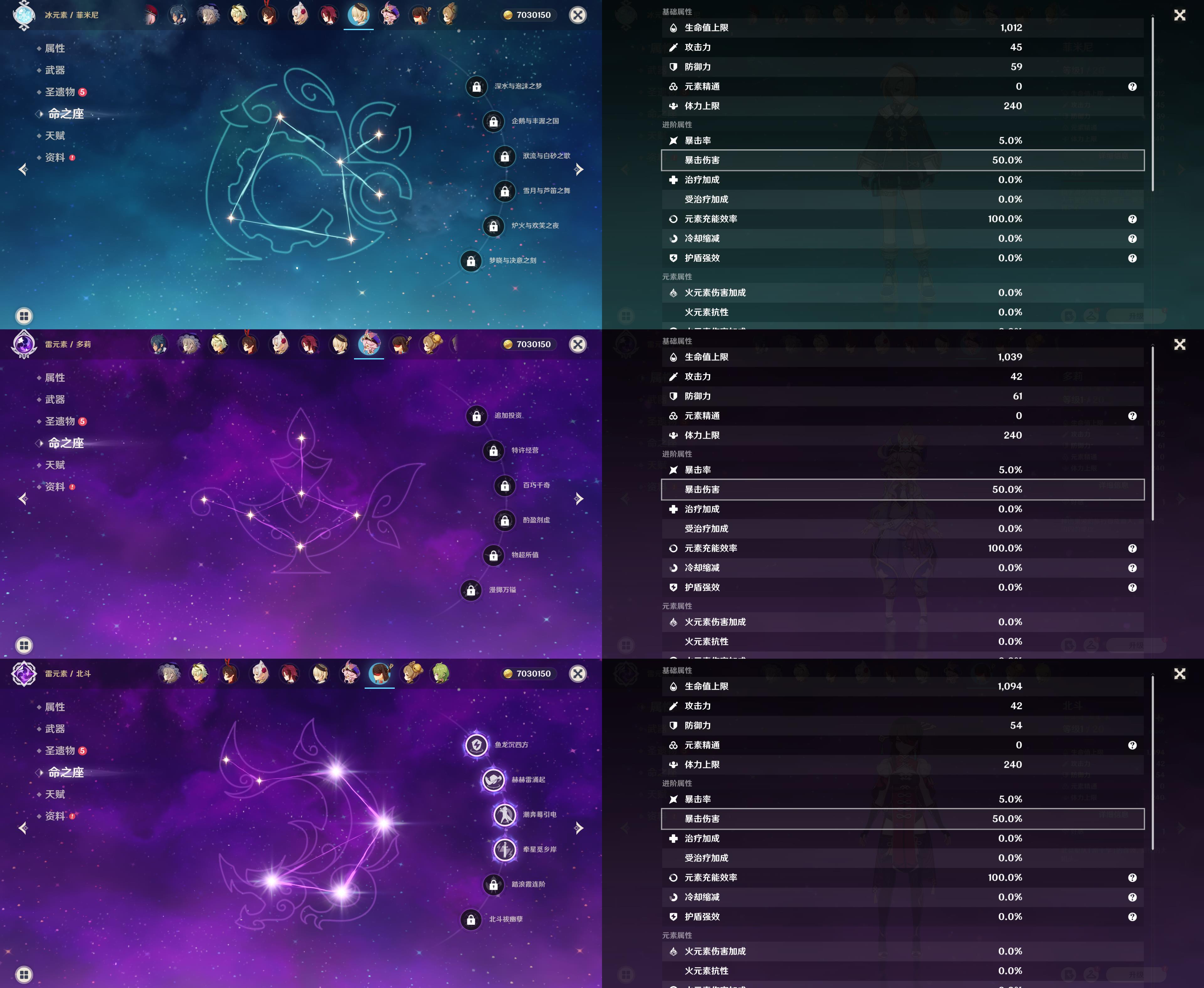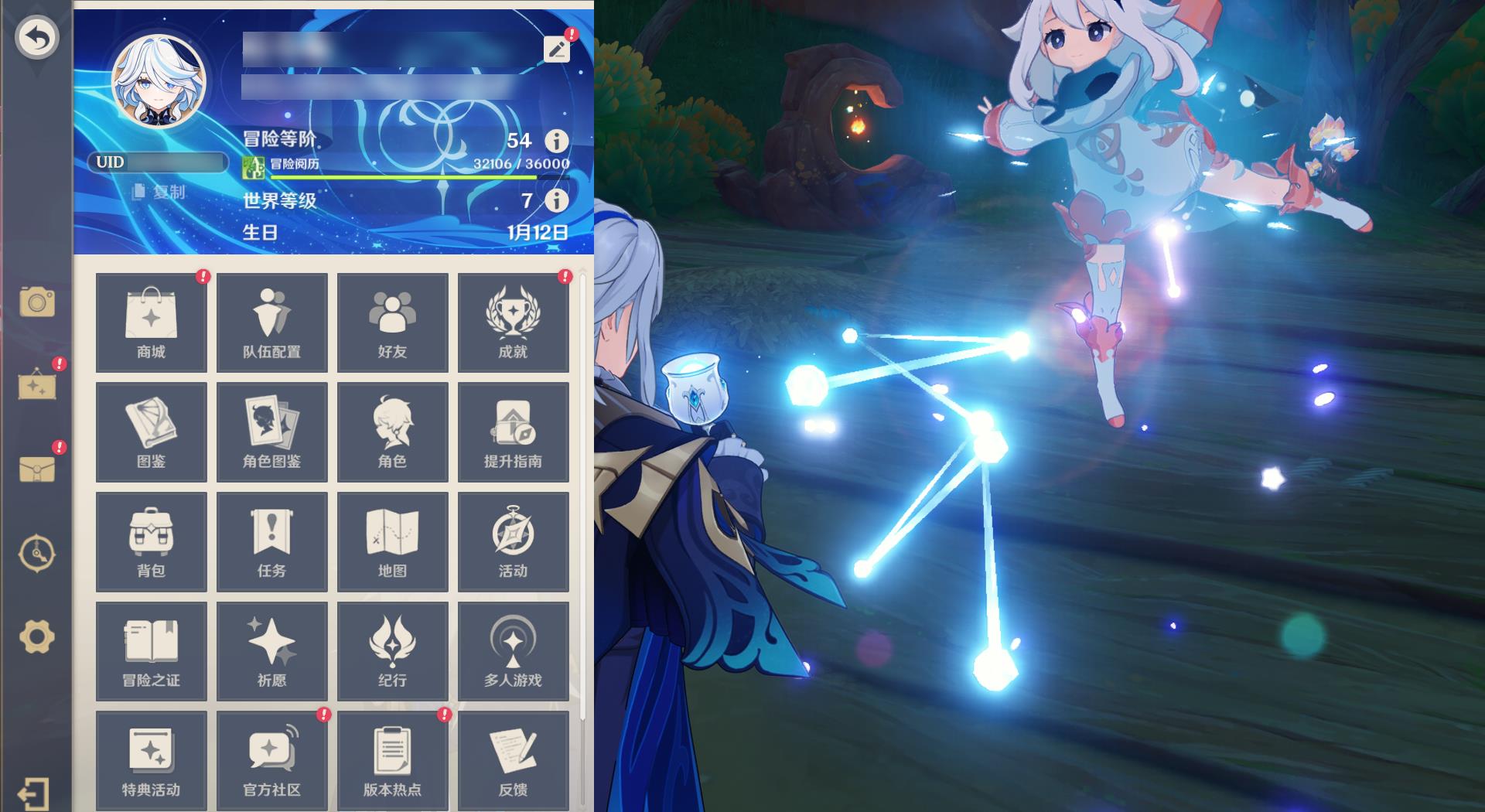 54级/7黄/女主/4个五星角色/2个五星武器/1命那维莱特/芙宁娜/提纳里/神里绫人/万世流涌大典/天空之卷
