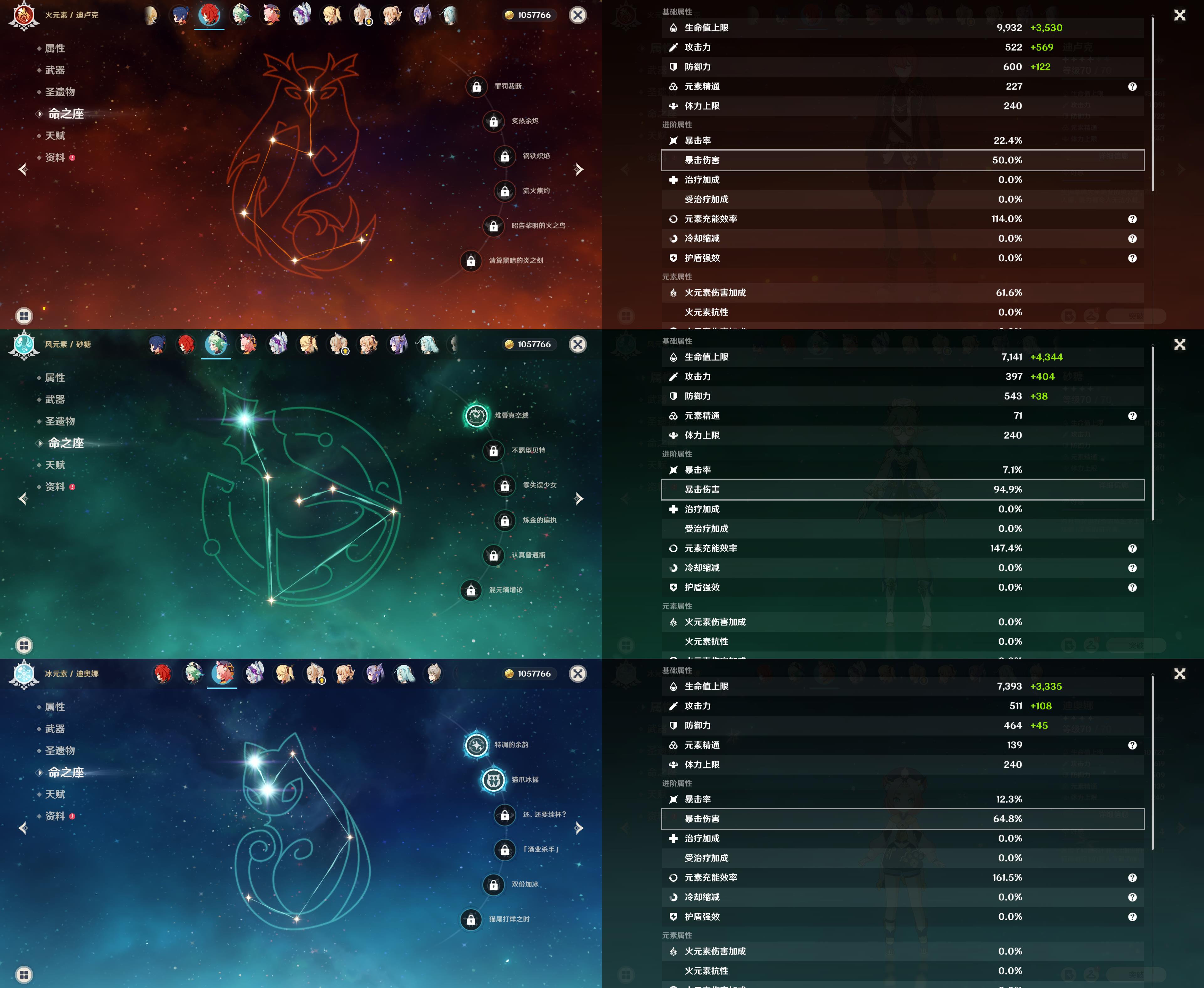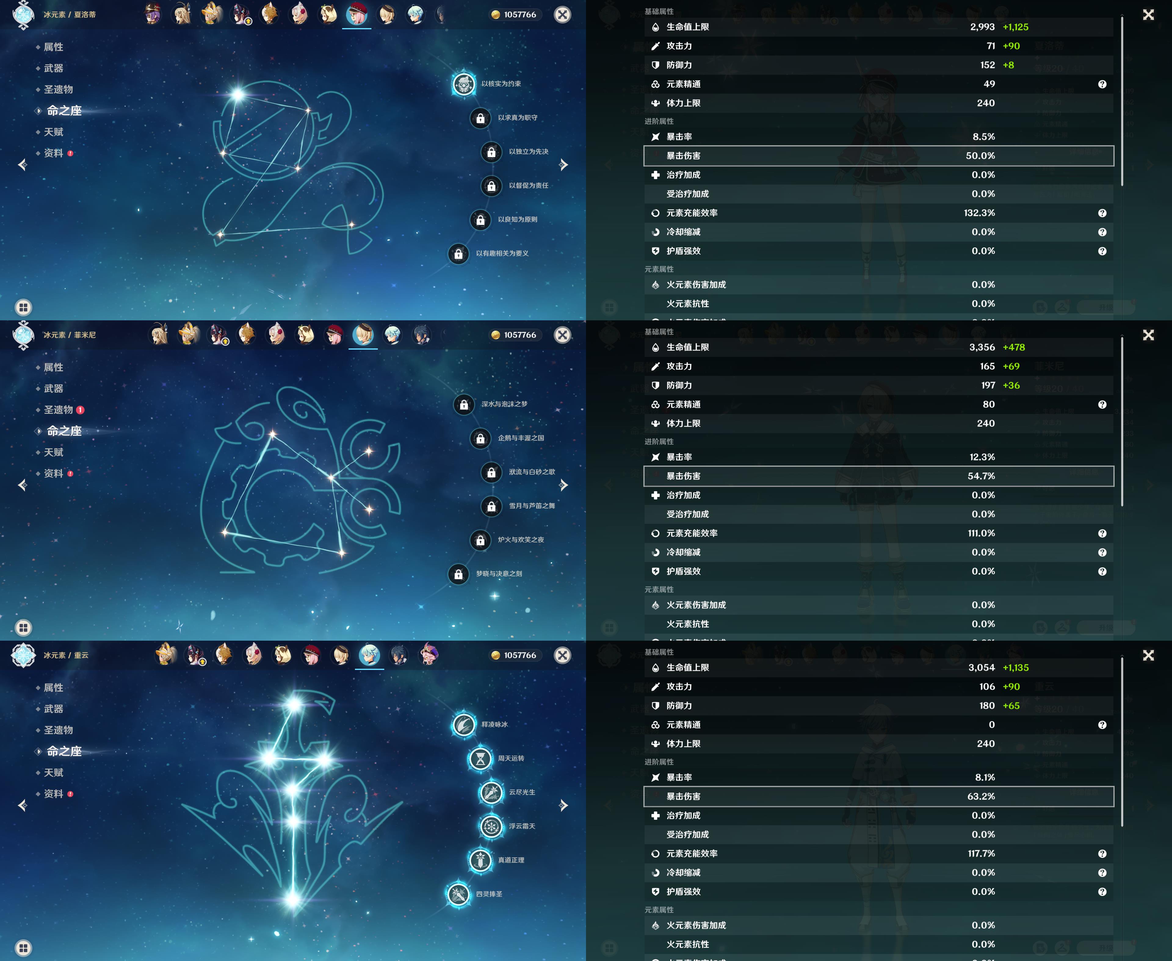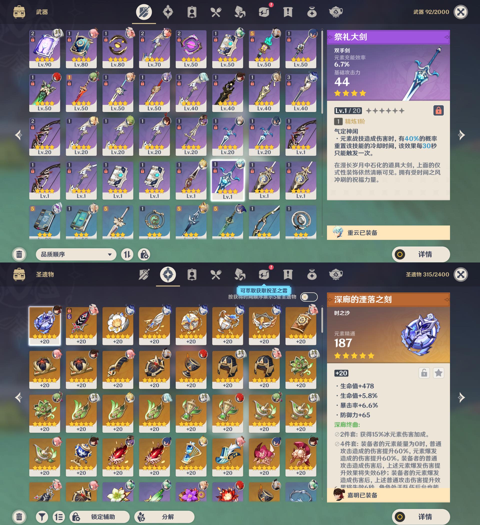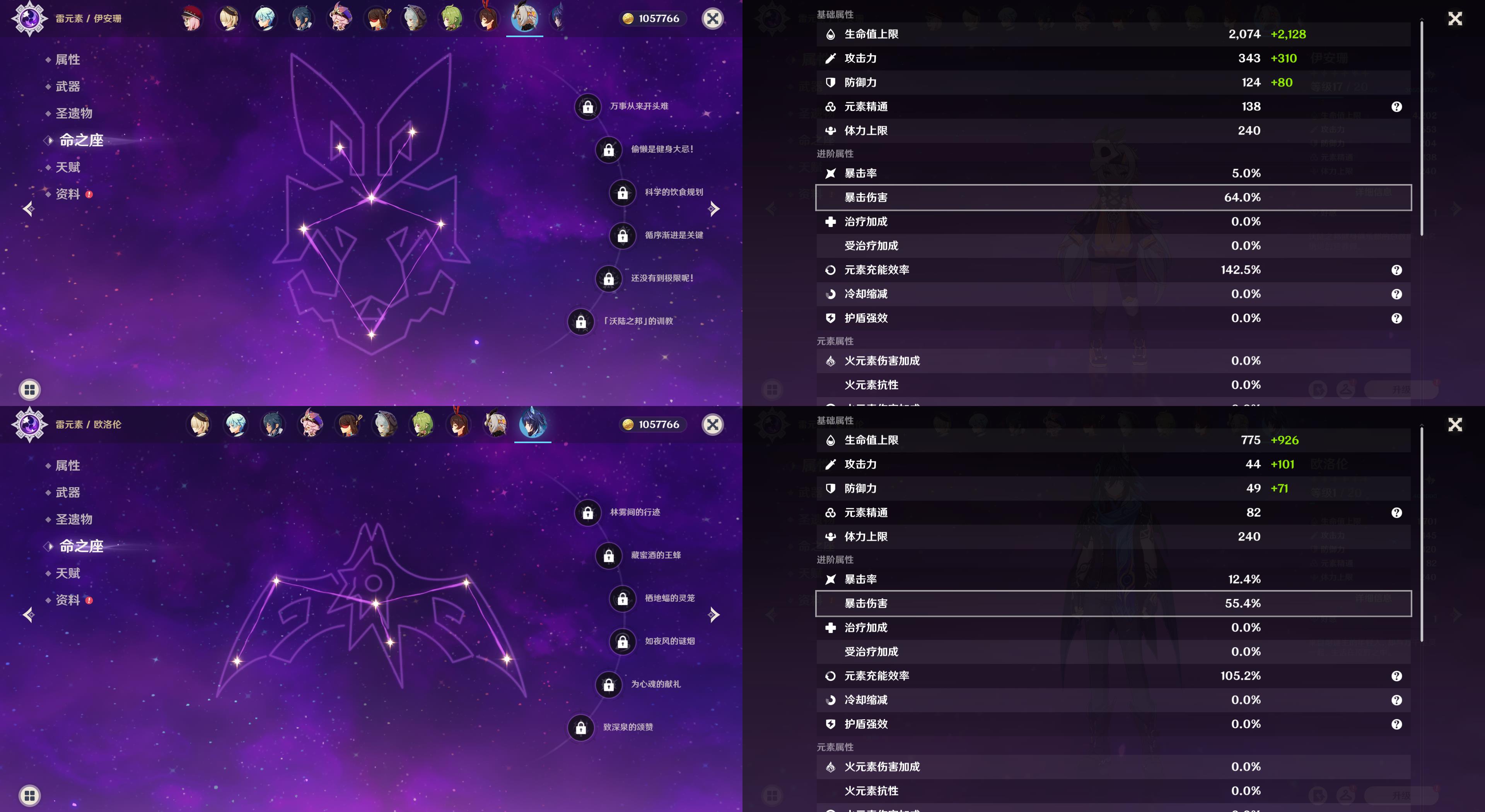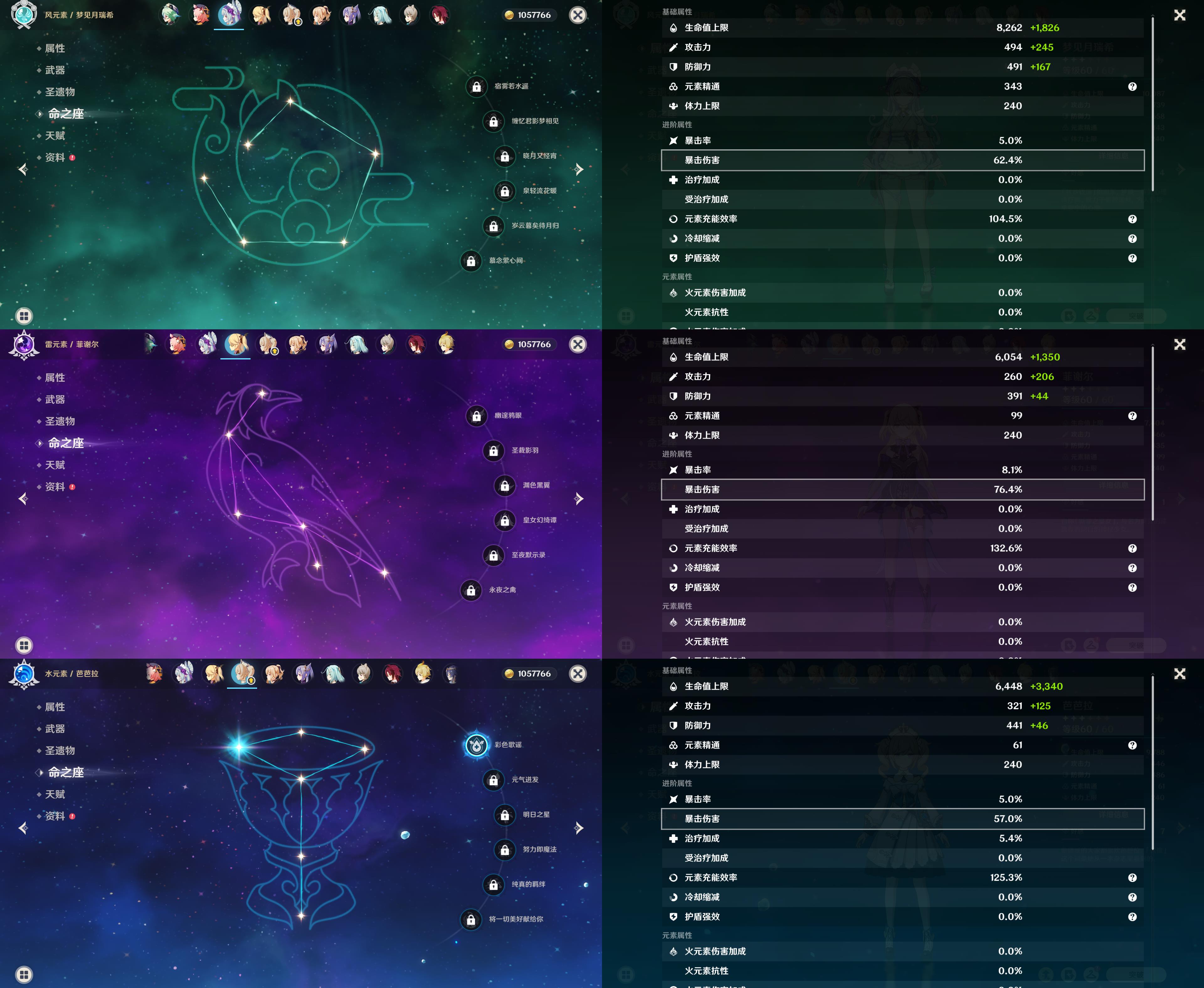 55级/8黄/女主/8个五星角色/纳西妲/0命瓦雷莎/芙宁娜/八重神子/迪卢克/梦见月瑞希/琴/刻晴