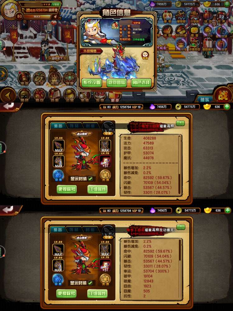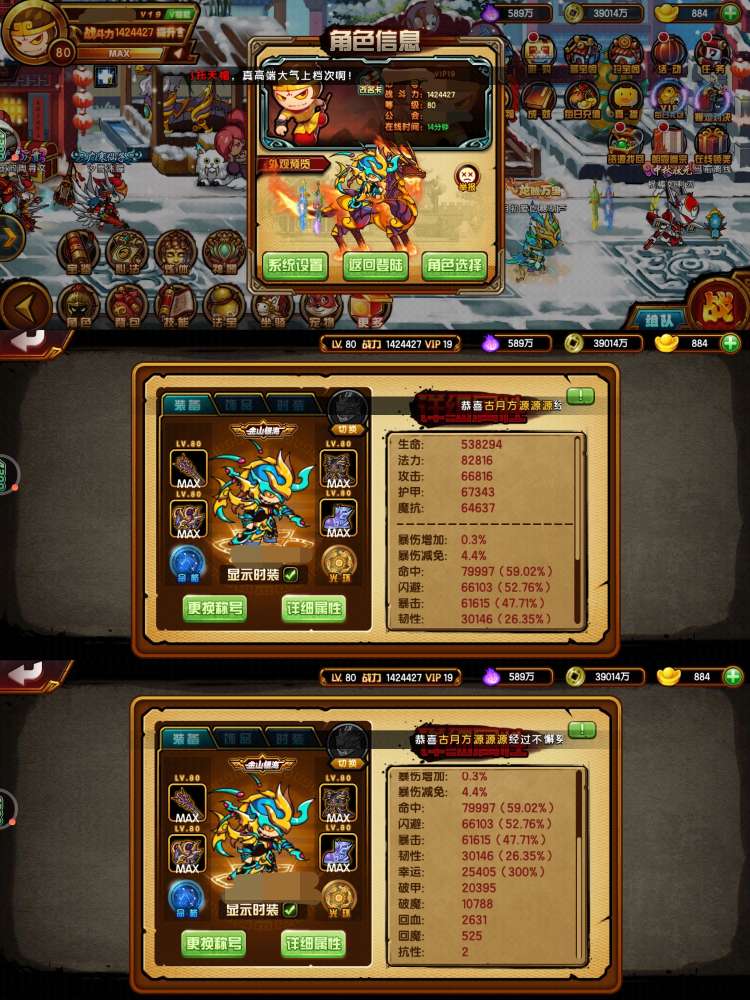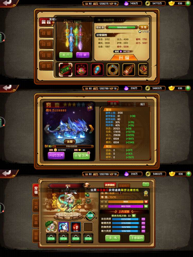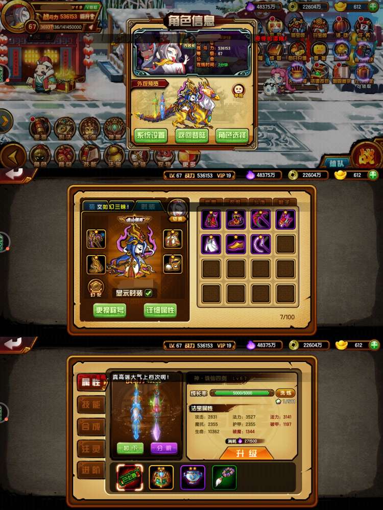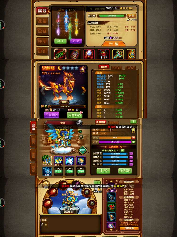 翅膀77级四象,命格还可以,龙配置红极橙观,三通,四剑穷奇四阶兔,翅膀69级四象,属性嘎嘎好,宝石好