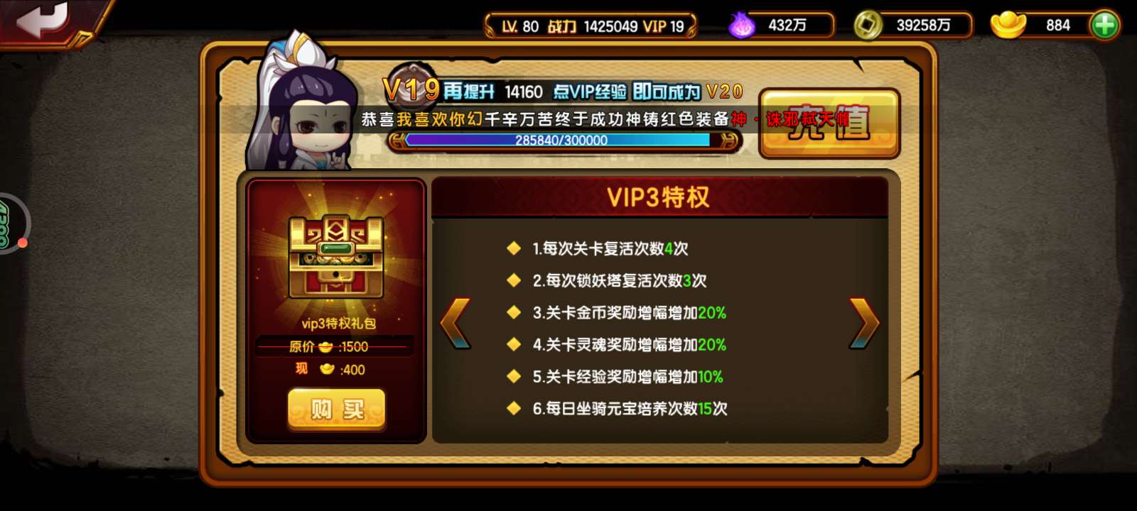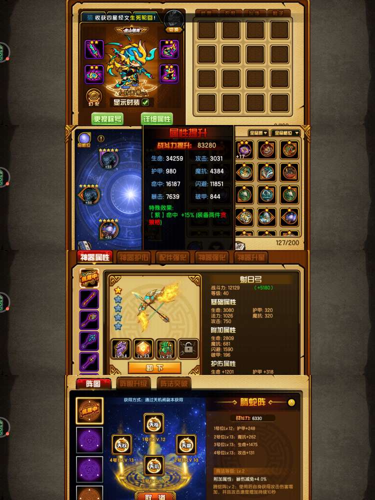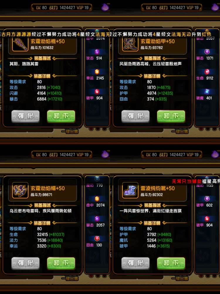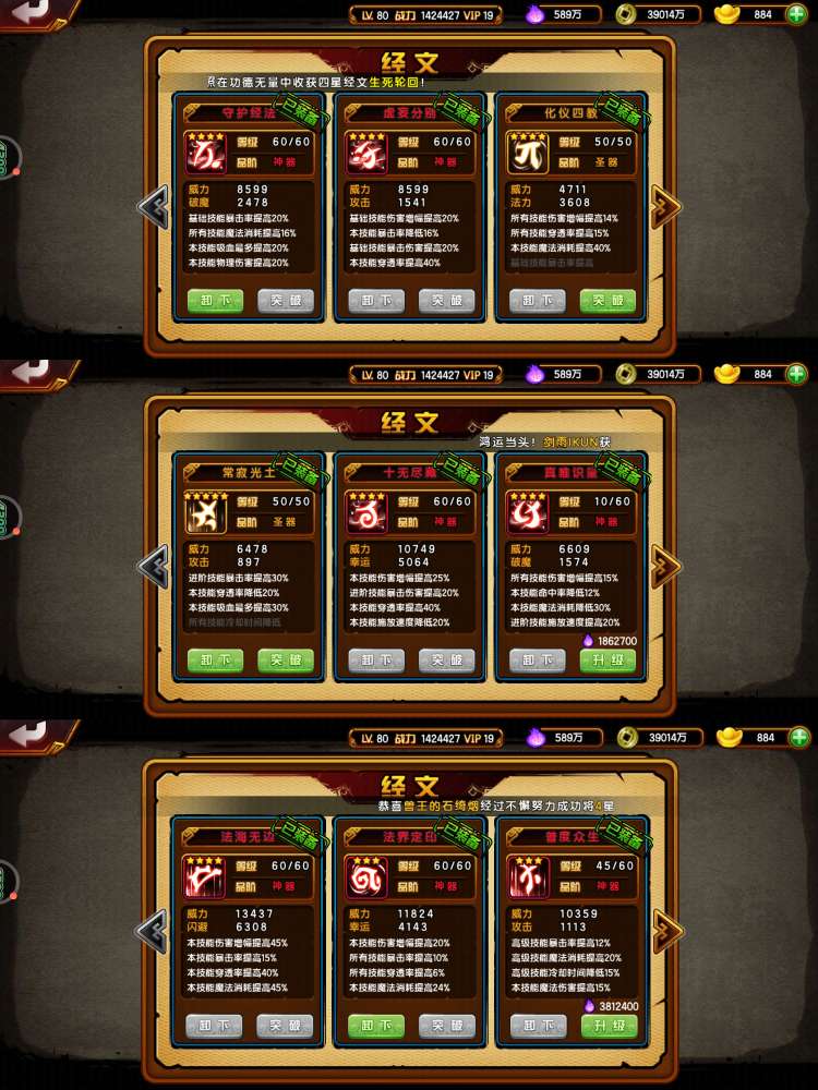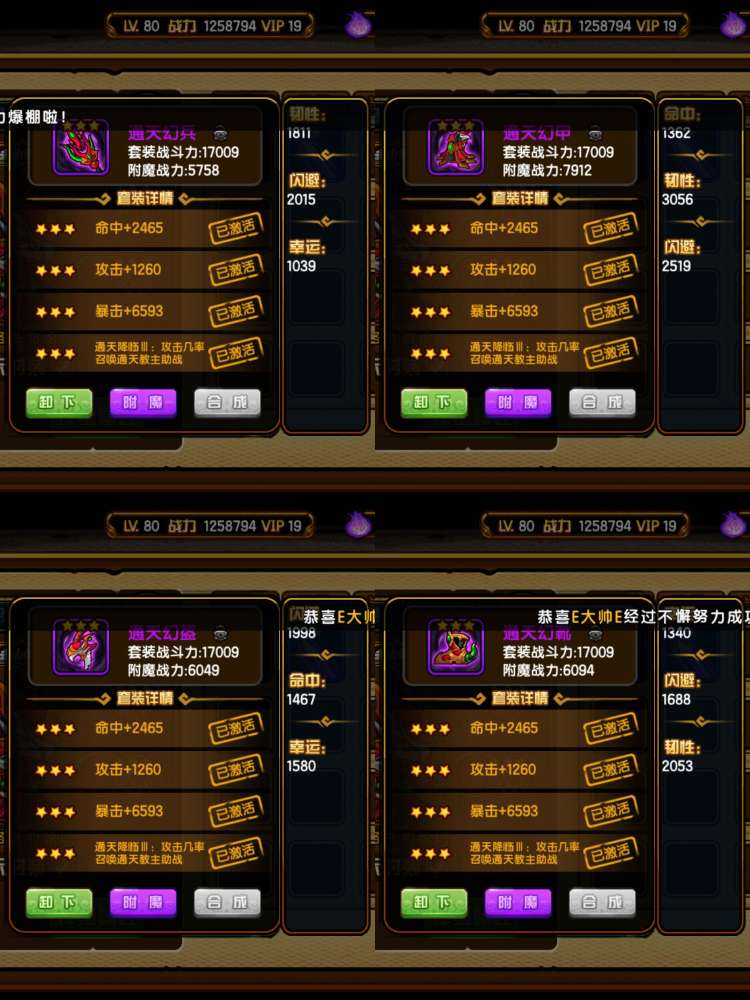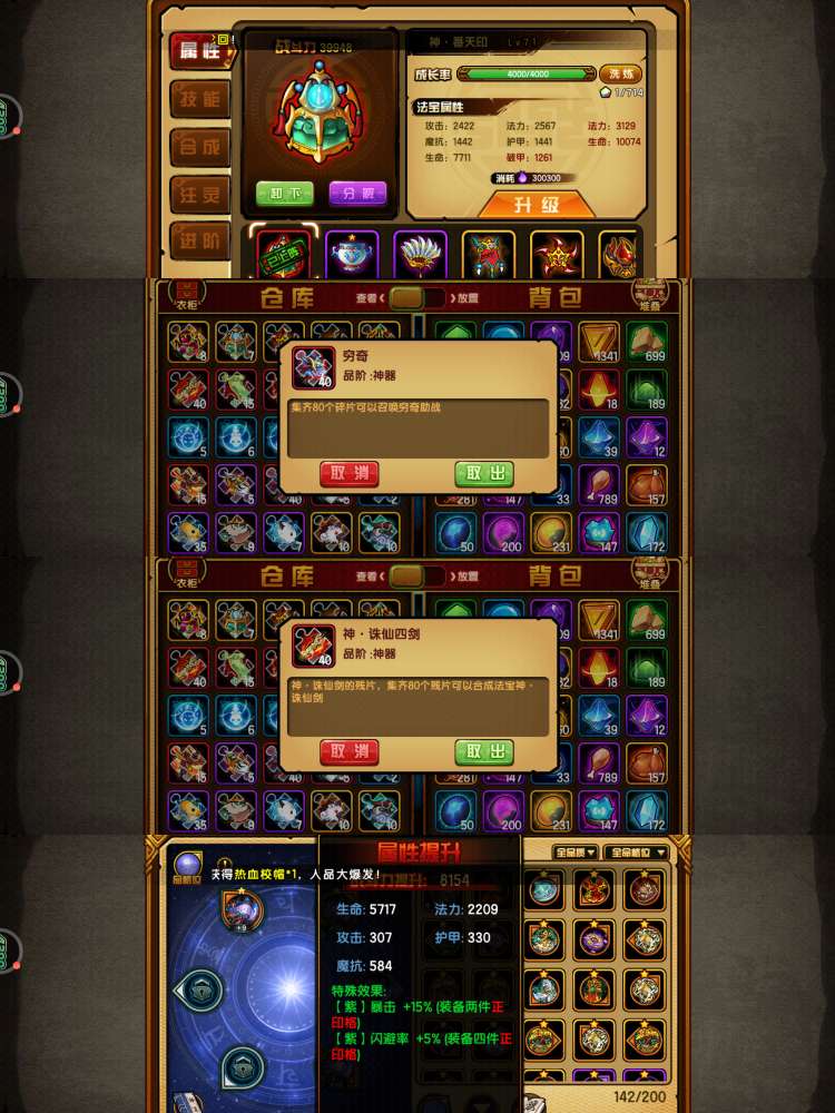 142万挂猴连体126万挂龙68万猪53万无常,V19,差1400V20,橙化常四剑麒麟,四阶虎