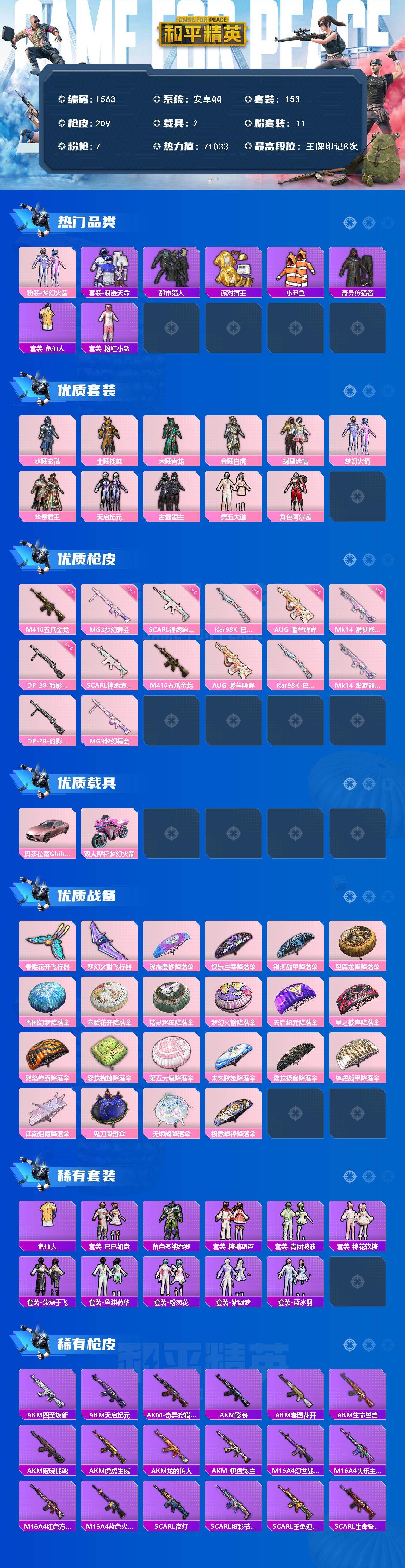 【高冷身法素材号·火箭头·金鞋·都市猎人·11粉·7特效枪·粉玛莎拉蒂】安卓 手Q-11粉装-7特效枪-2载具-3粉色飞行器-71033热力值-8王牌印记-153套装-209枪皮