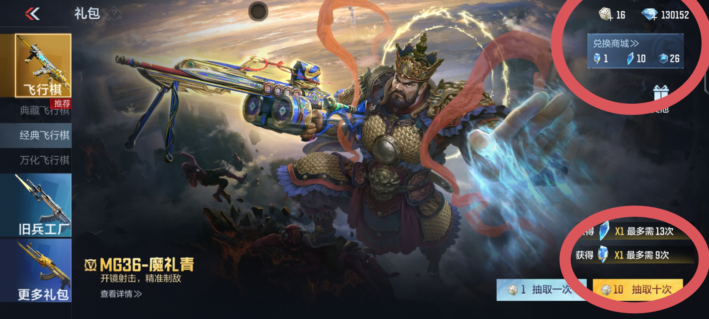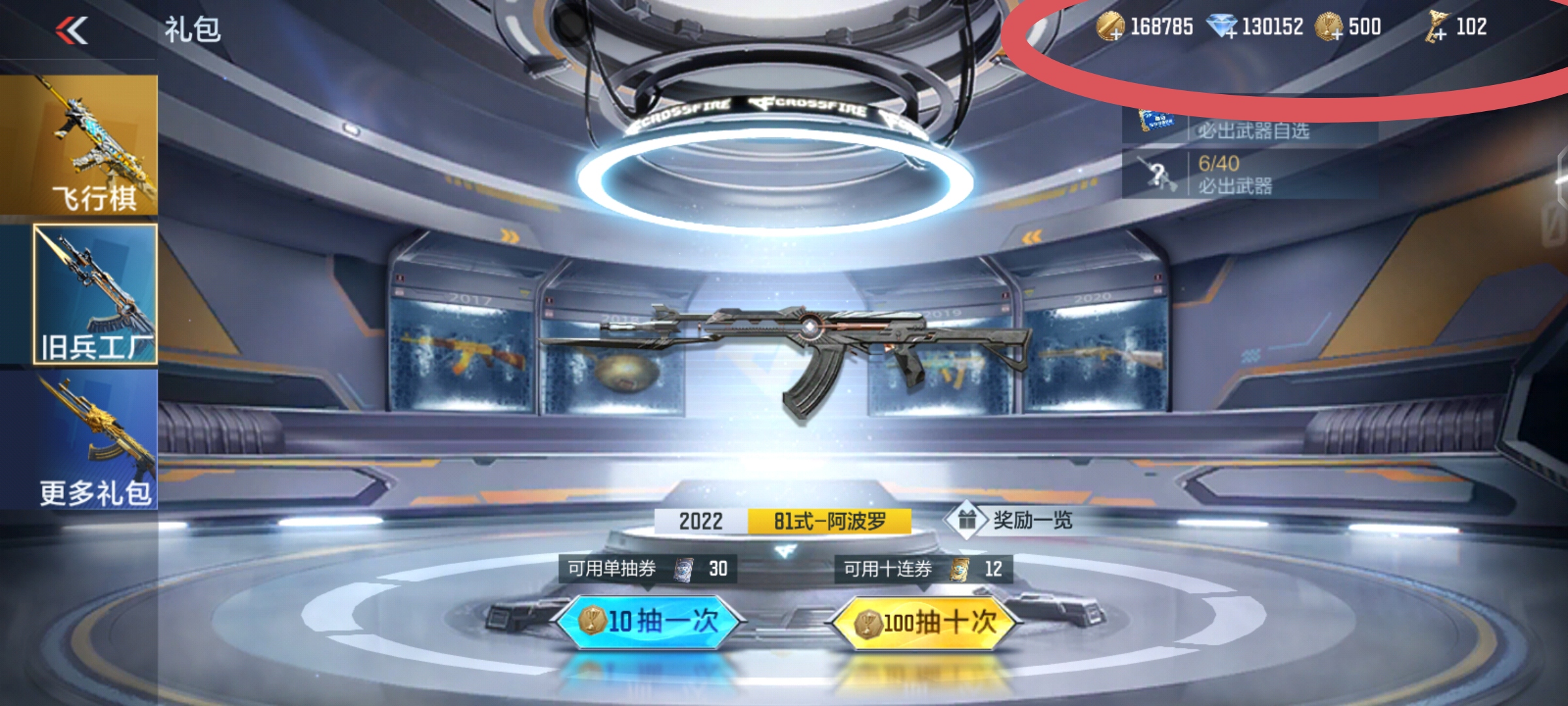 目前号里有13万钻石,102把钥匙,典藏飞行旗54抽,飞行棋积分26,经典之石10 经典结晶1