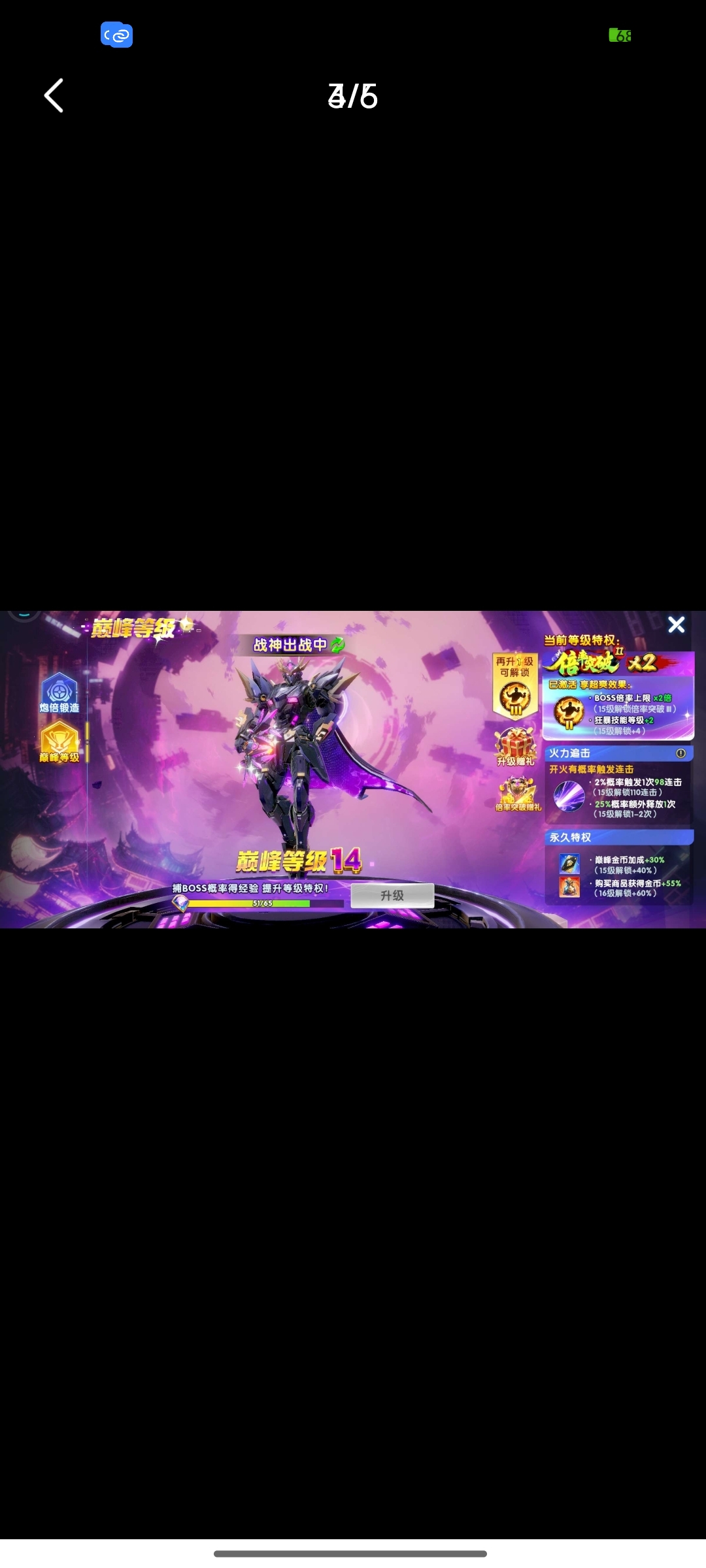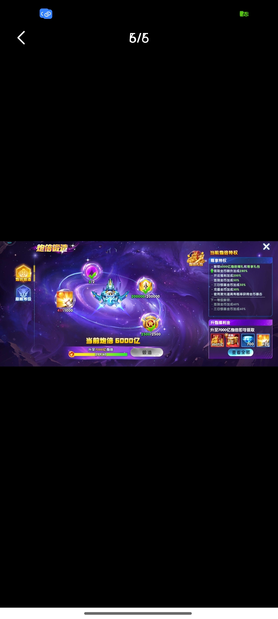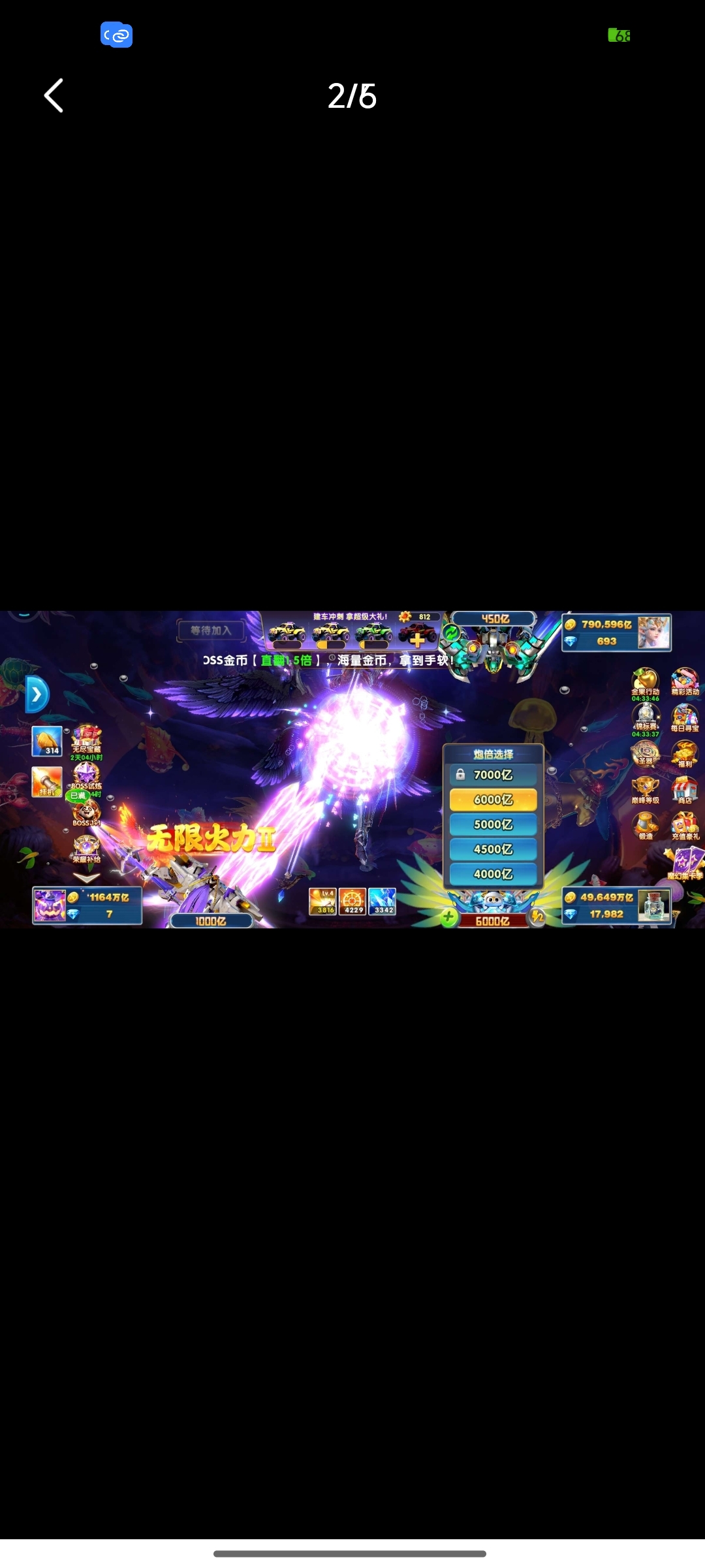 捕鱼大作战小米版本,原60亿炮,金币4.9兆,巅峰14级,翅膀已到期,破可回,巨多boss未打!
