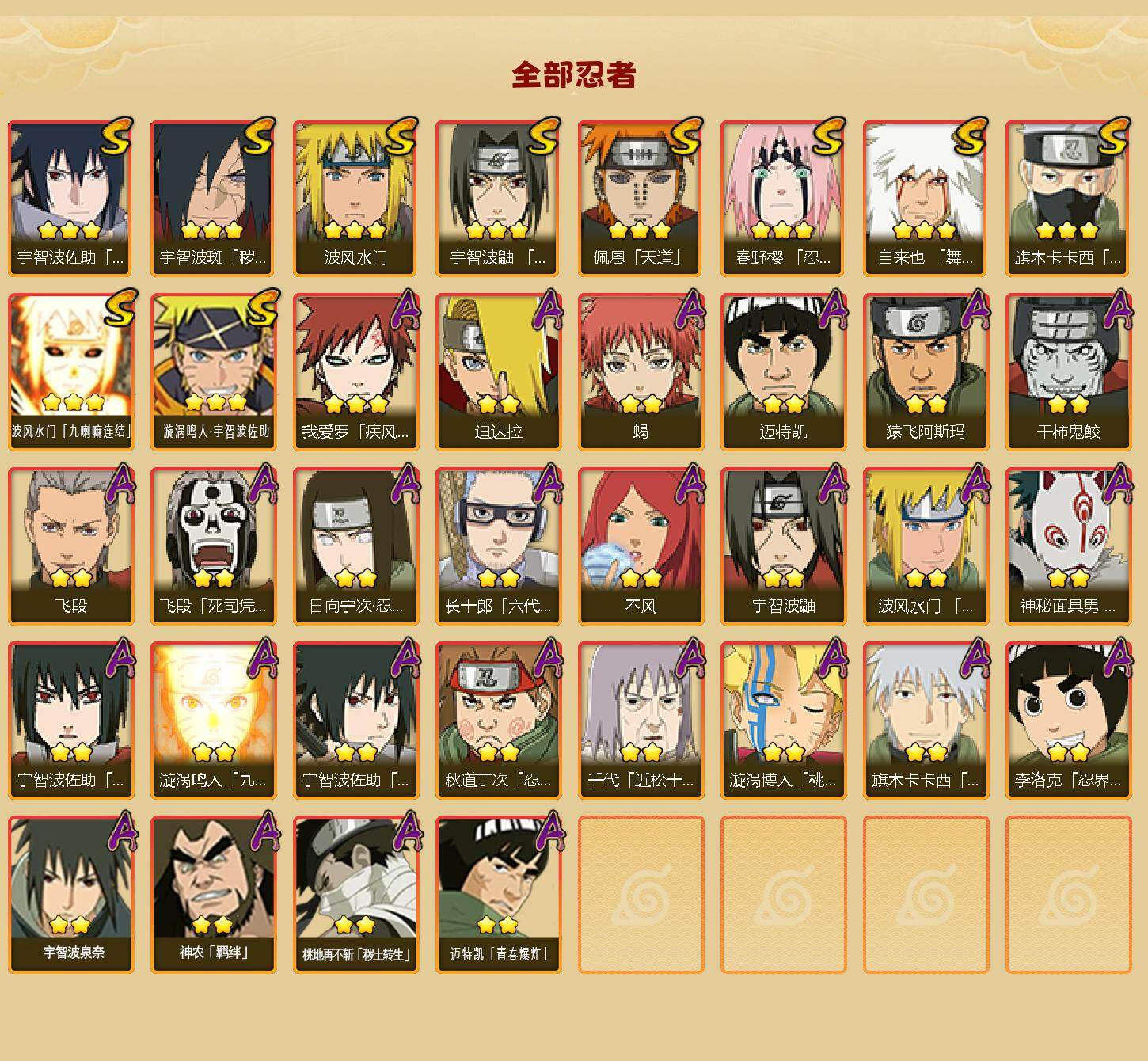 【HYYT240】V5/S忍10/A忍26/忍界大战-日向宁次/3星波风水门「九喇嘛连结」/死司凭血-飞段/宇智波鼬/永恒万花筒-宇智波佐助/须佐能乎-旗木卡卡西/迈特凯/蝎/天道-佩恩/3星漩涡鸣人·宇智波佐助/波风水门/忍界大战-秋道丁次/桃式显现-漩涡博人/3星我爱罗「疾风传」/忍界大战-李洛克/忍者之路-神秘面具男/六代目水影-长十郎/青年-波风水门/舞之豪杰-自来也/2星桃地再不斩「秽土转生」/飞段/2星神农「羁绊」/猿飞阿斯玛/不风/忍界大战-春野樱/万花筒写轮眼-宇智波佐助/2星宇