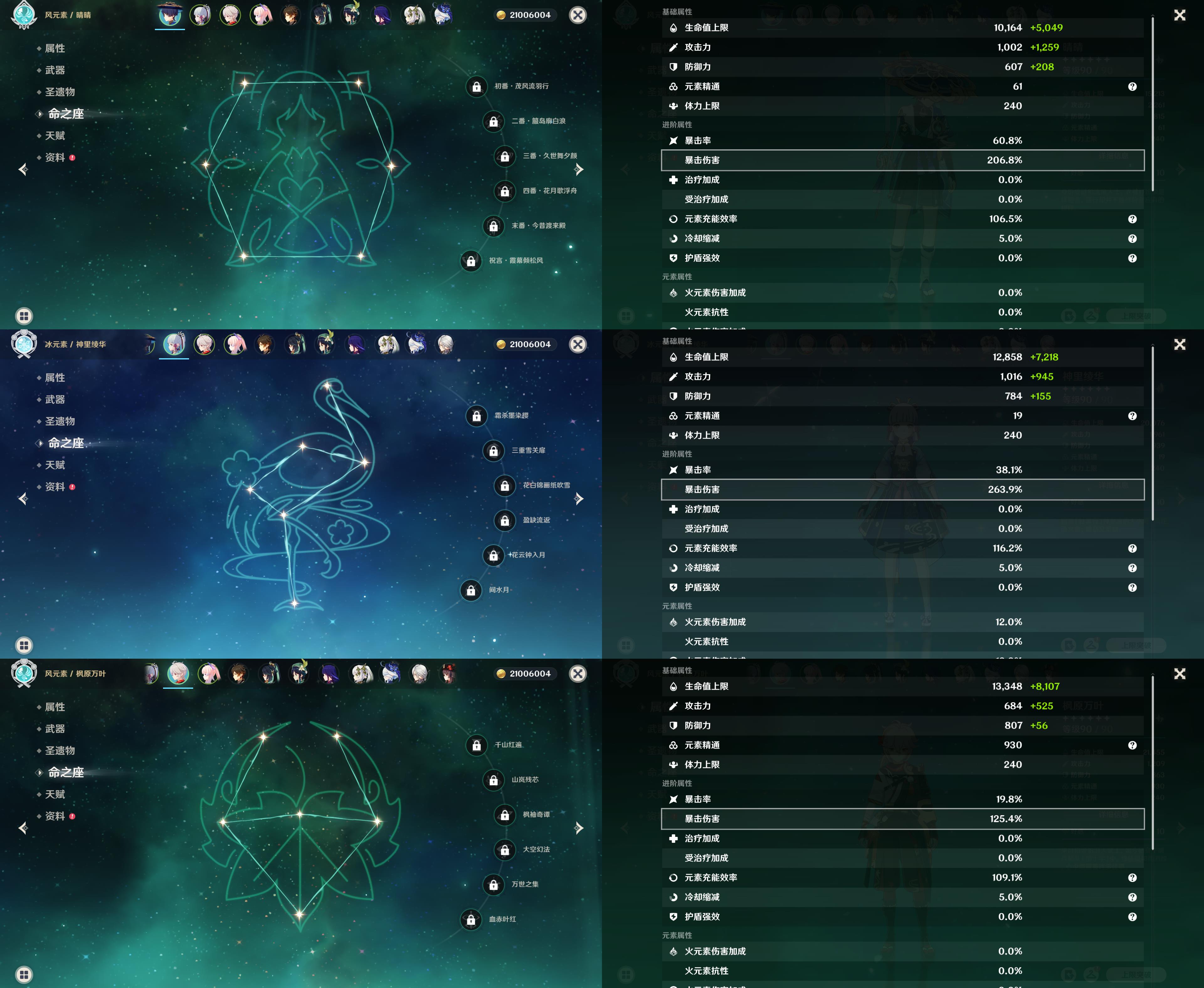 60级/37黄/女主/21个五星角色/9个五星武器/神里绫华/枫原万叶/