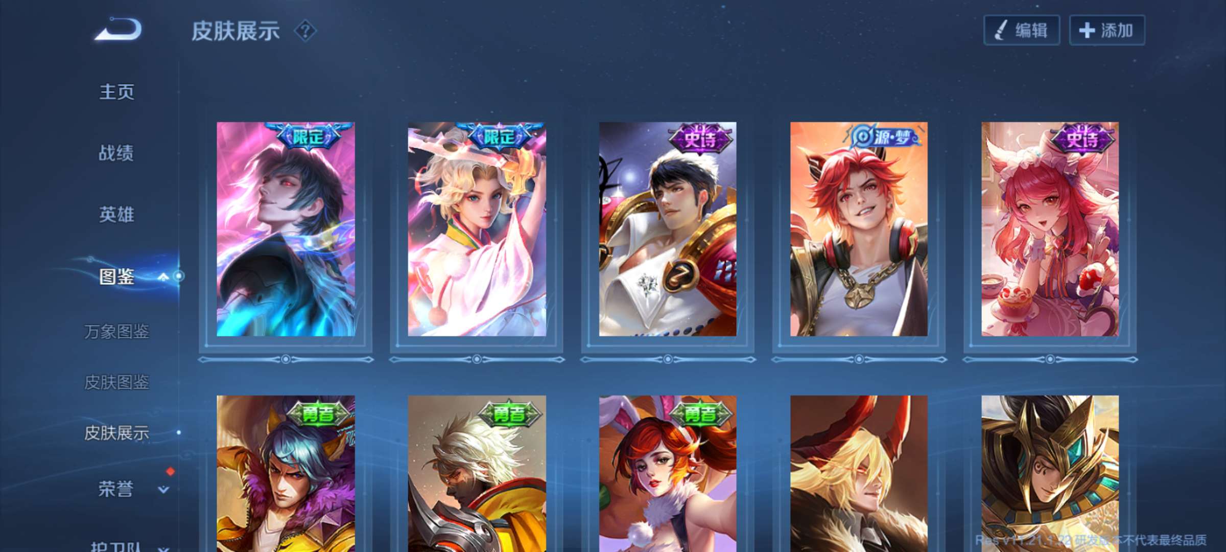 36英雄24皮肤,一传说多史诗皮肤。含王者荣耀体验服,全英雄通用98皮肤,可进新区,无游戏记录