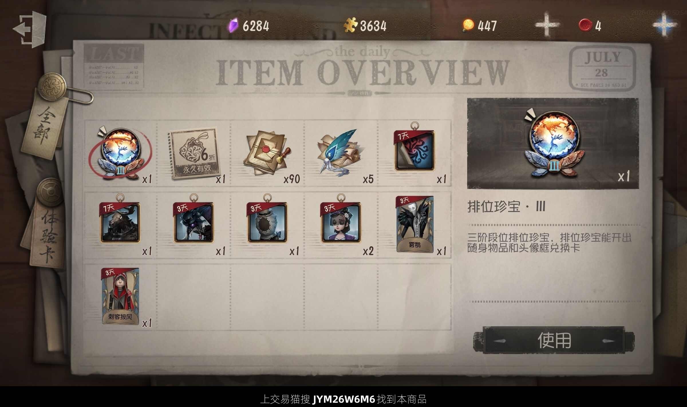 随身物品数量: