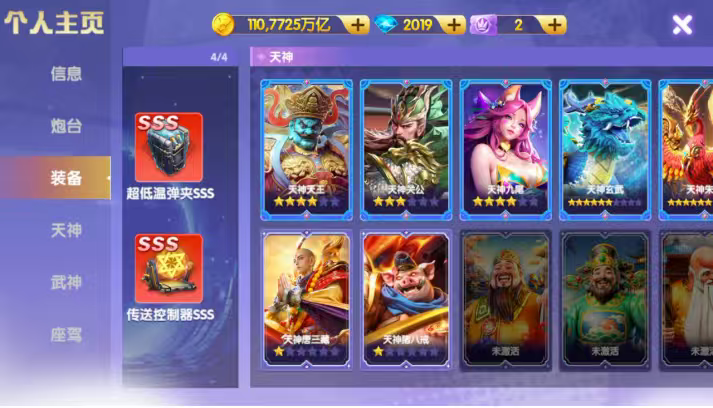 小米 110京神电 万5炮 天王狐狸4⭐️三级洪荒 差一个武神连斩1500 8开任意修改
