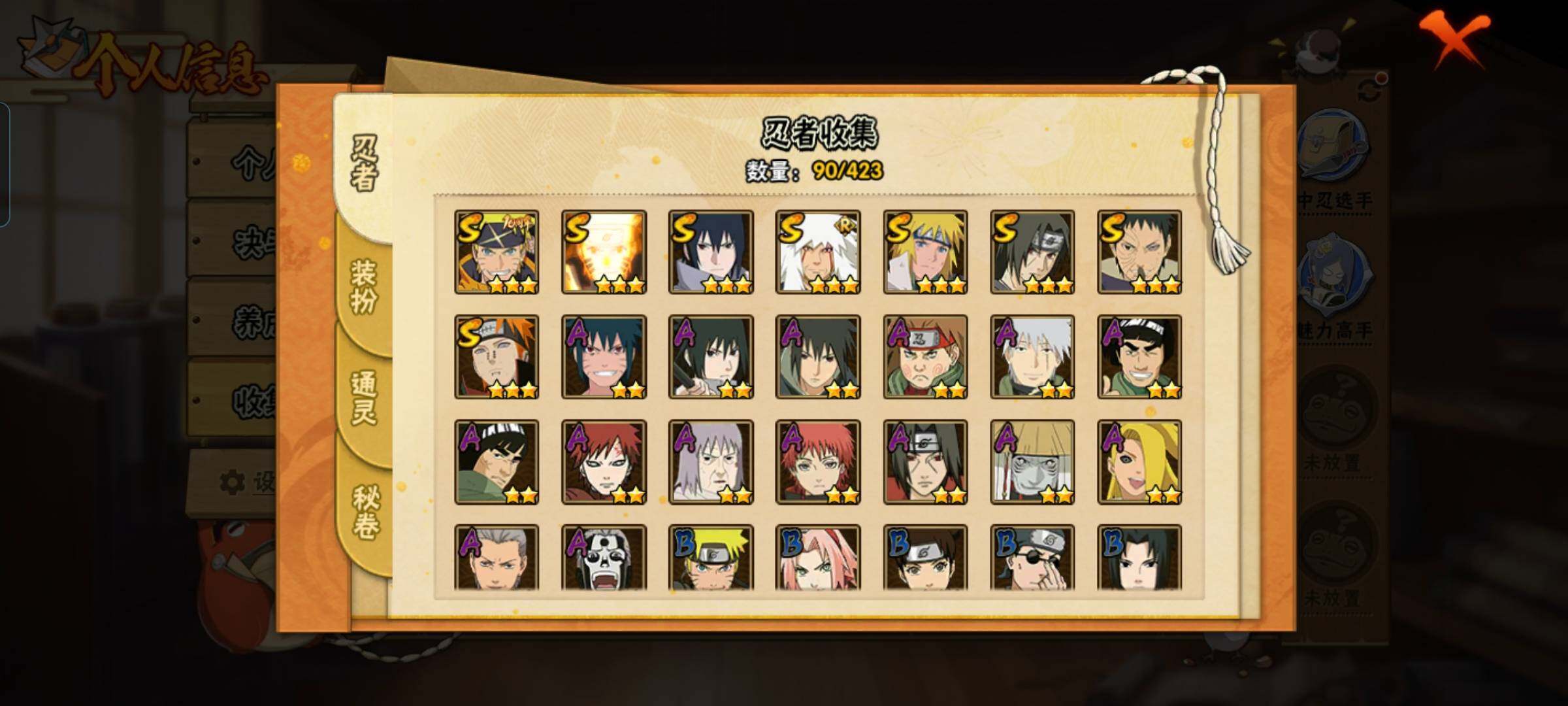 tc47,464万战,8s忍15a忍,忍战带土九喇嘛鸣人万花筒佐助须佐能乎鼬宇智波泉奈,漩涡鸣人·宇智波佐助(3星),佩恩「天道」(3星),漩涡鸣人「九喇嘛连结」(3星),宇智波佐助「永恒万花筒」(3星),自来也「舞之豪杰」(3星),波风水门(3星),宇智波带土「忍界大战」(3星)