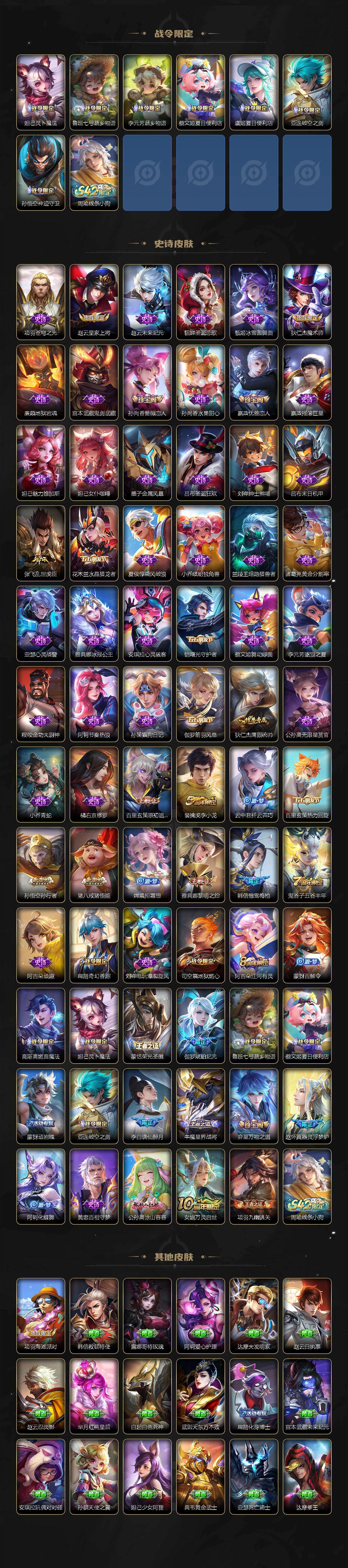V7-272皮肤1典藏11传说*神鉴启示录*时之奇旅*电玩雷克斯*浮生妄*碎云*淬星耀世*零号赤焰*云鹰飞将*孙尚香末日机甲*狄仁杰超时空战士*神树通天*鸣野蒿