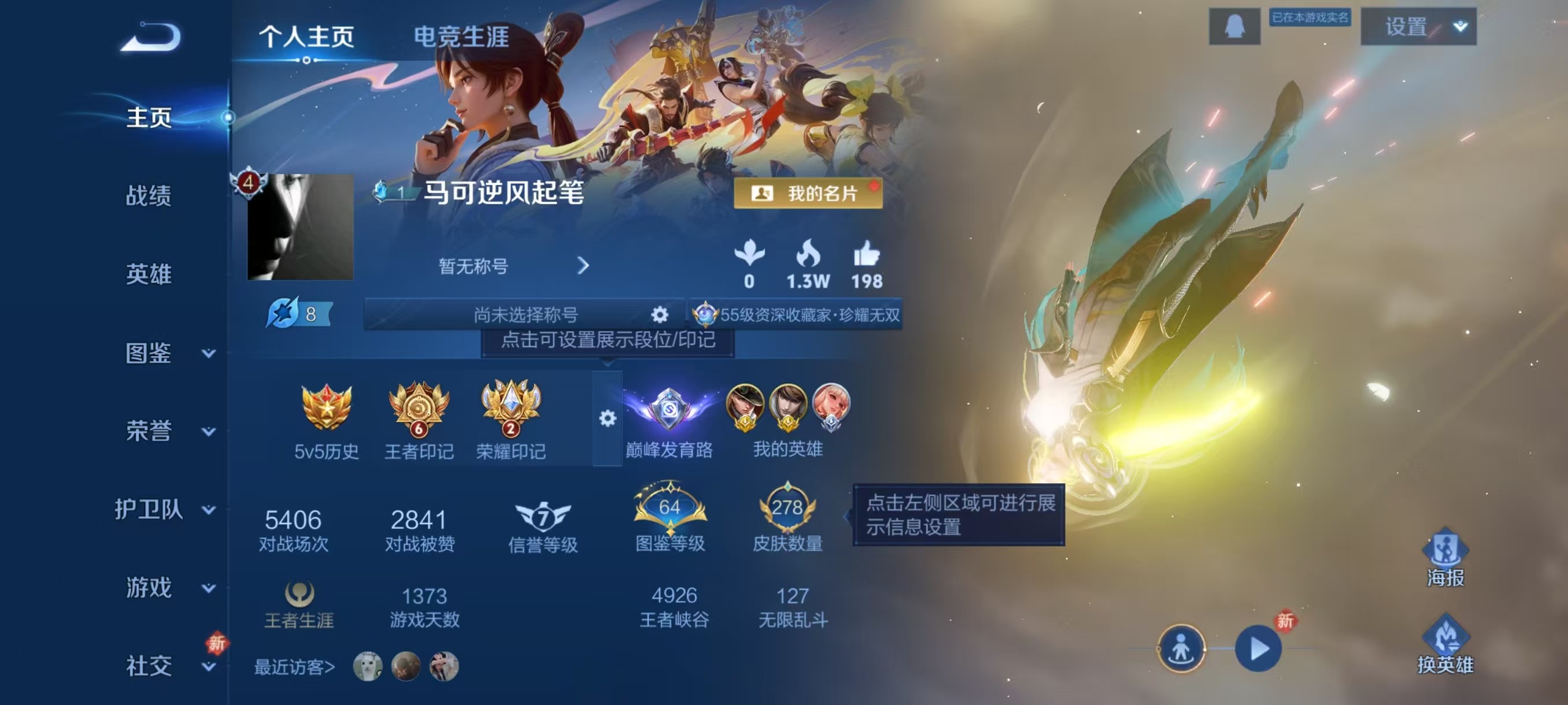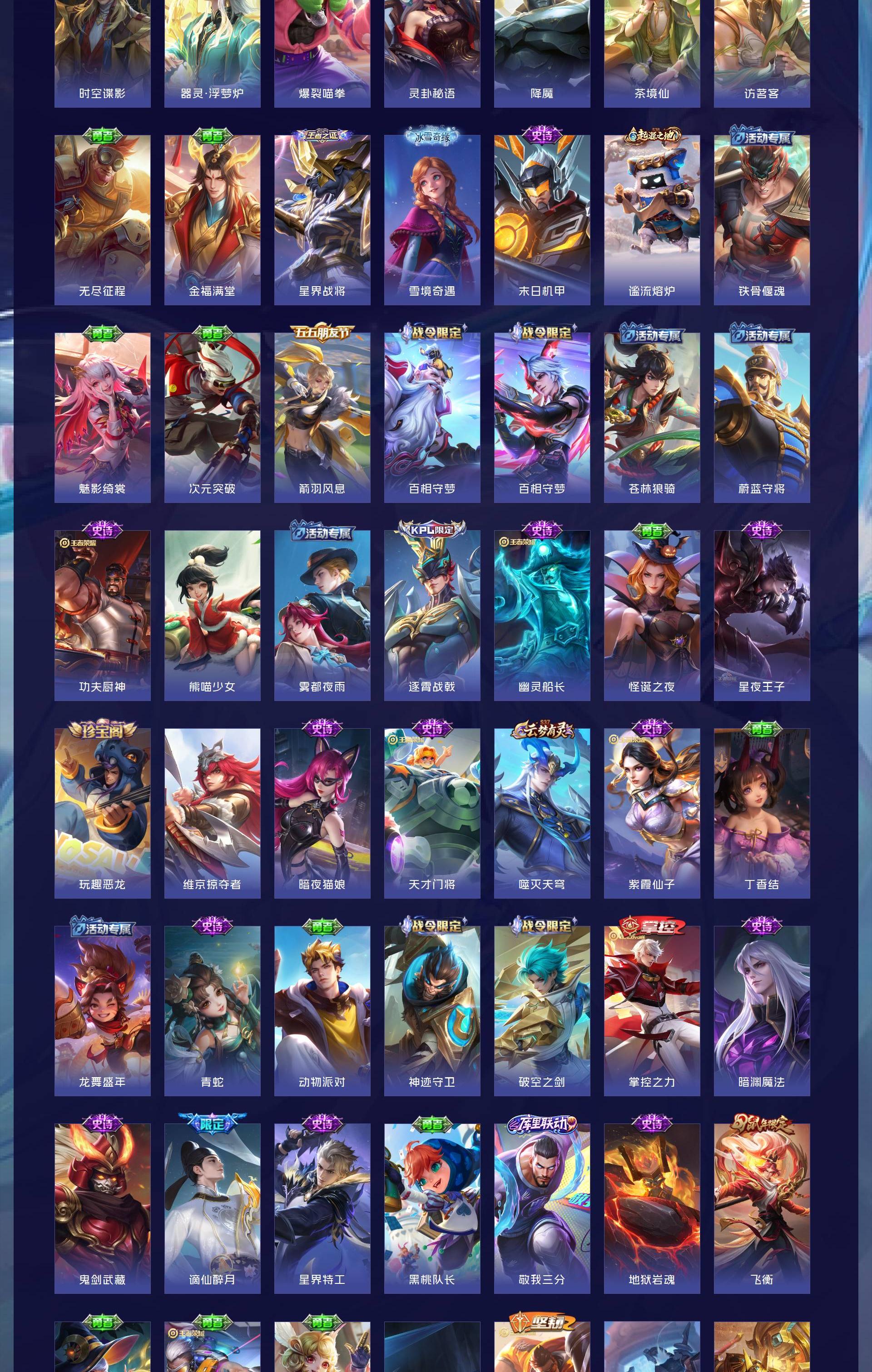 V8 皮肤278 英雄127 至尊星耀 荣耀典藏1 珍品无双1 珍品传说5 传说24 其他皮肤254