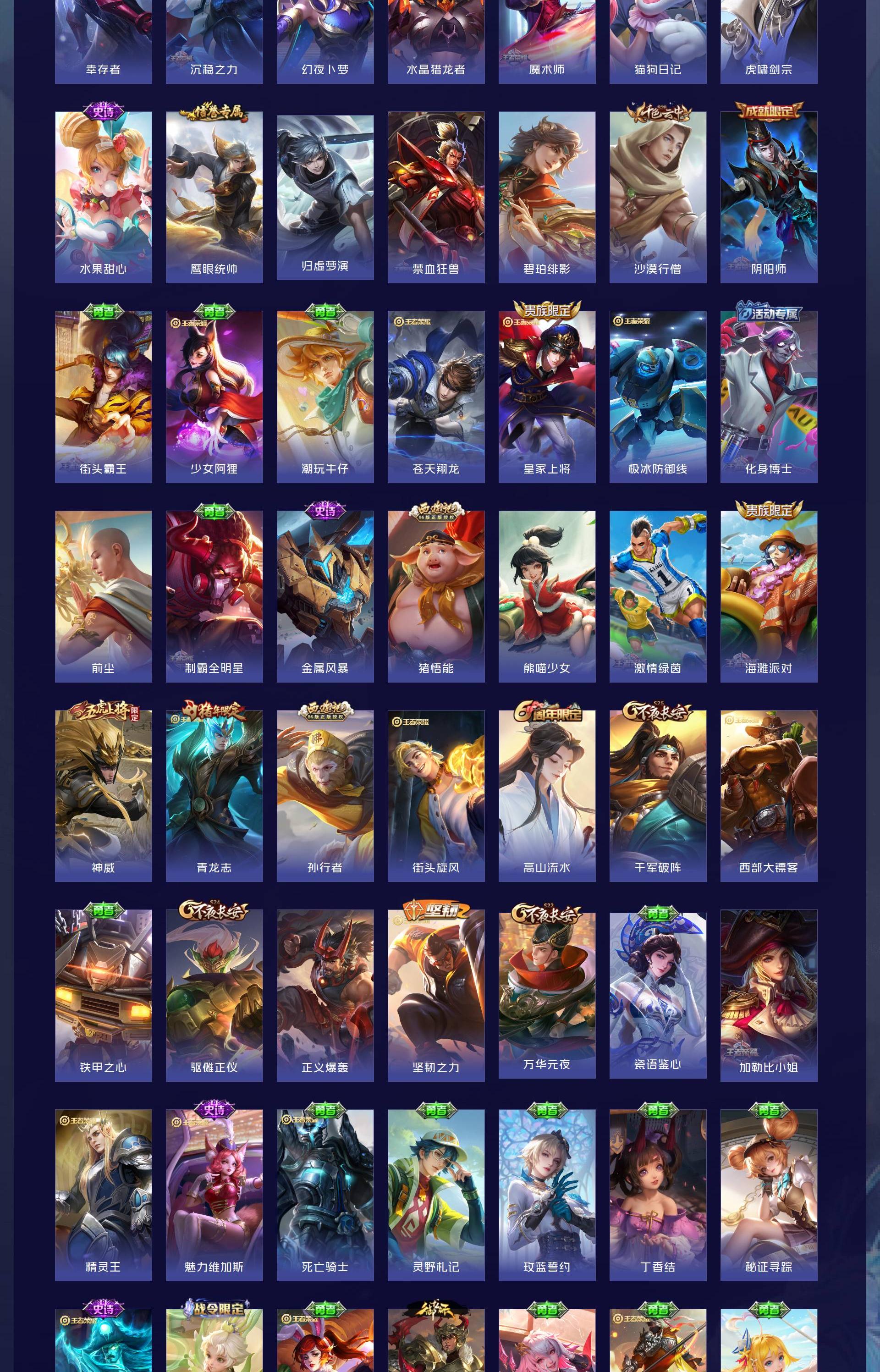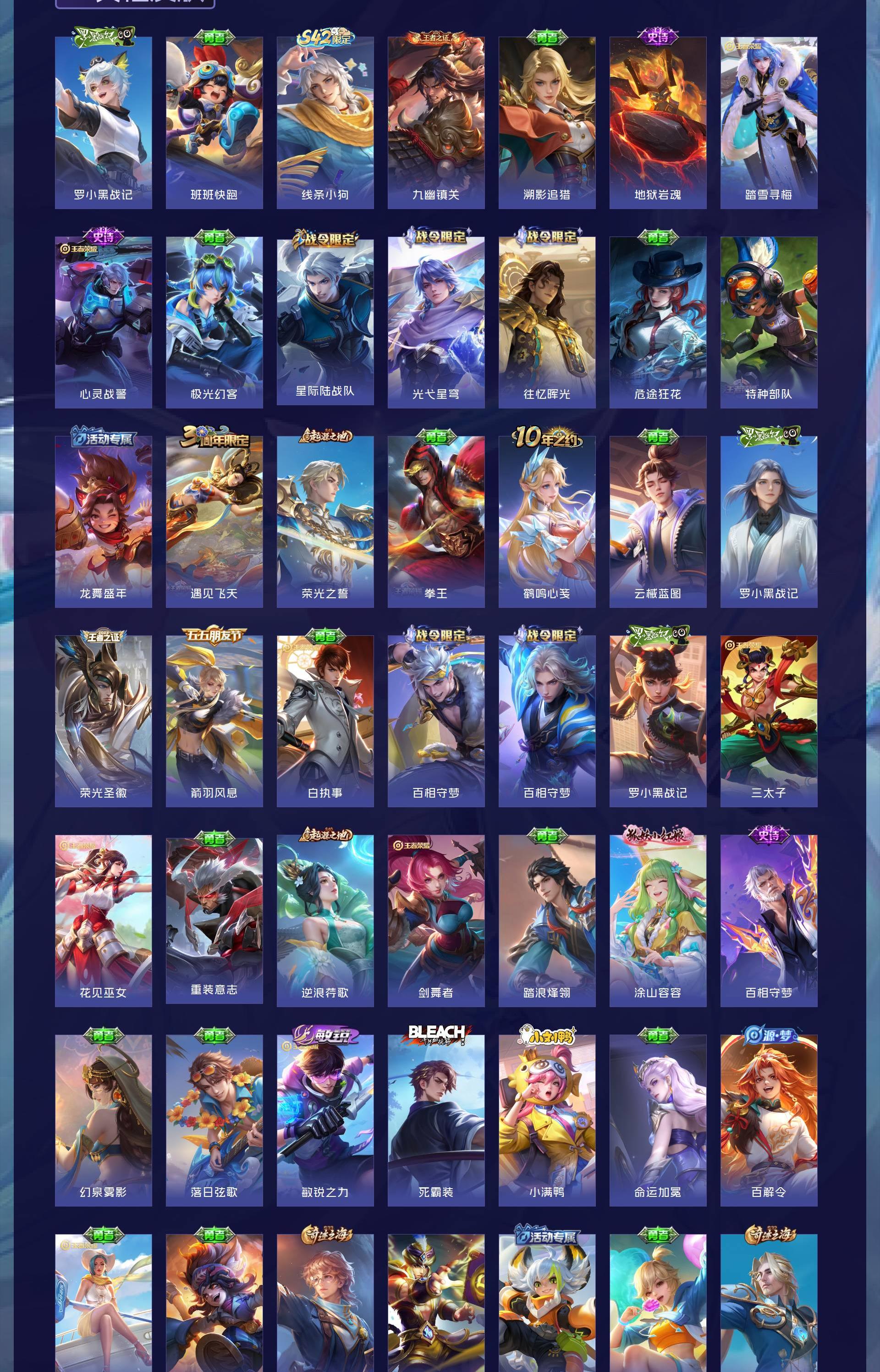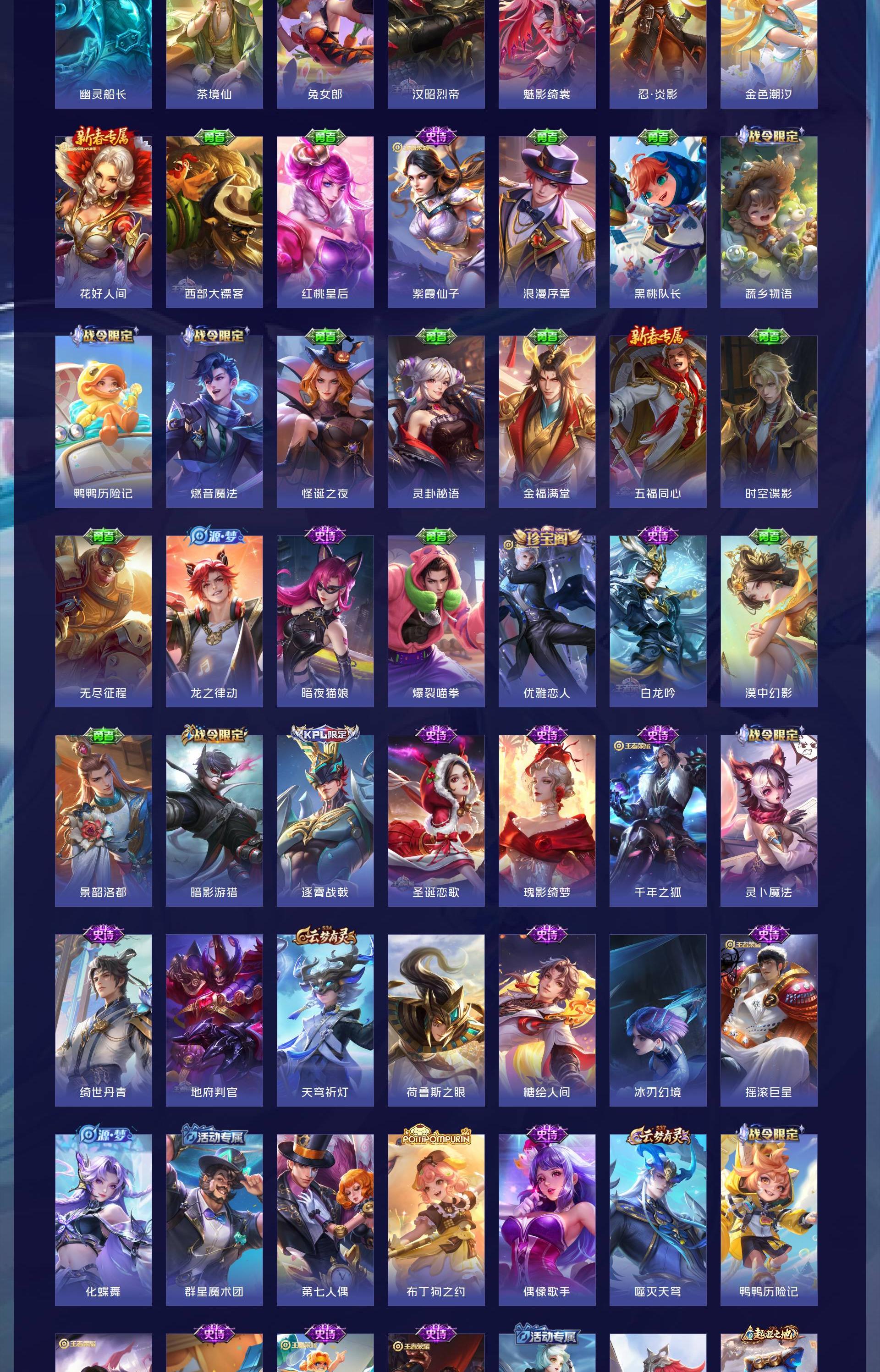 V8 皮肤292 英雄128 至尊星耀 荣耀典藏1 珍品传说3 传说14 其他皮肤278