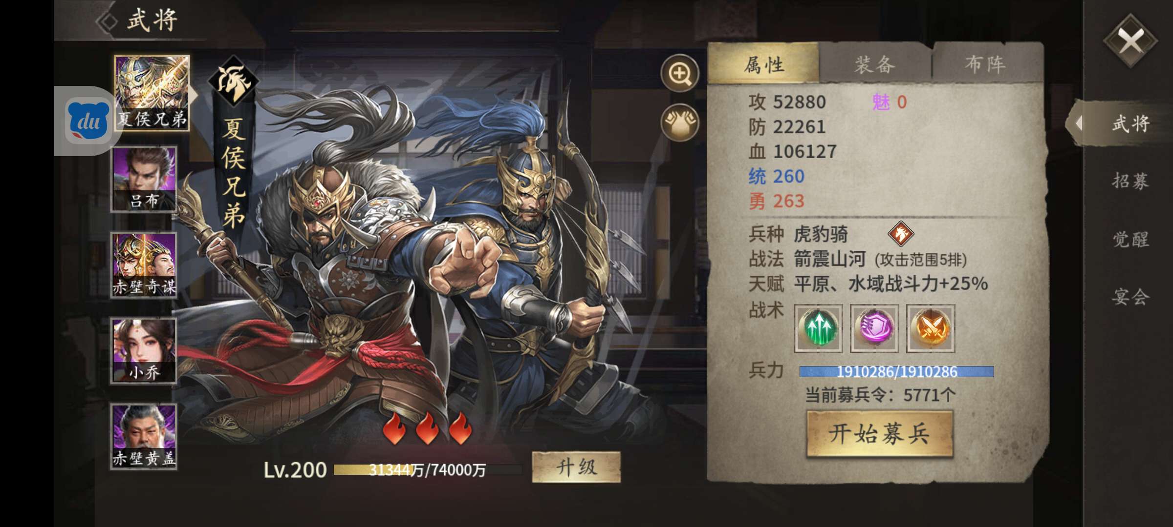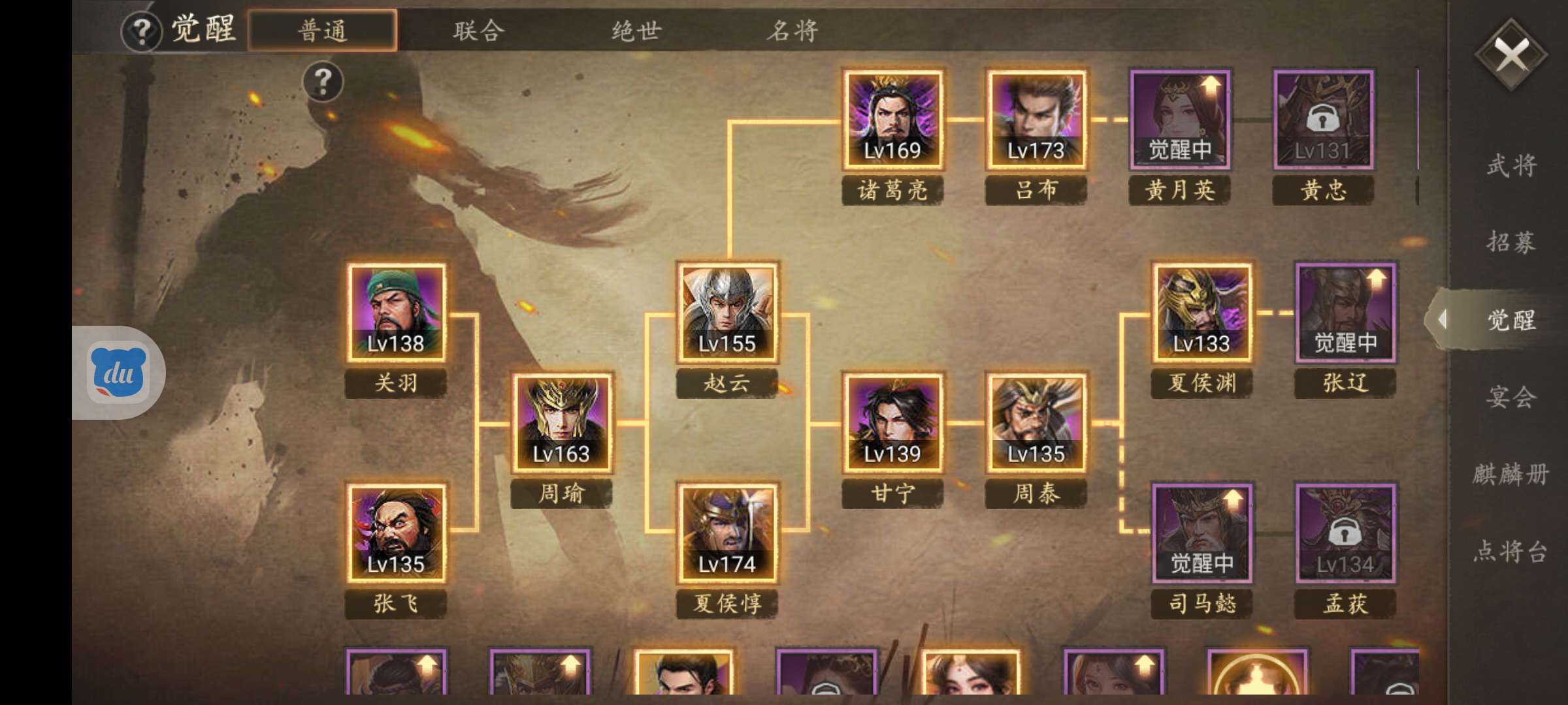 很少玩 有点卡觉醒。三层夏侯 一层赤壁