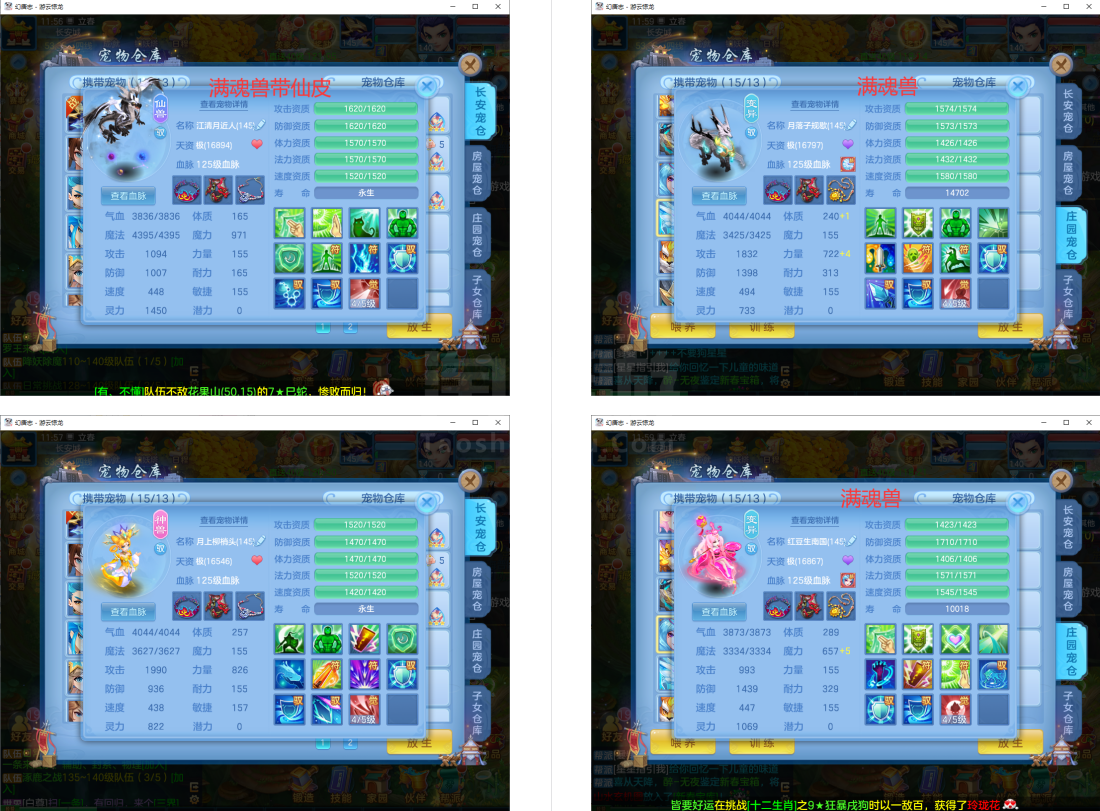 (140龙宫/男)游云惊龙/四个月换绑★无双重★2件13段2件12段2件11段,满魂仙兽(带仙皮)内丹神兽蛇+12个6多特殊5(总9满魂兽)14红13专属血脉,12个宝宝皮肤,高级坐骑+金拍庄园,3656成就