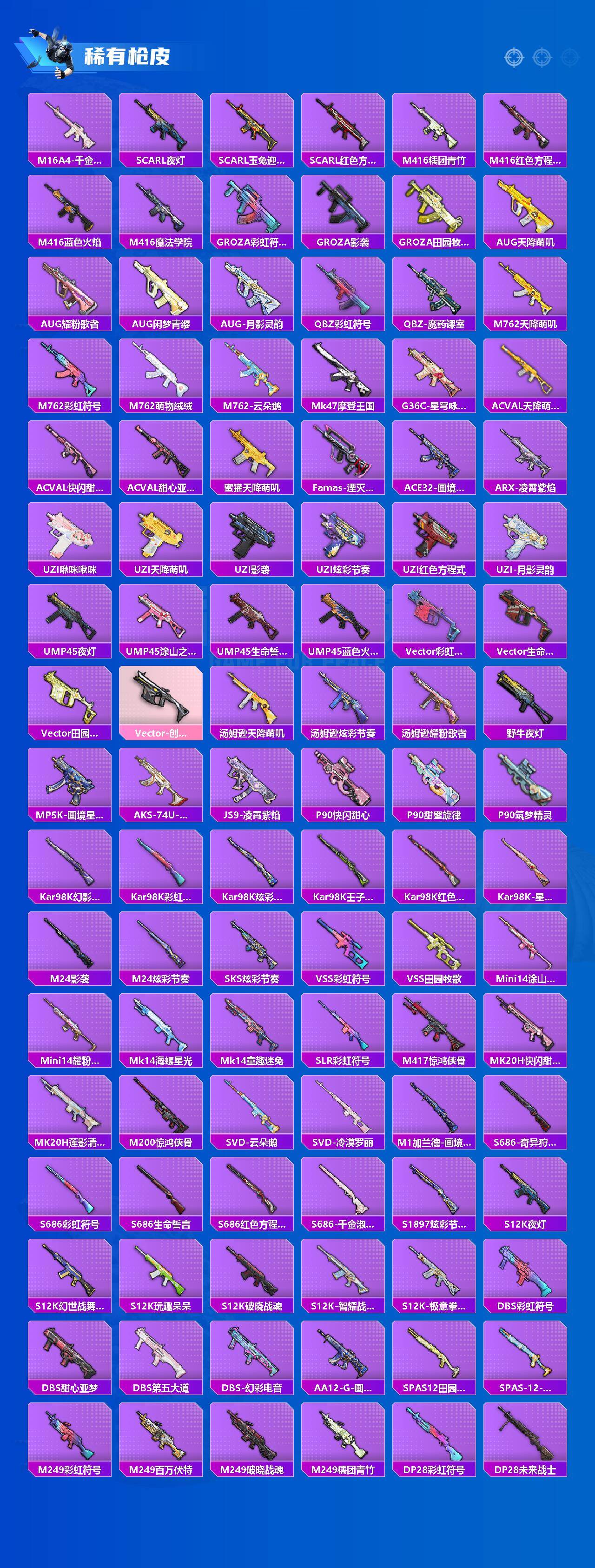 【粉色枪皮等级】:AKM-绿萝繁花(五级),SCAR-L-锦绣绵绵(五级),M762