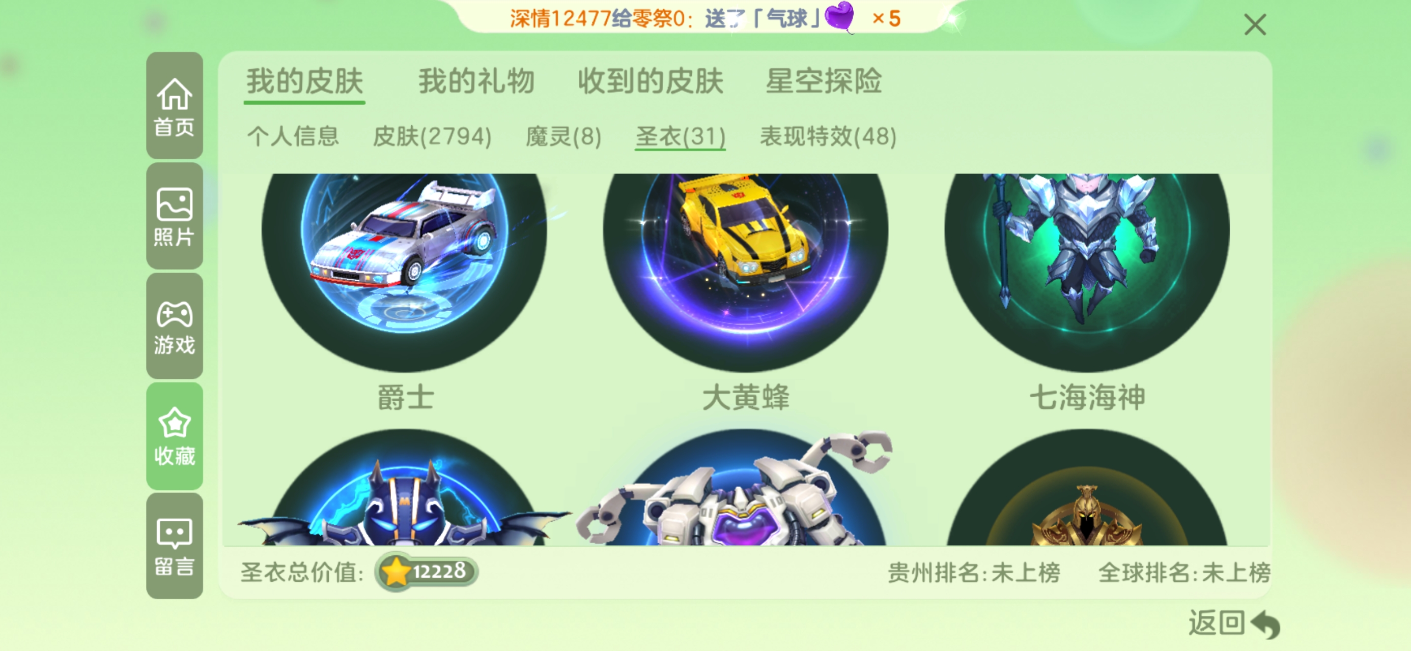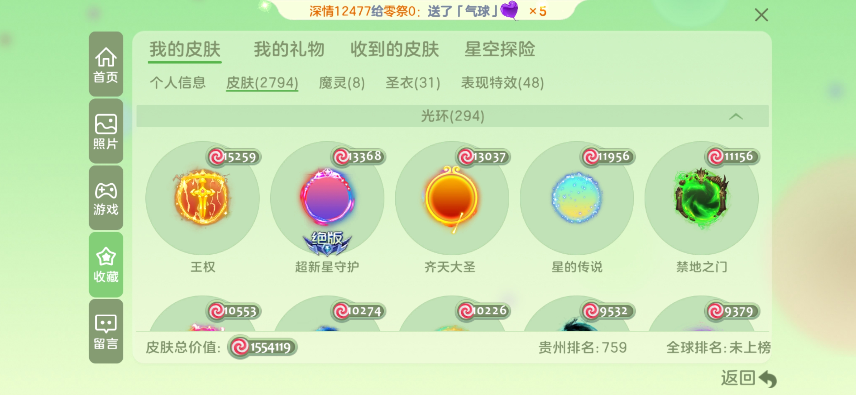 皮肤总价值:
