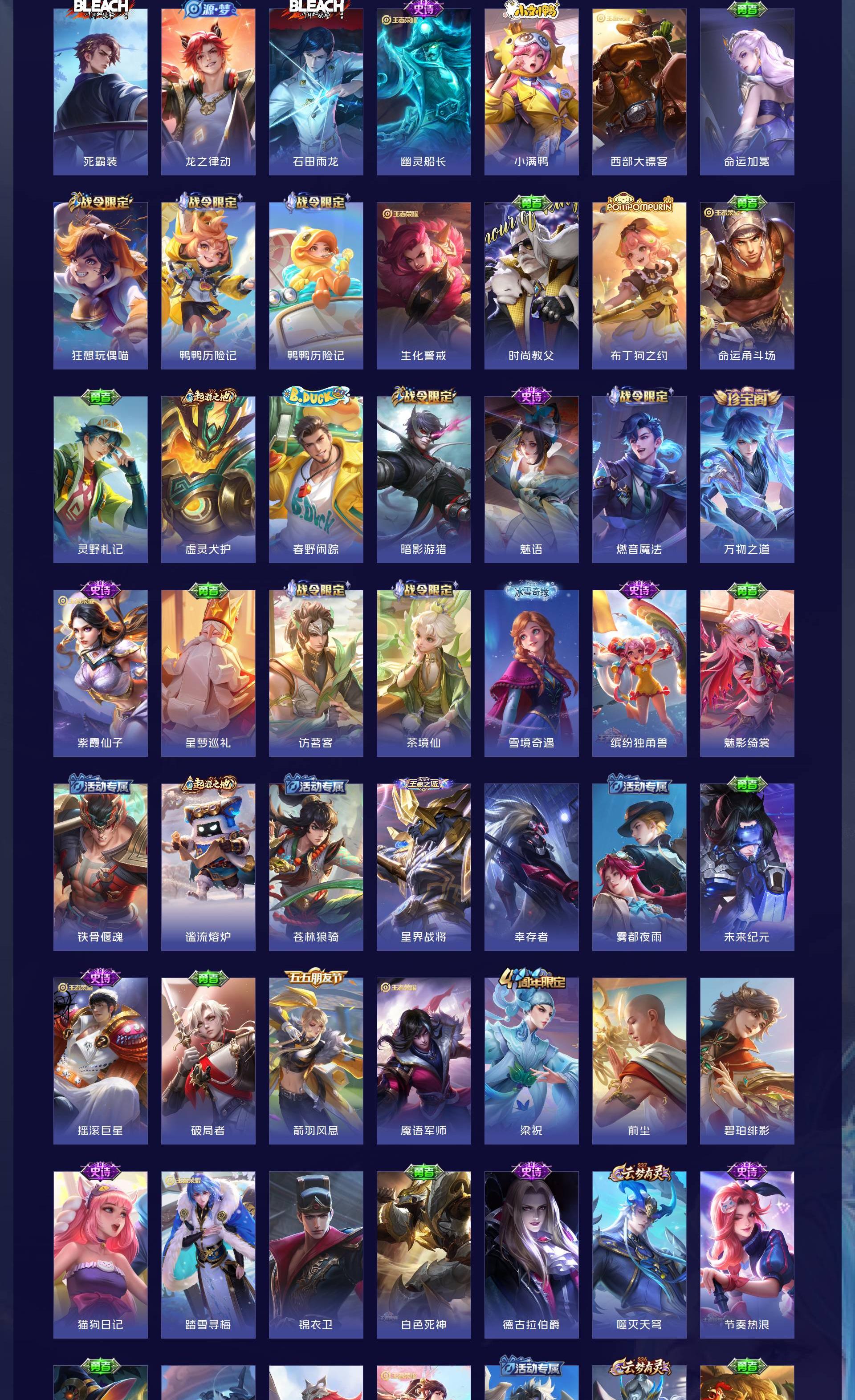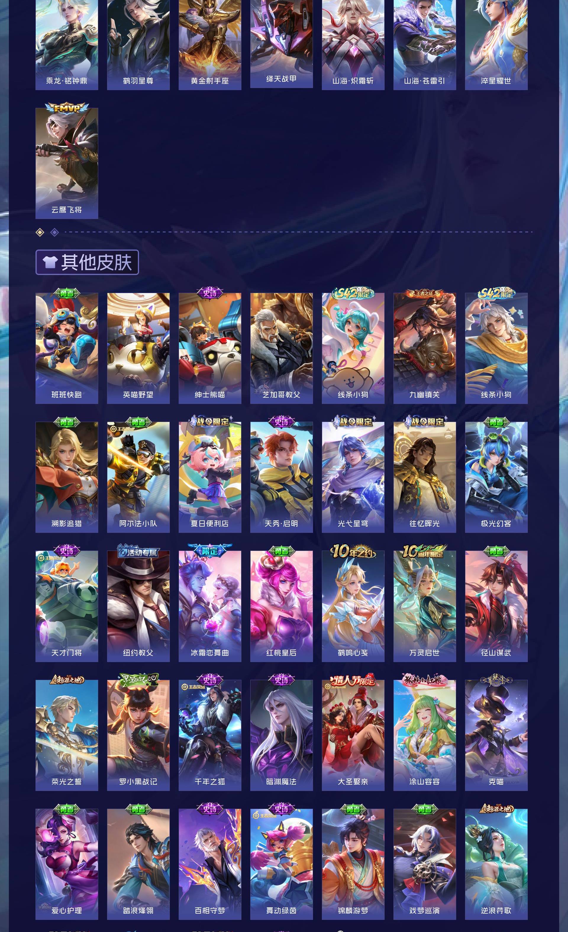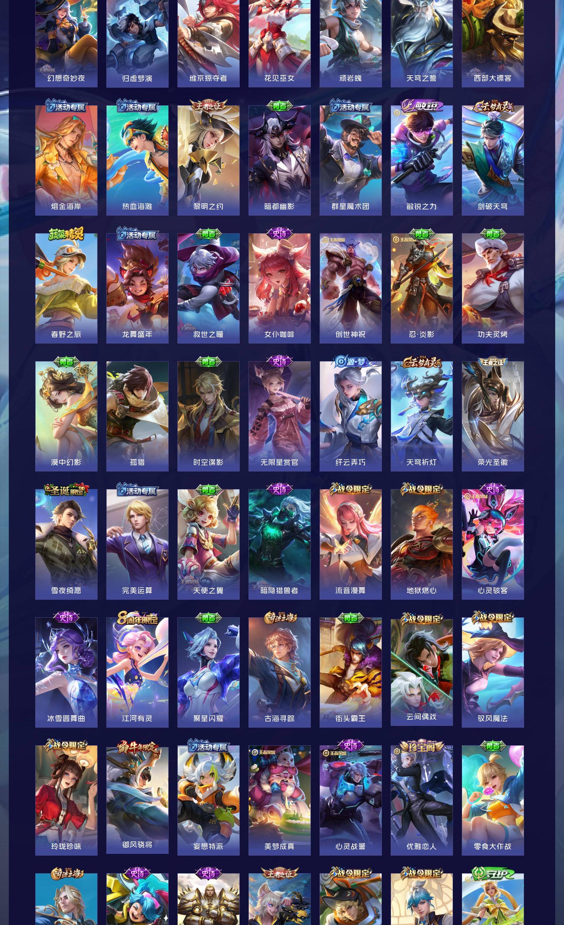 V8 皮肤293 英雄127 荣耀王者 荣耀典藏1 无双皮肤4 珍品传说1 传说15 其他皮肤278