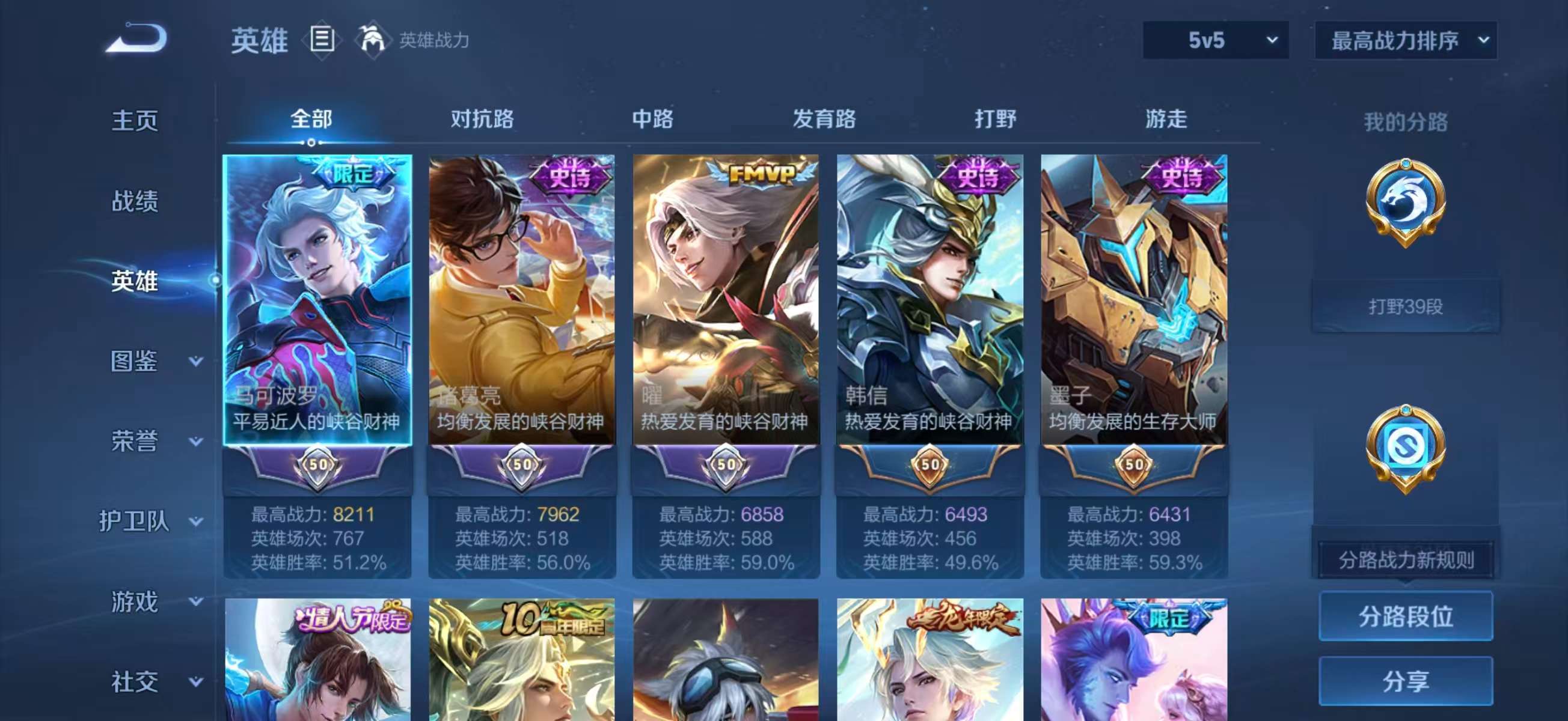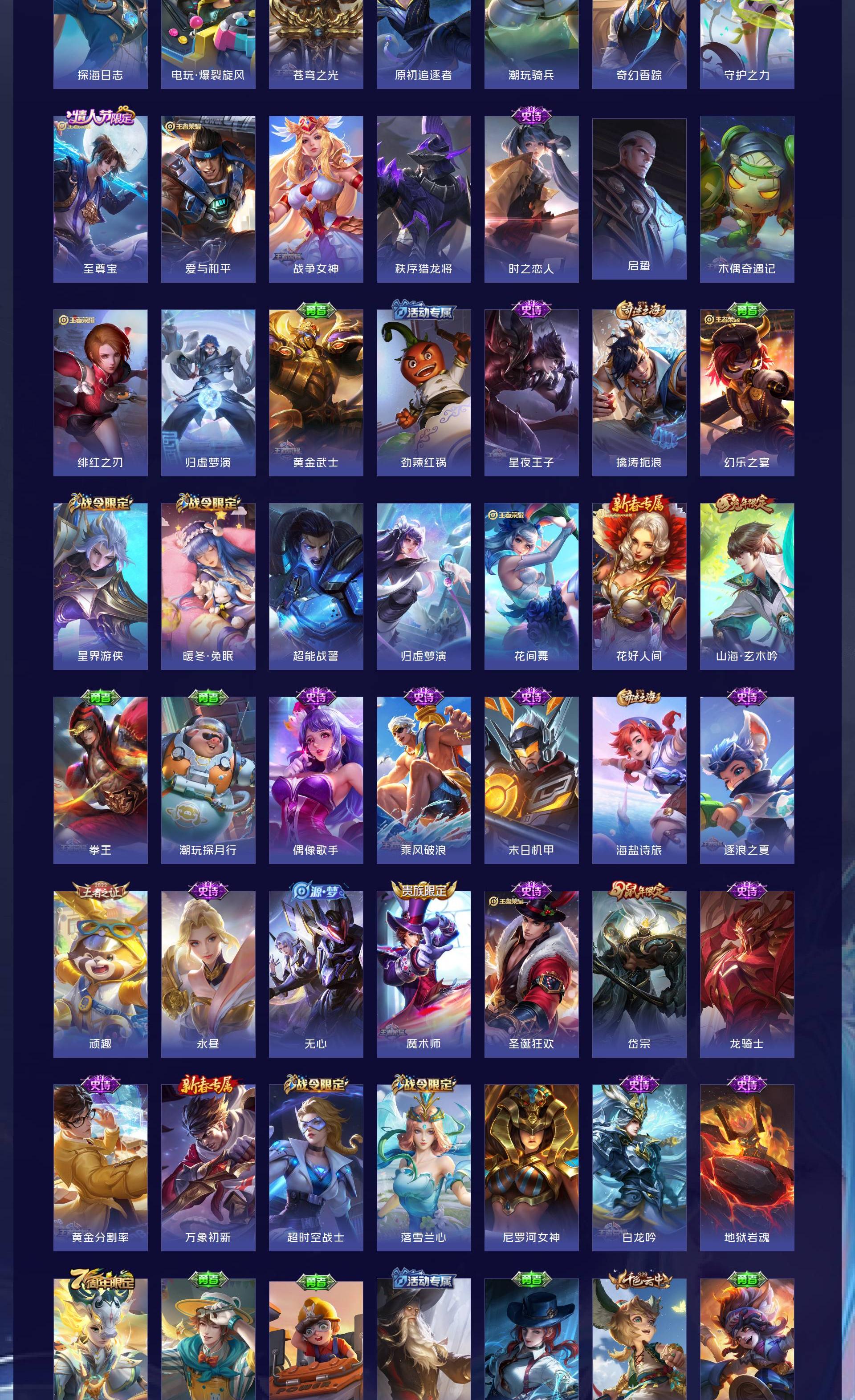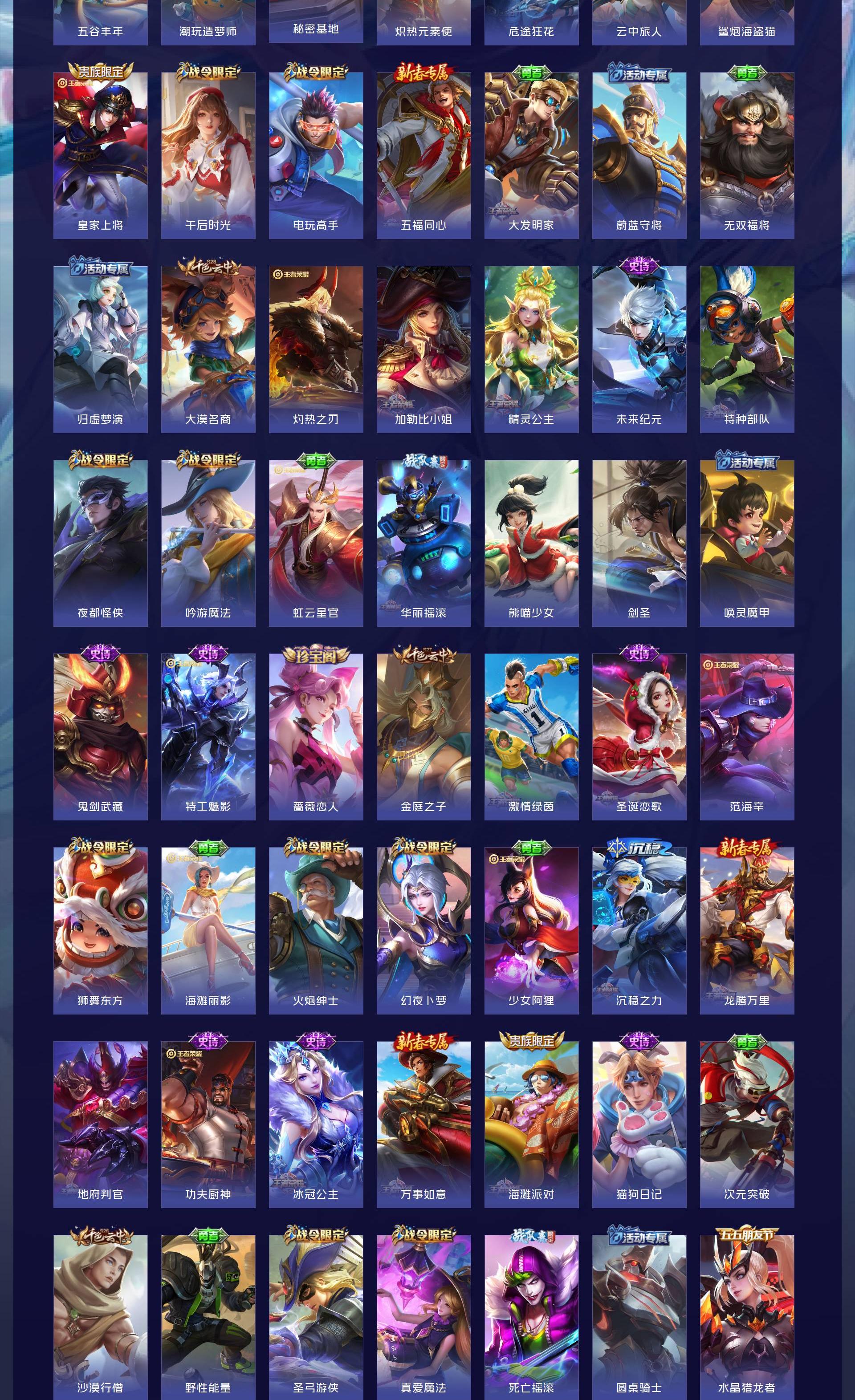 V8 皮肤293 英雄127 荣耀王者 荣耀典藏1 无双皮肤4 珍品传说1 传说15 其他皮肤278