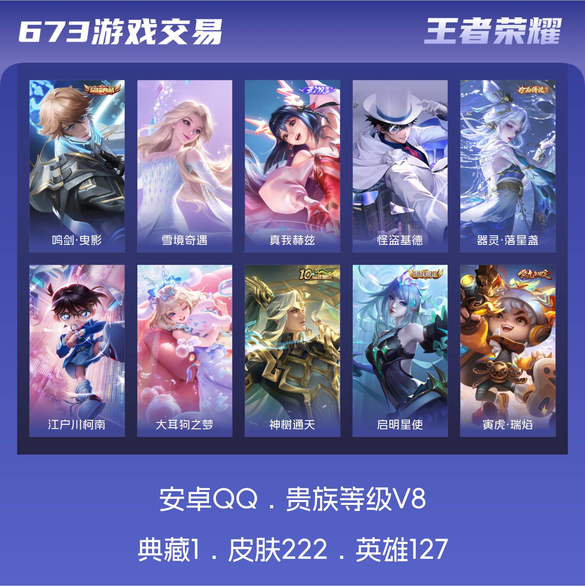 安卓QQ/永恒钻石/222皮肤/127英雄/1典藏/0珍品无双/2无双/4珍品传说/15传说/63史