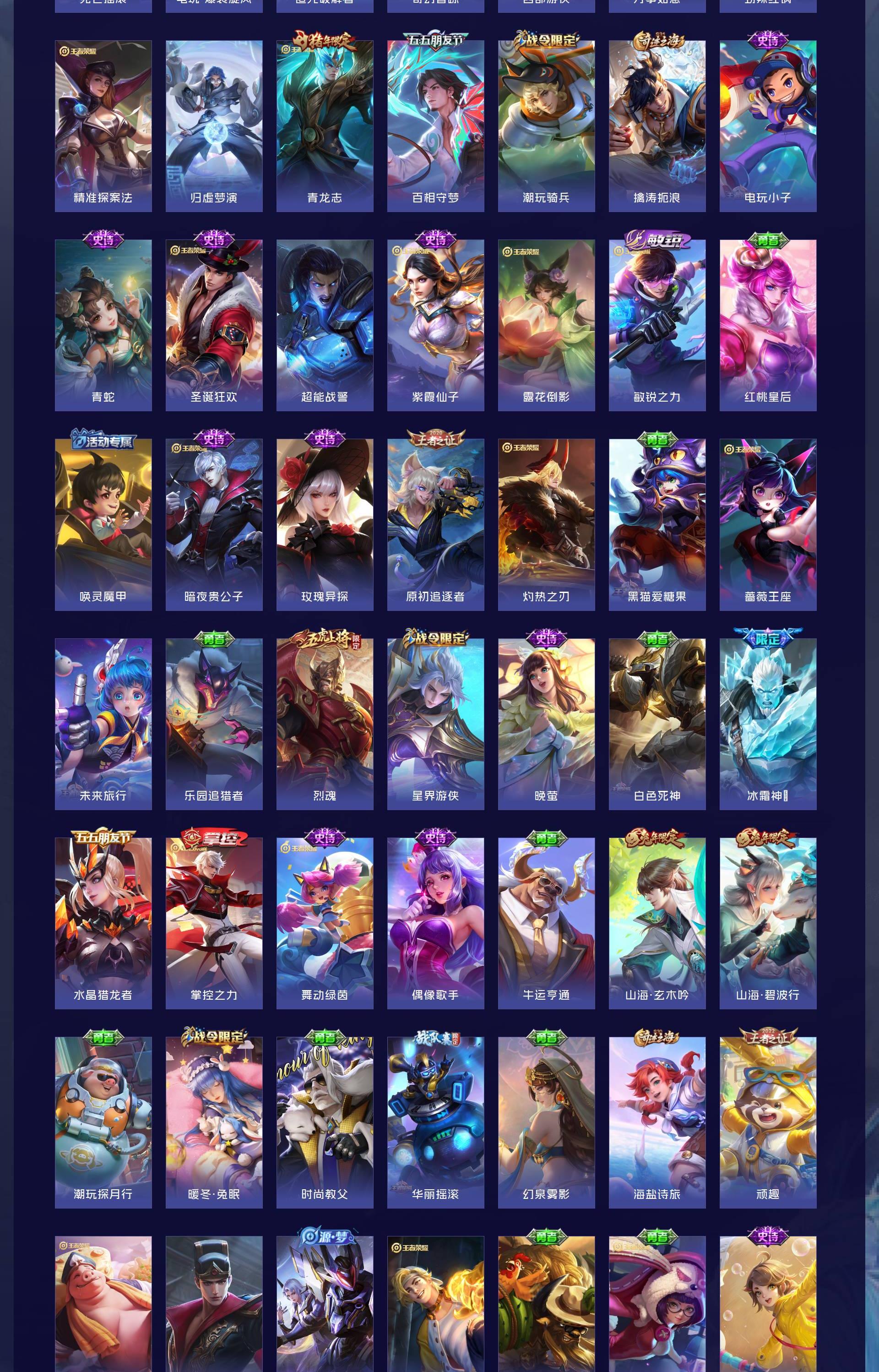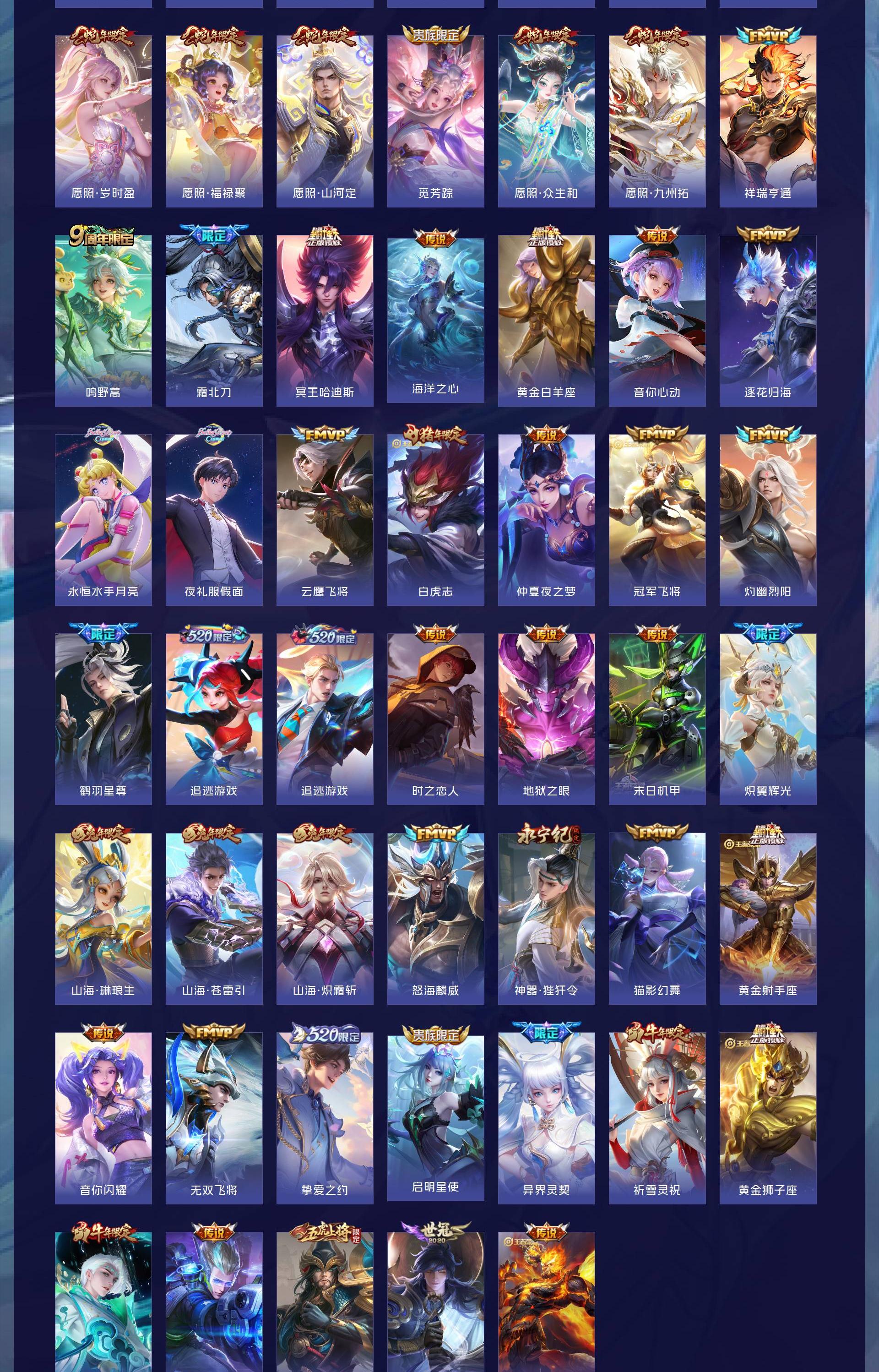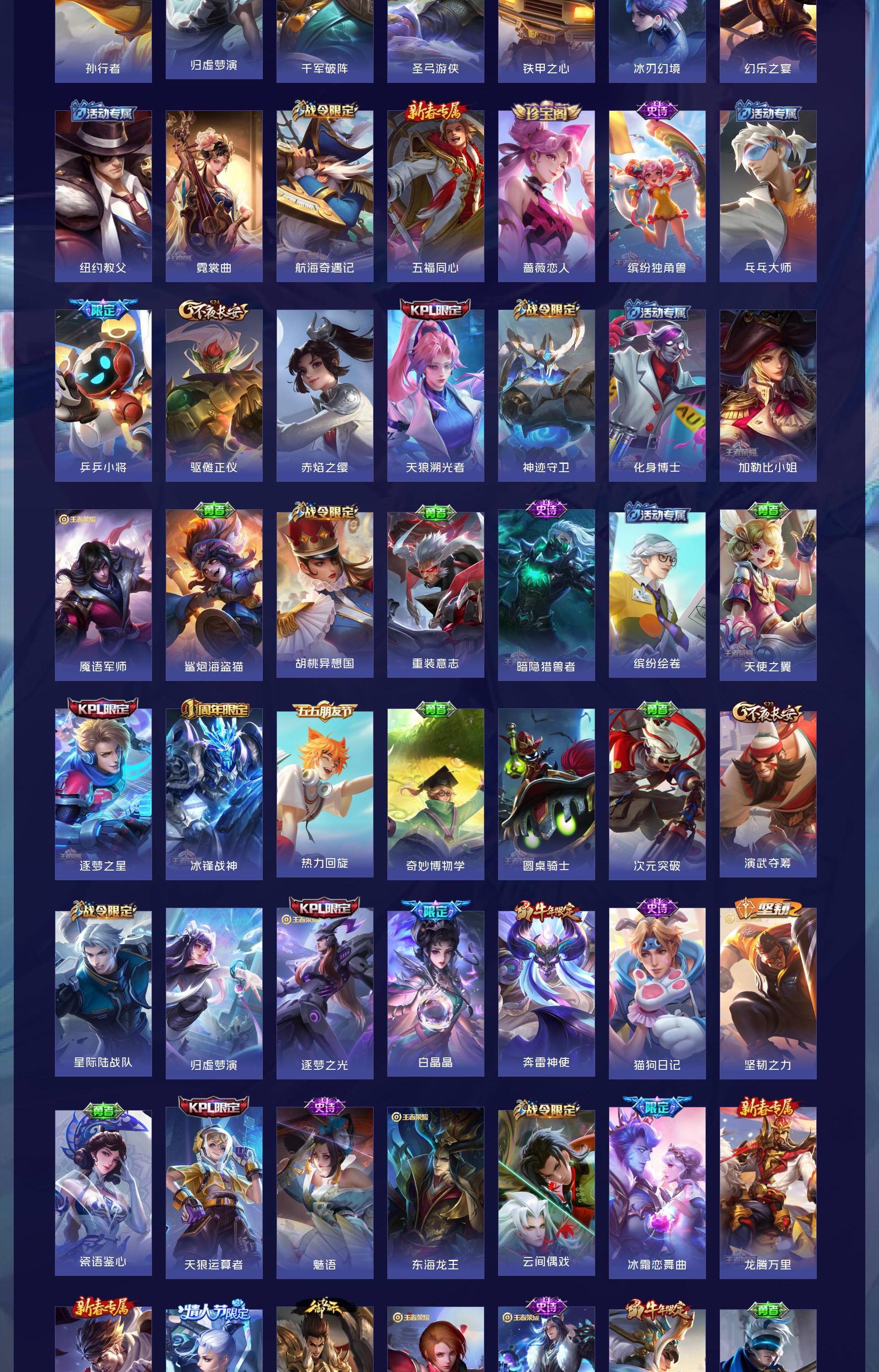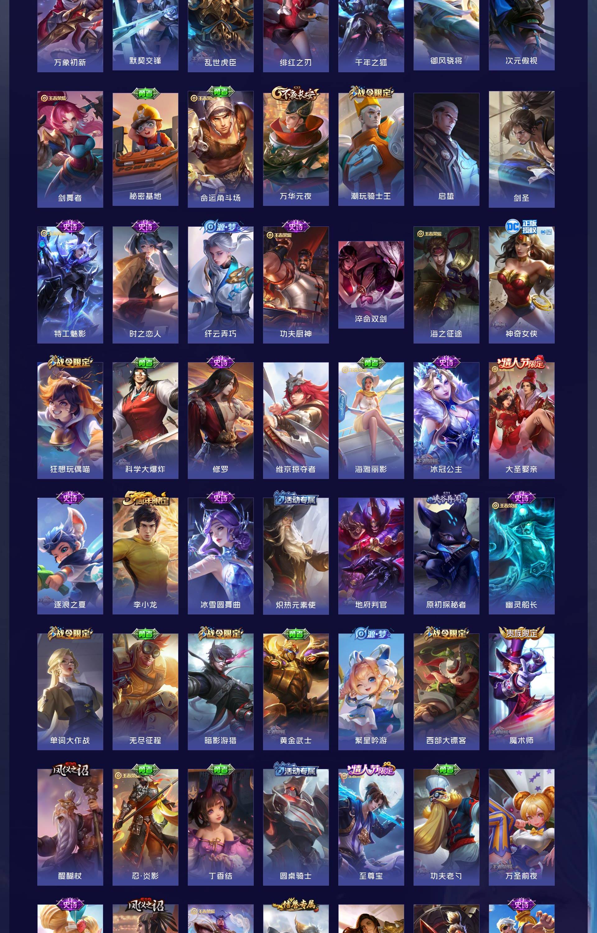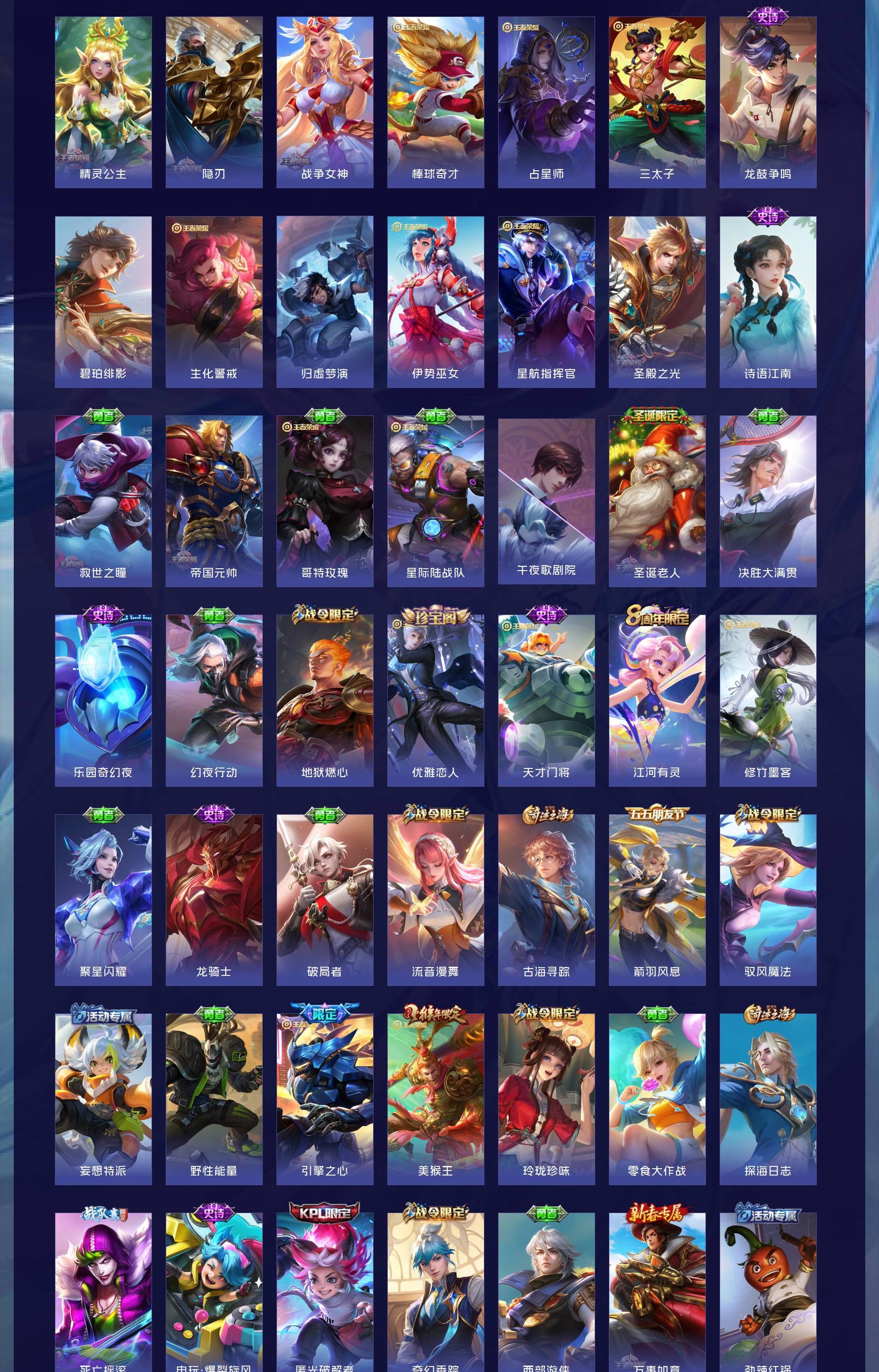 V10 皮肤527 英雄128 至尊星耀 荣耀典藏6 无双皮肤2 珍品传说4 传说54 其他皮肤467