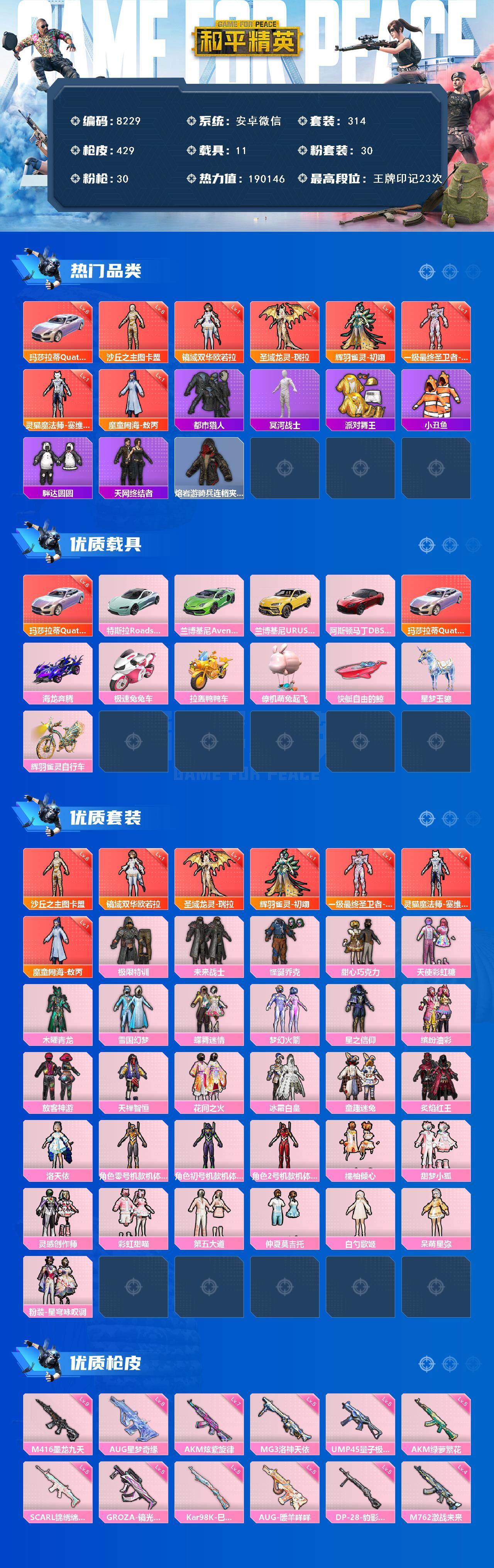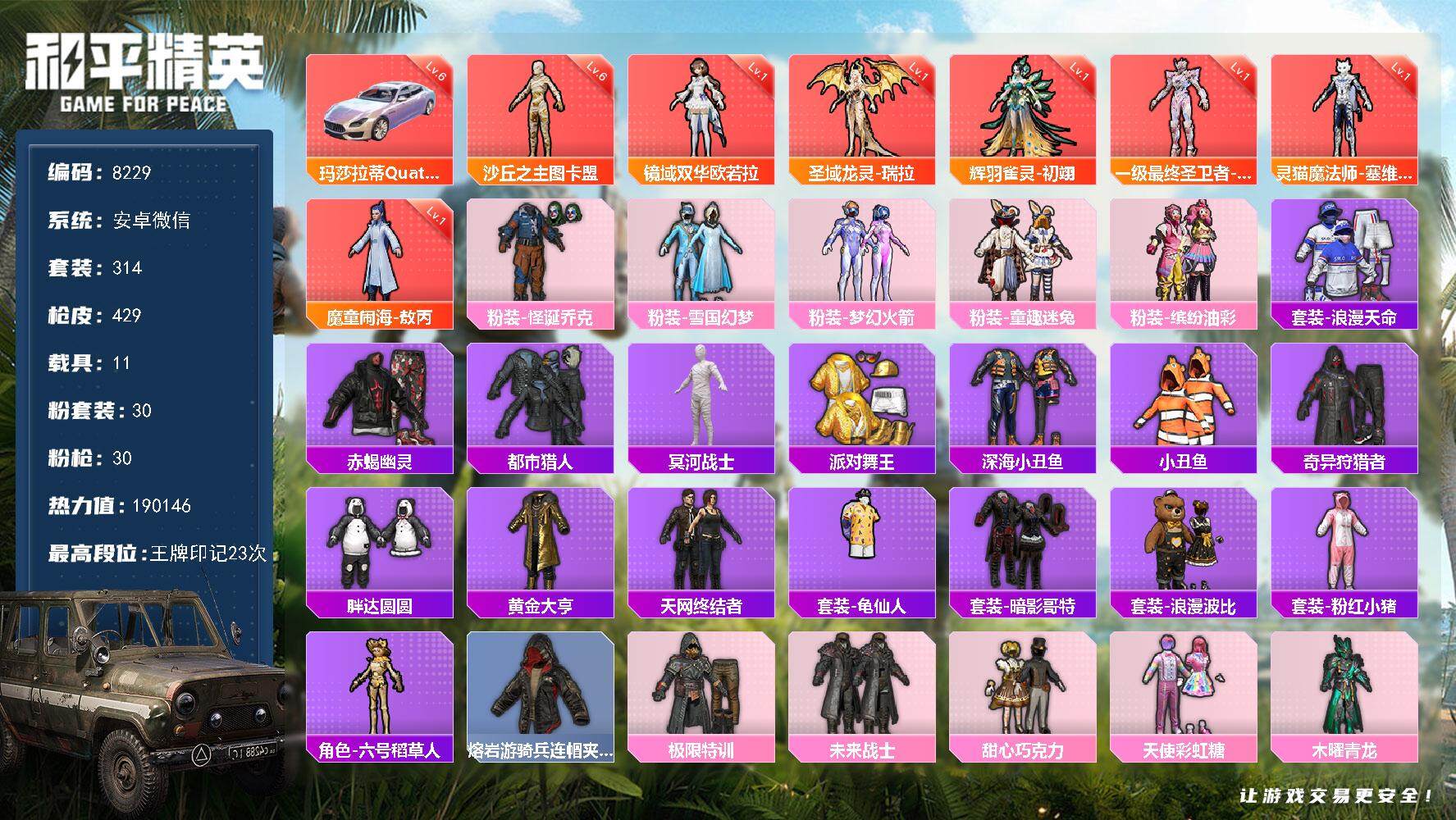 【8229】7神装-30粉装-30特效枪-11载具-18粉色飞行器-189076热力值-23王牌印记-310套装-423枪皮【红色载具】:六级玛莎拉蒂Quattroporte(幻星粉)【红色神装等级】:一级魔童闹
