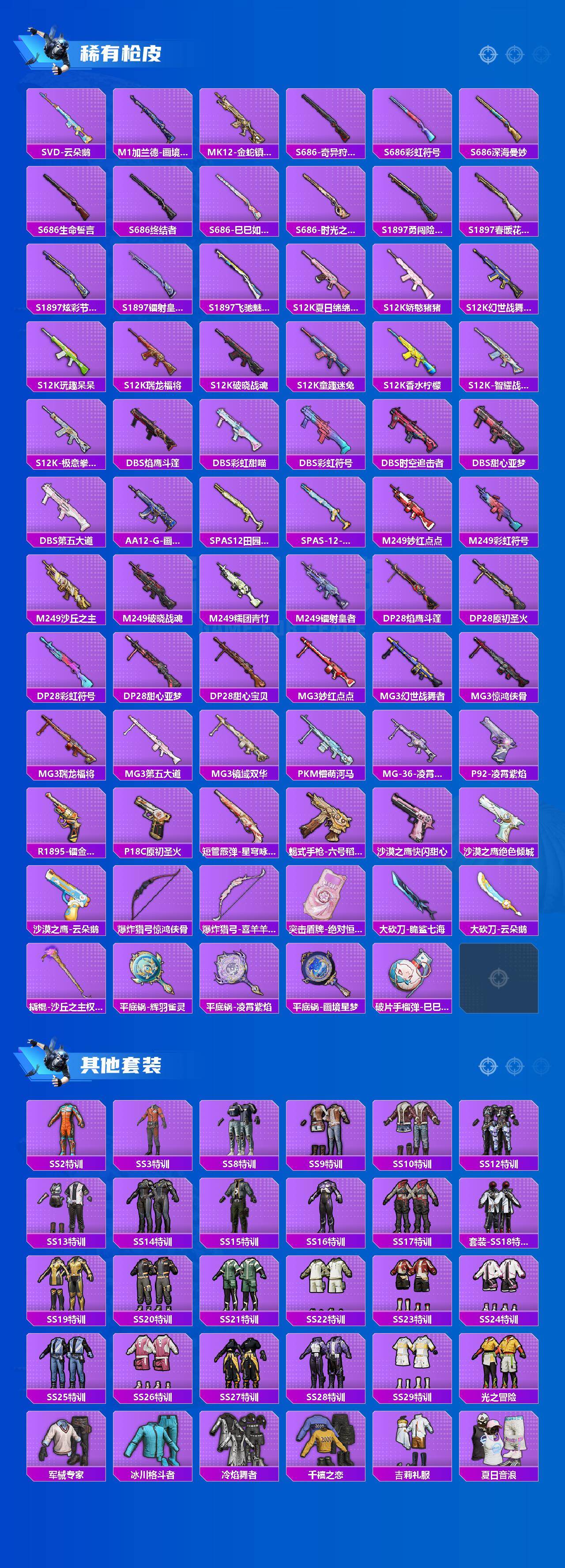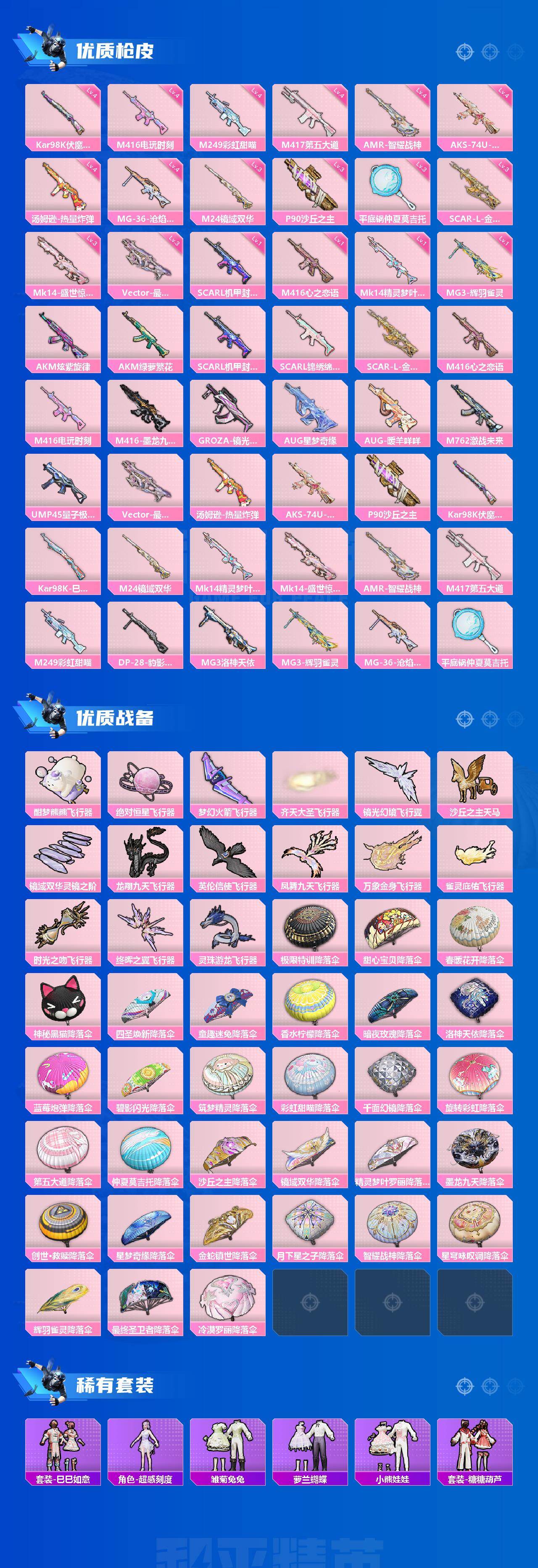 【8229】7神装-30粉装-30特效枪-11载具-18粉色飞行器-18907