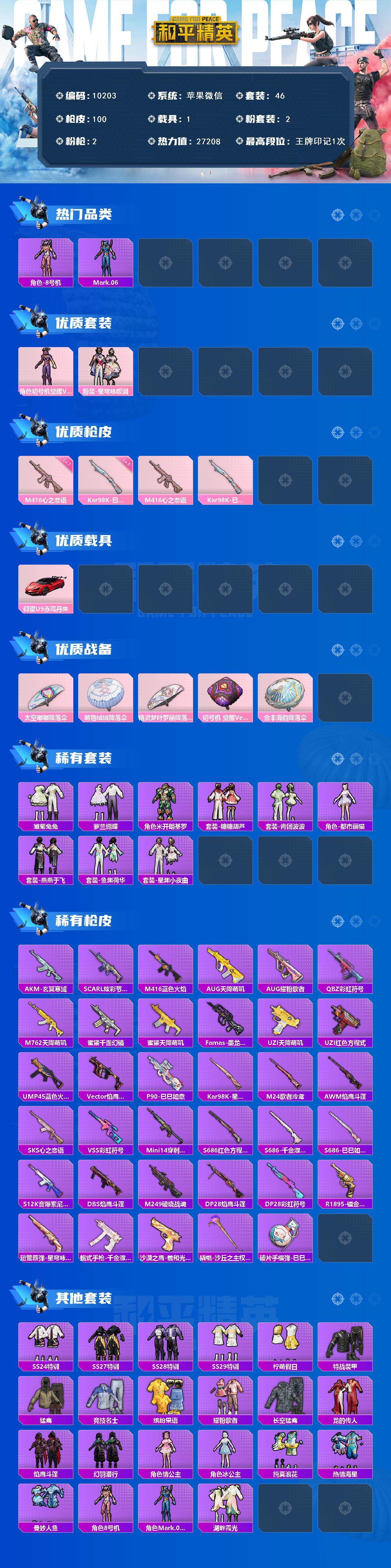 三色螳螂!粉螳螂!蓝螳螂!觉醒螳螂!【连体王者贵族7!2无双1珍品5传说】苹果 微信-2粉装-2特效枪-1载具-1粉色飞行器-27208热力值-1王牌印记-46套装-100枪皮