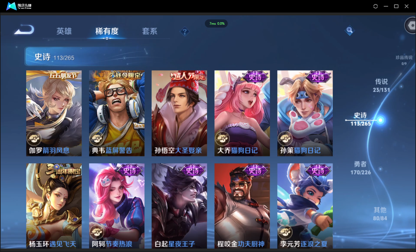 皮肤390 英雄127 至尊星耀 荣耀典藏4 传说23 其他皮肤368-可二次-V9-4星元-23传说霜北刀,战鼓燎原,逐花归海,乞巧织情,炽阳神光-113史诗有至尊宝-10个性按键