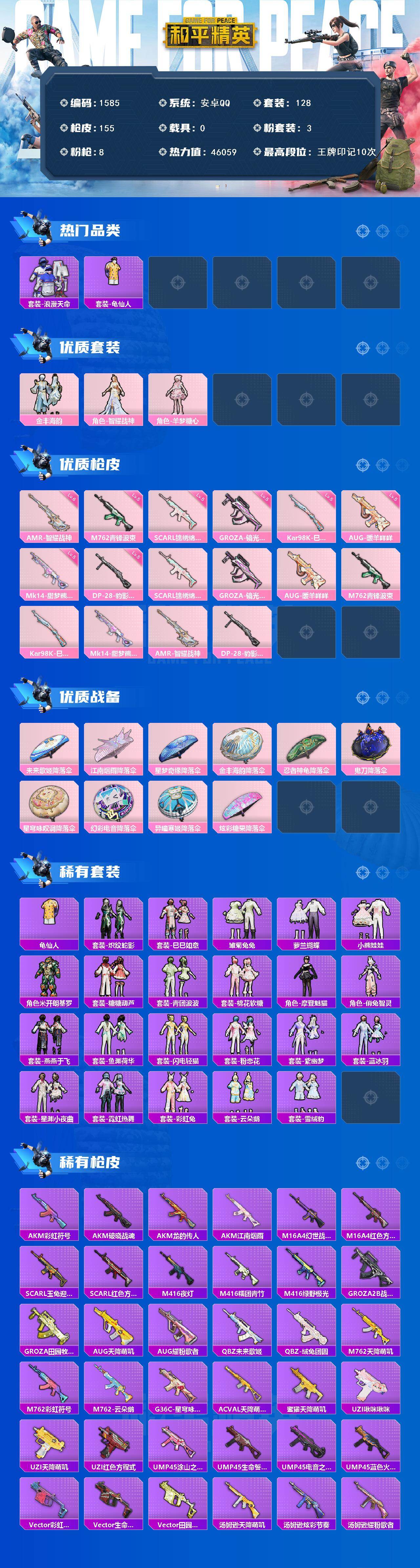 【妹妹号·羊梦糖心·智耀战神·8特效枪】安卓 手Q-3粉装-8特效枪-0载具-0粉色飞行器-46059热力值-10王牌印记-128套装-155枪皮