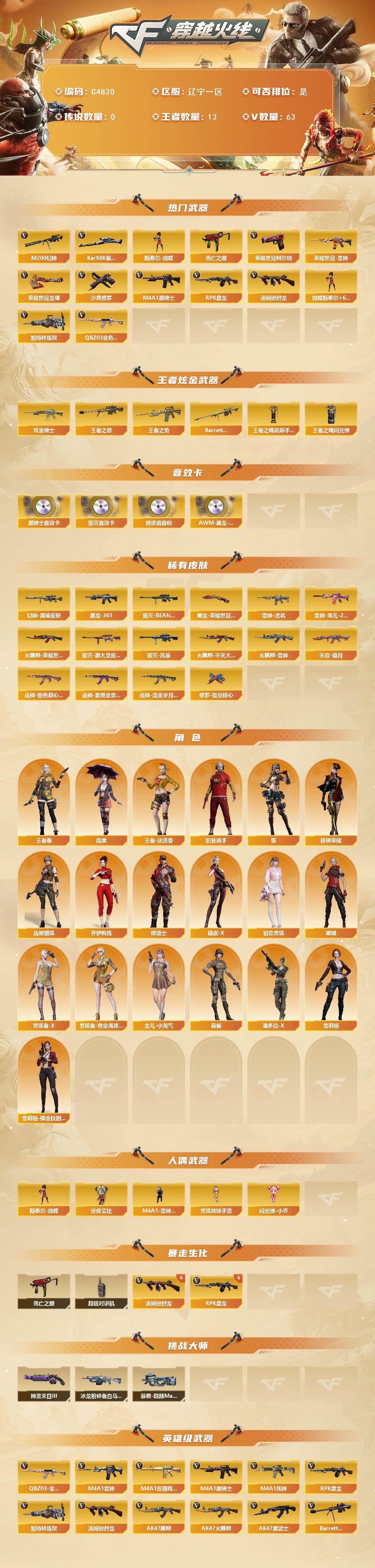 【C4820】辽宁一区-66V-13王者武器数-1炫金武器数