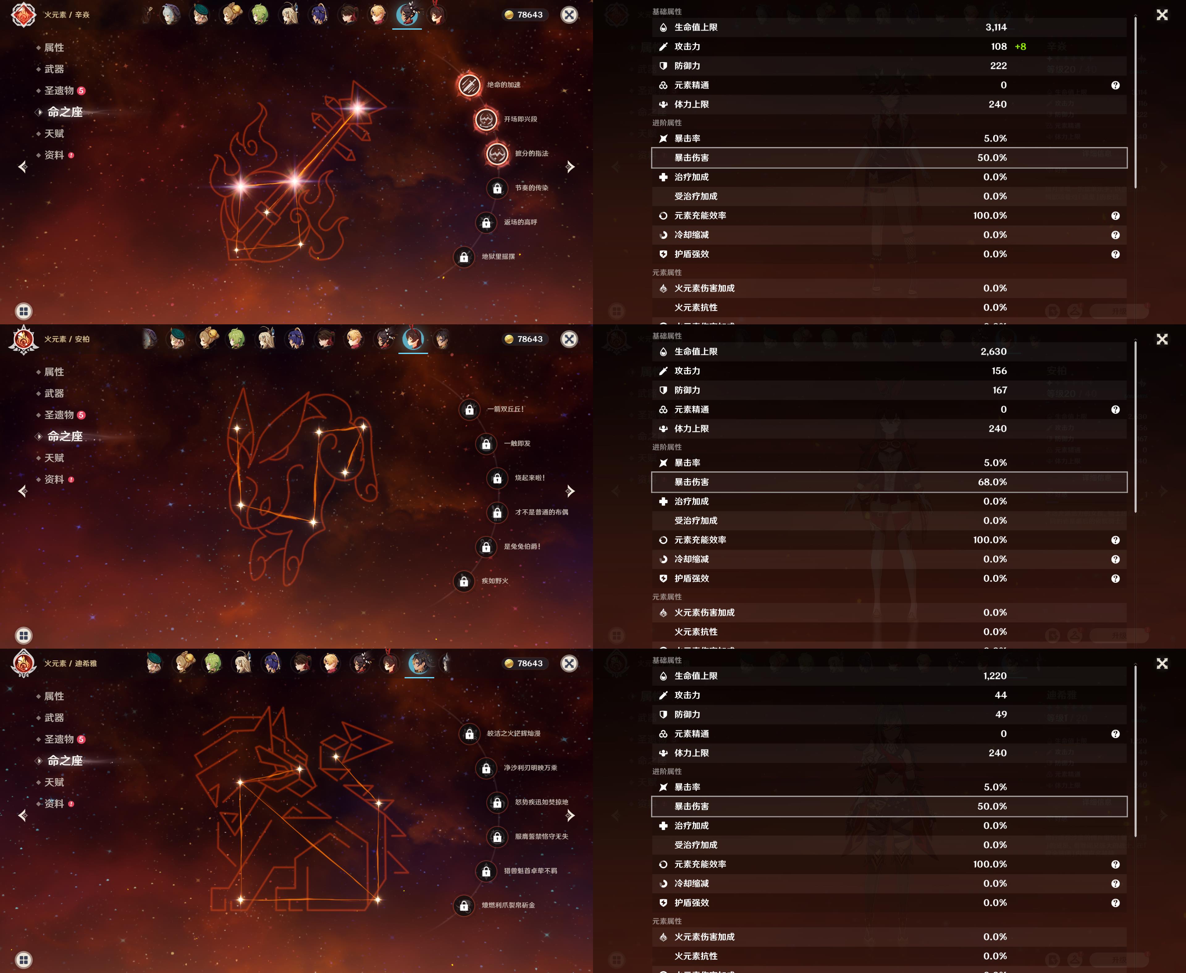 五星角色:
