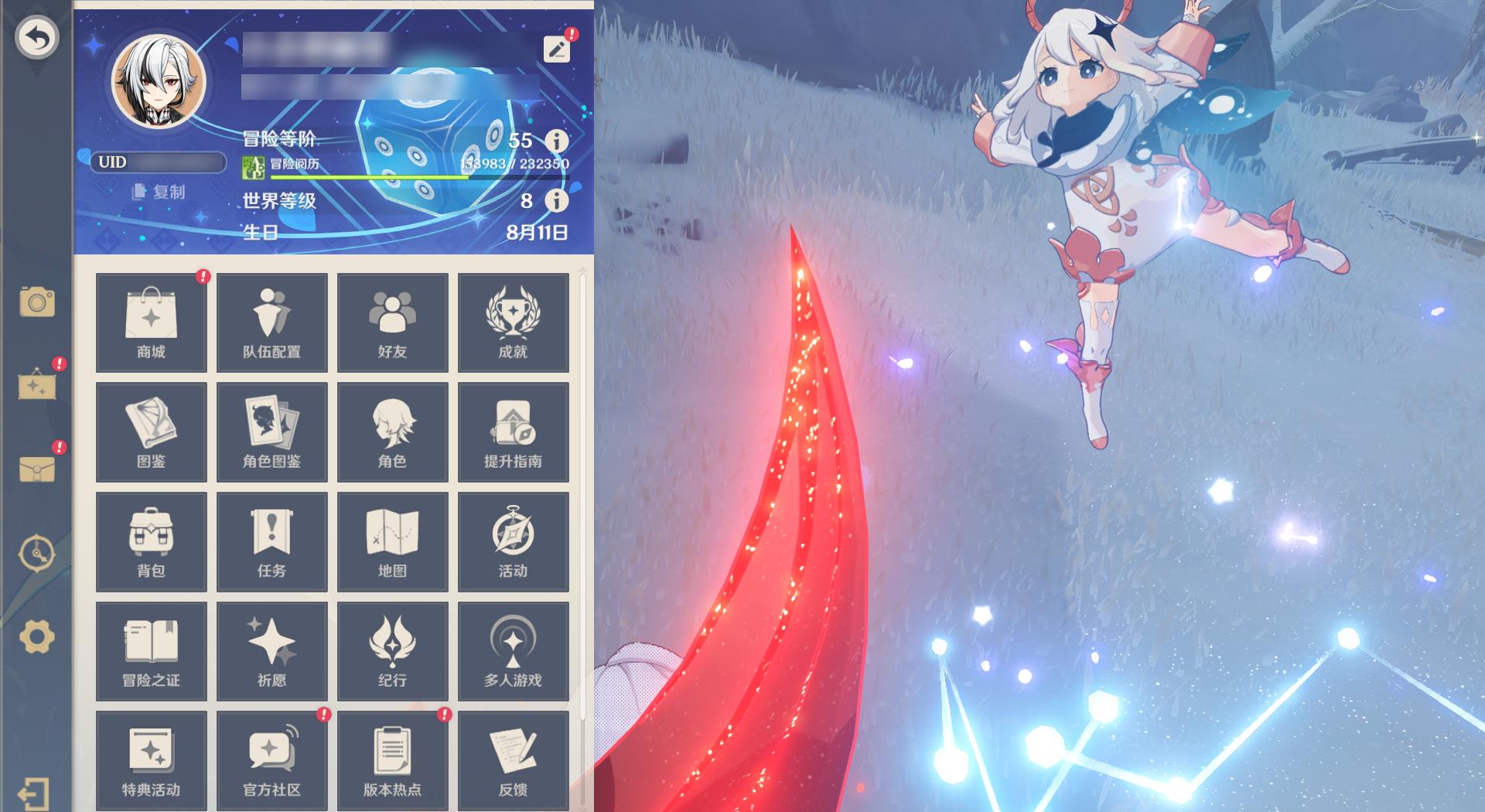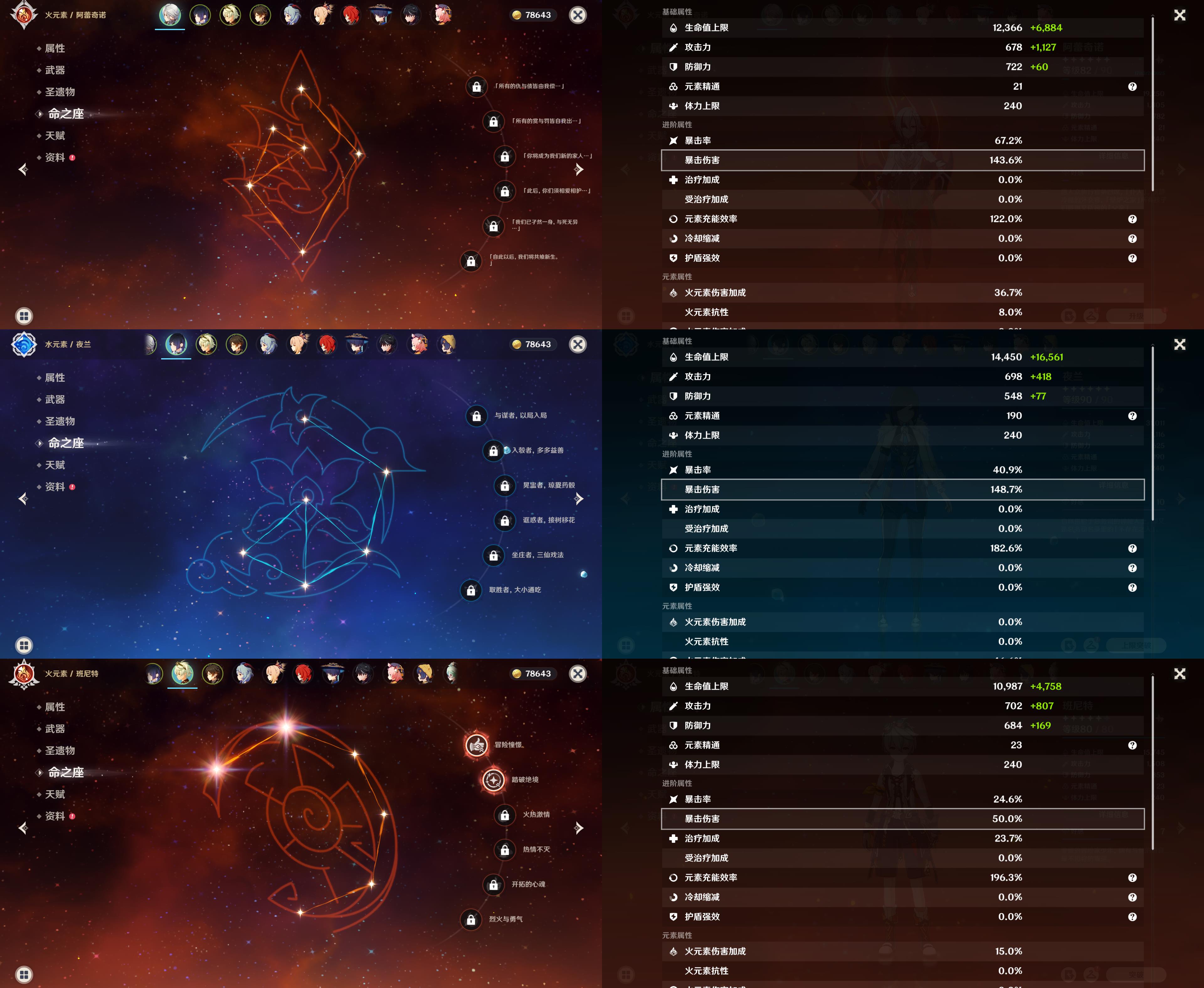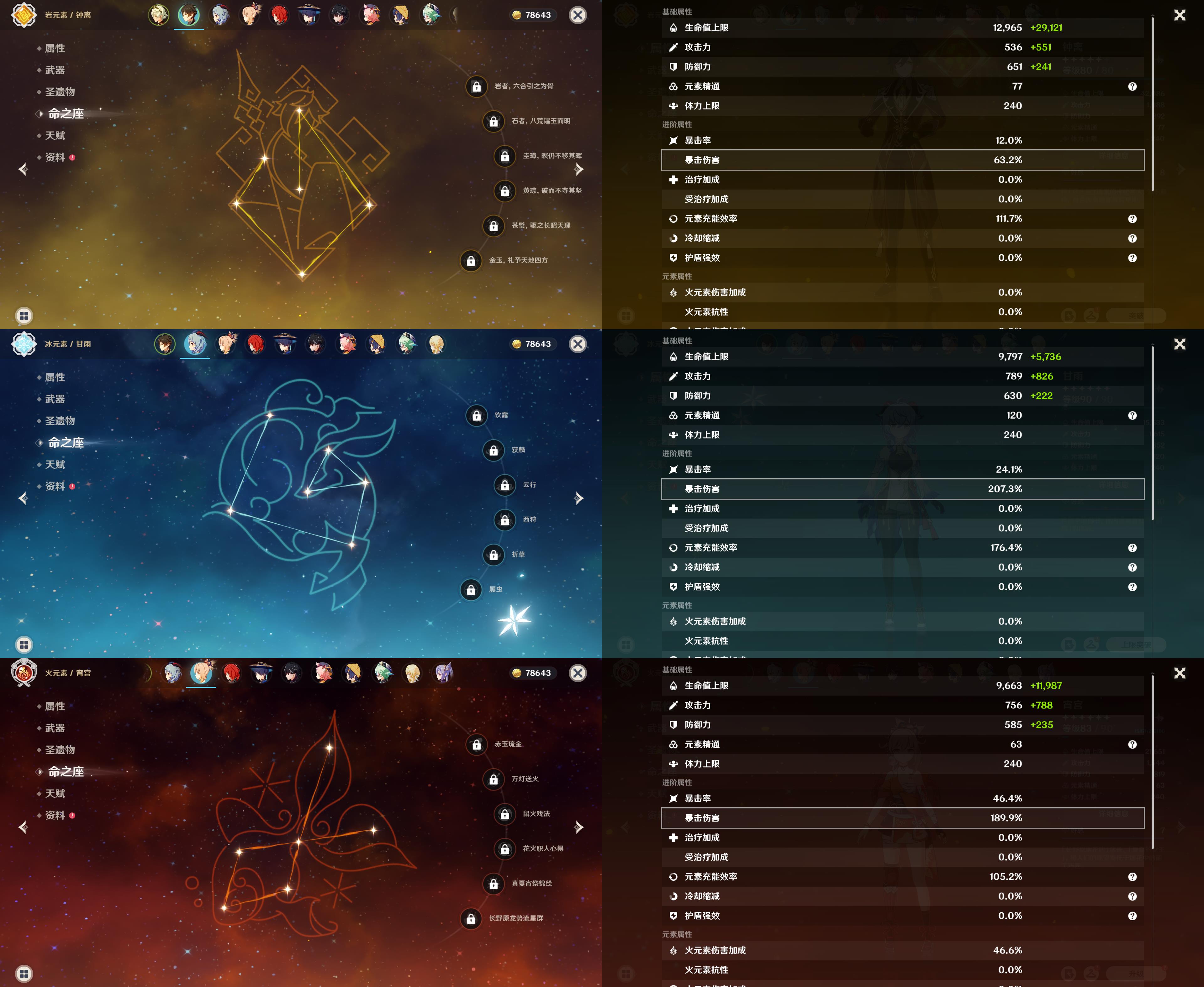 55级/12黄/女主/10个五星角色/2个五星武器/阿蕾奇诺/夜兰/钟离/甘雨/宵宫