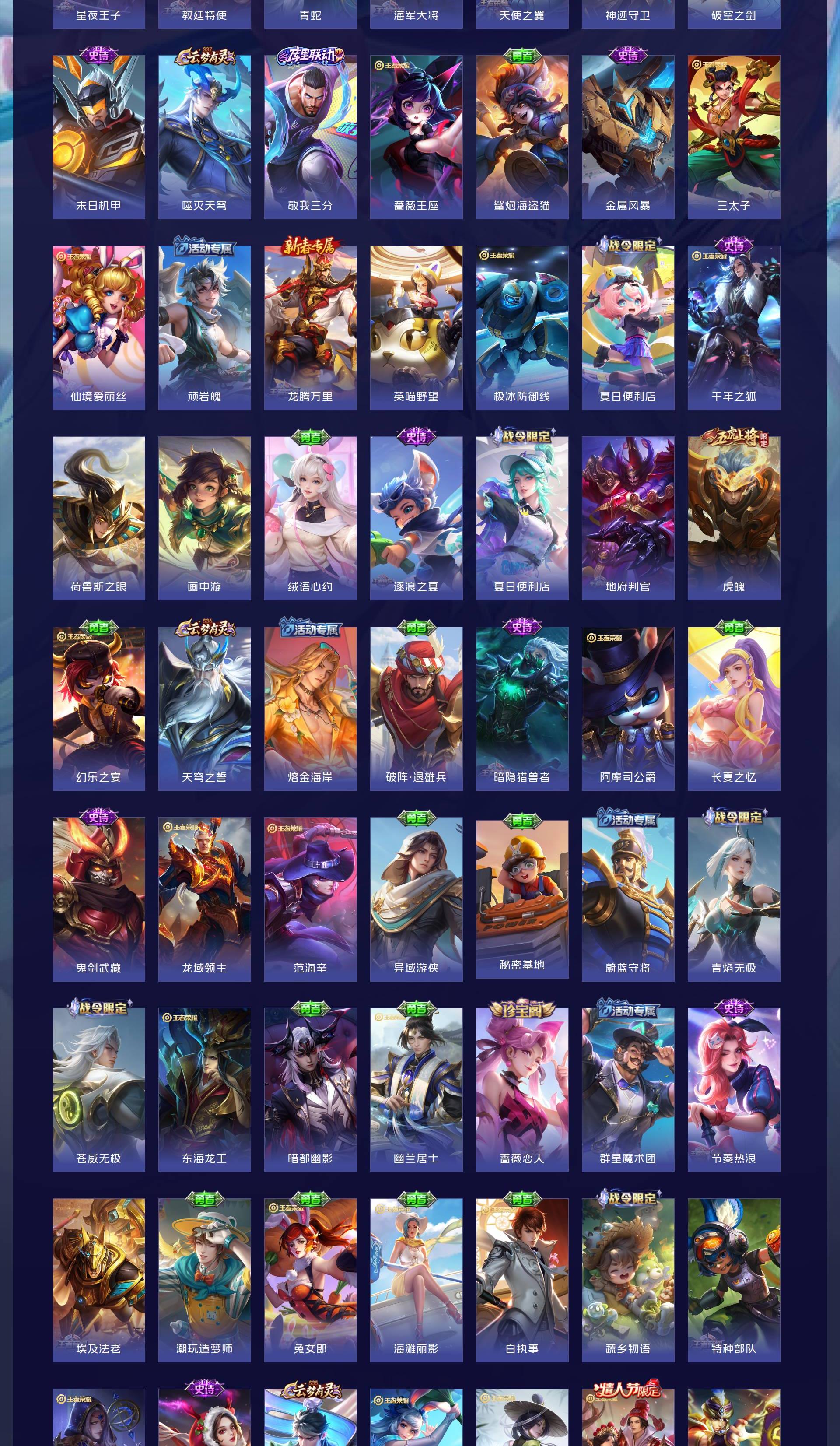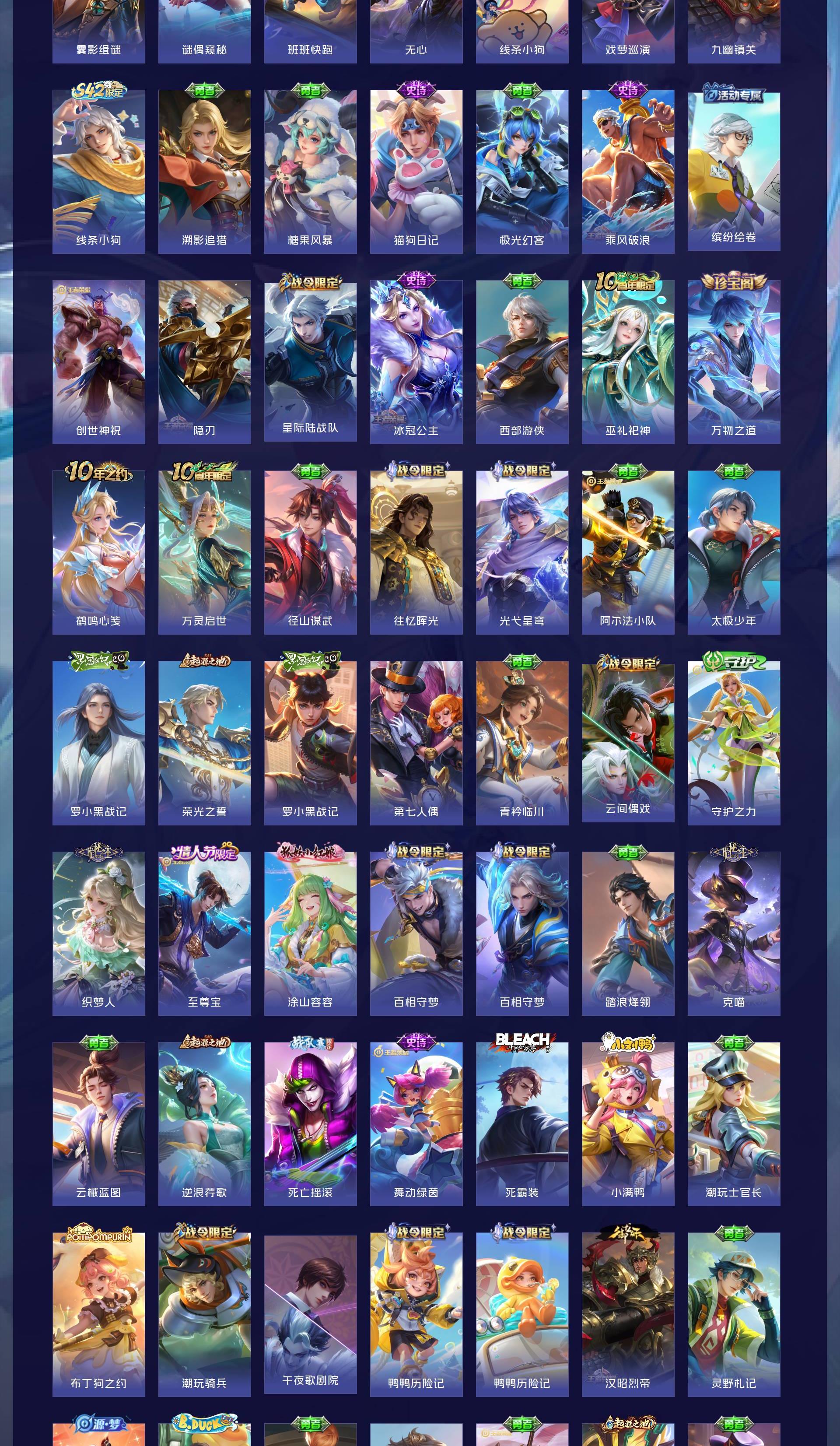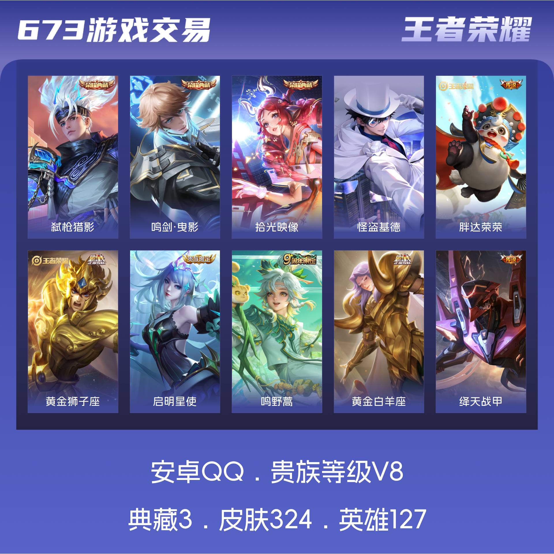 V8 皮肤324 英雄127 至尊星耀 荣耀典藏3 珍品传说1 传说13 其他皮肤312