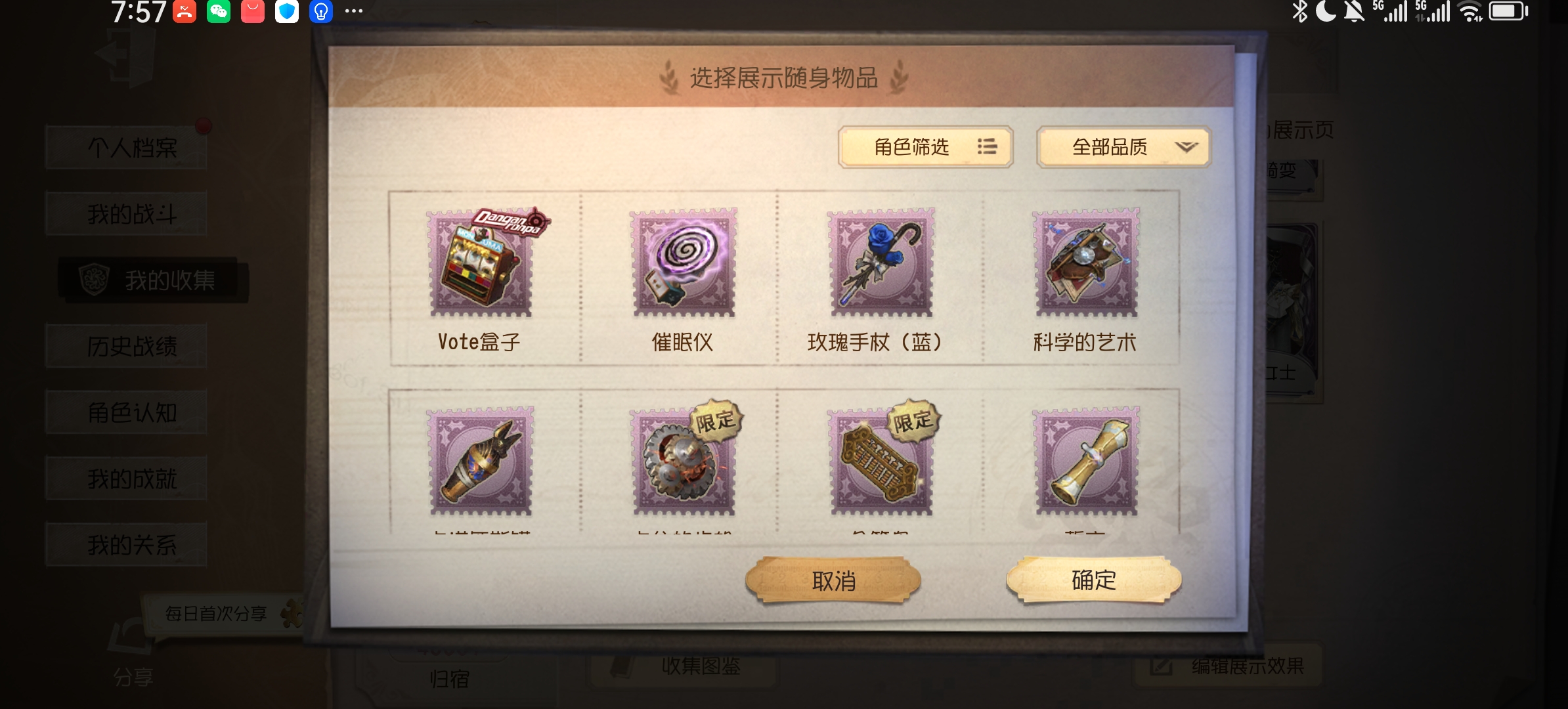 随身物品数量:
