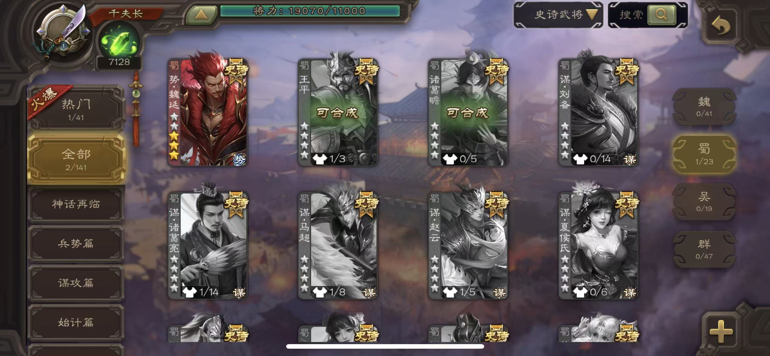 史诗武将数量: