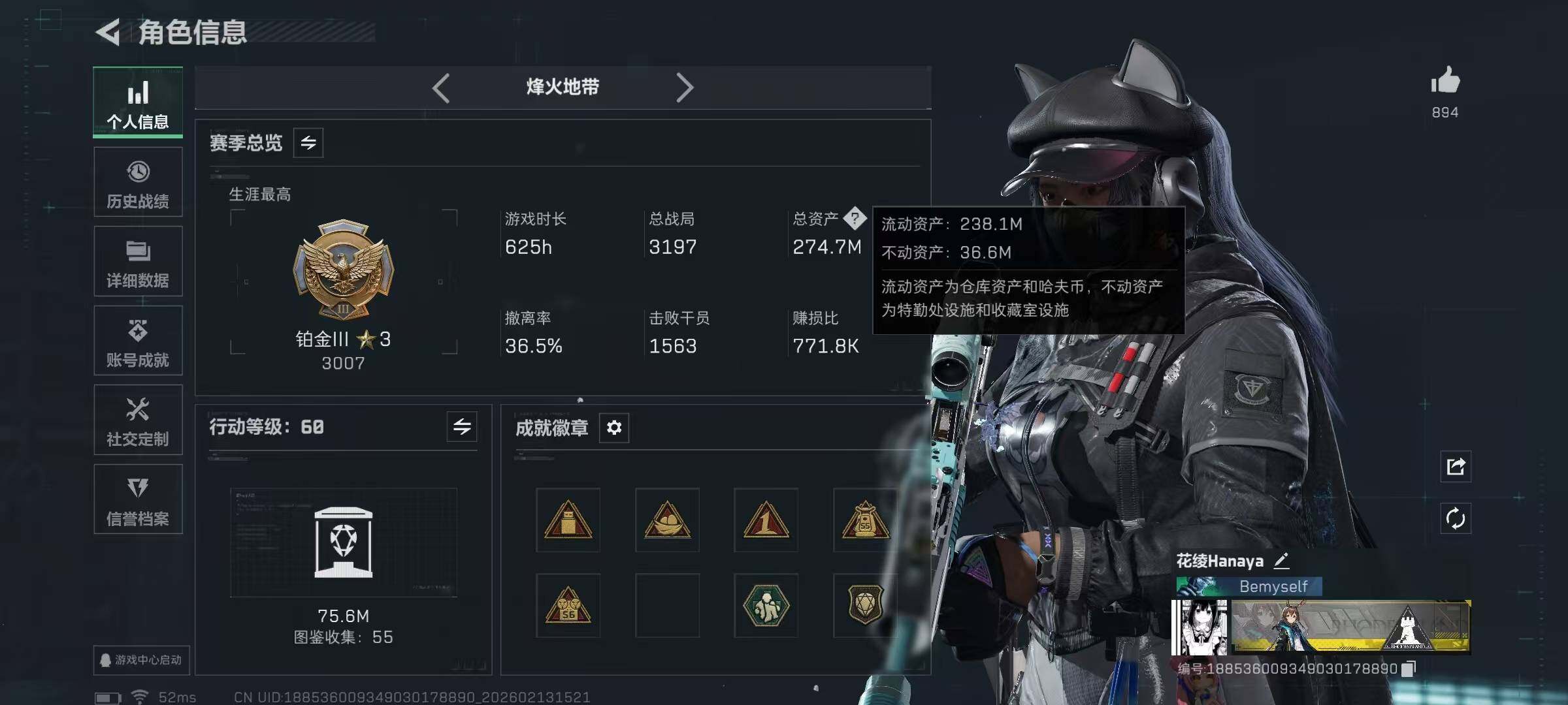 【SJ1144】【无封禁北极星黑海带110发AW】60级/总资274M/流资2