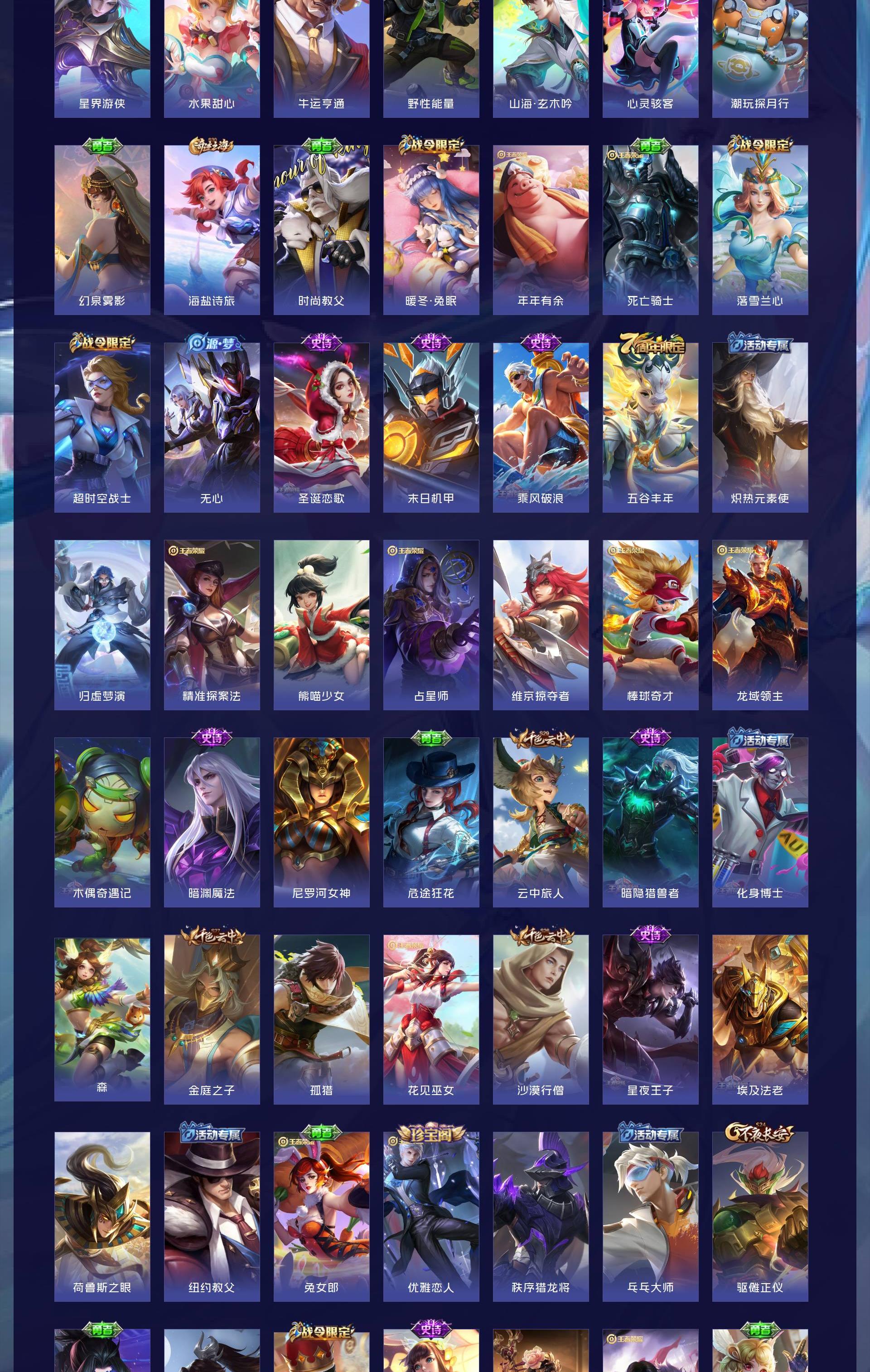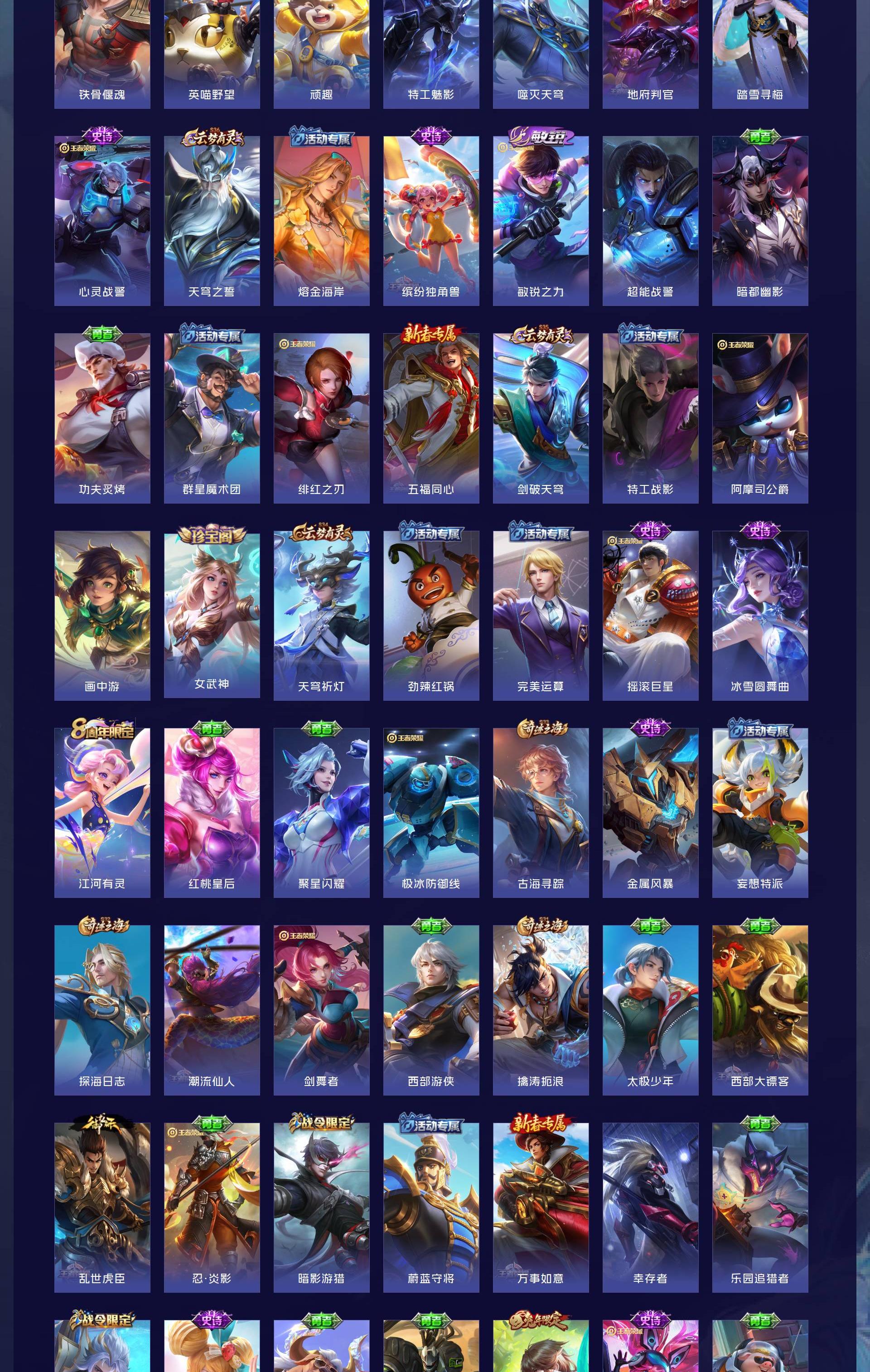 V8 皮肤297 英雄128 至尊星耀 荣耀典藏1 星传说3 传说17 其他皮肤285